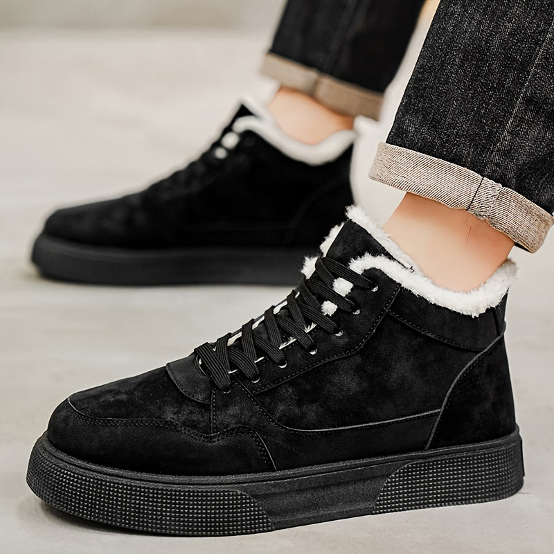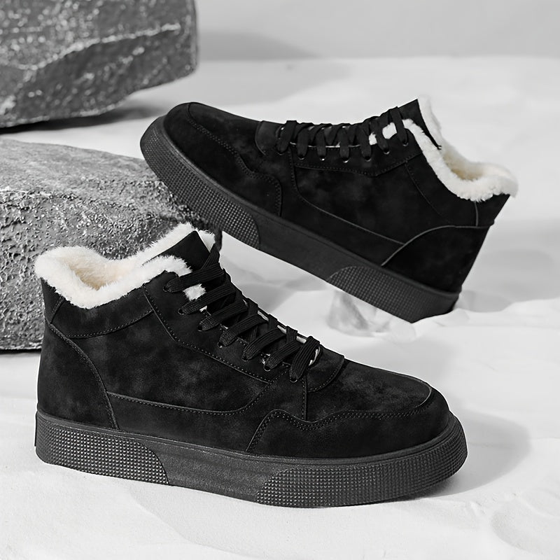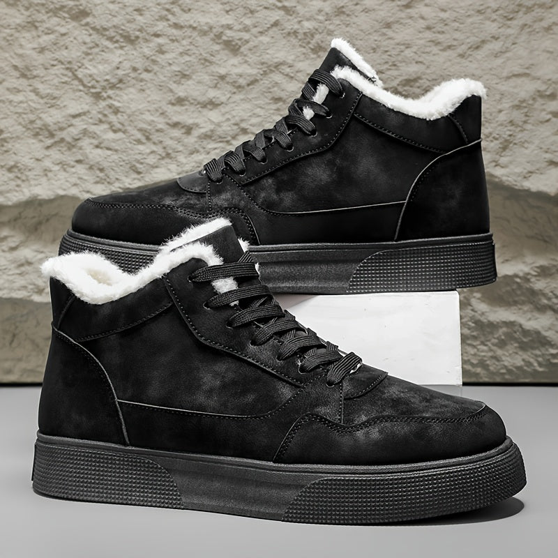 Men's Winter Warm Mid-Top Sneakers - Heavy-Duty Insulated Ankle Shoes with Thick Traction PVC Sole, Upper & Grey/White Beige Lining for Outdoor, Hiking, Skateboarding & Casual (Cold Weather) - Lace-Up Boots, Shoes For Men