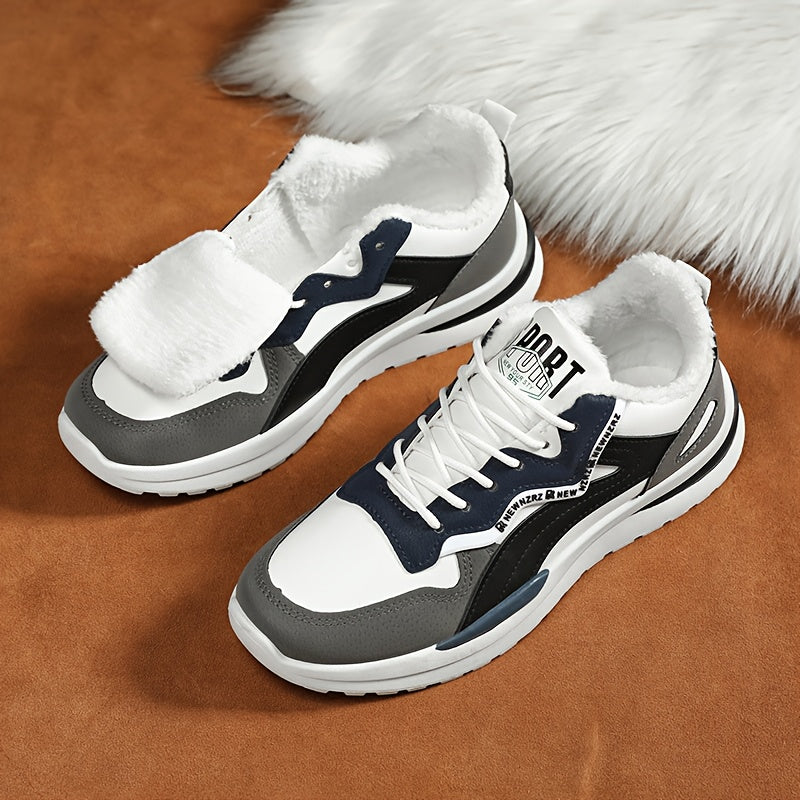 Men's Winter Warm Thermal Insulated Snow Boots - Low-Top -like Upper, Slip-Resistant Rubber Sole, Cushioned Arch Support & Traction Tread for Hiking, Walking, Casual Outdoor - All-Terrain Winter Shoes for Men (Black/White/Gre