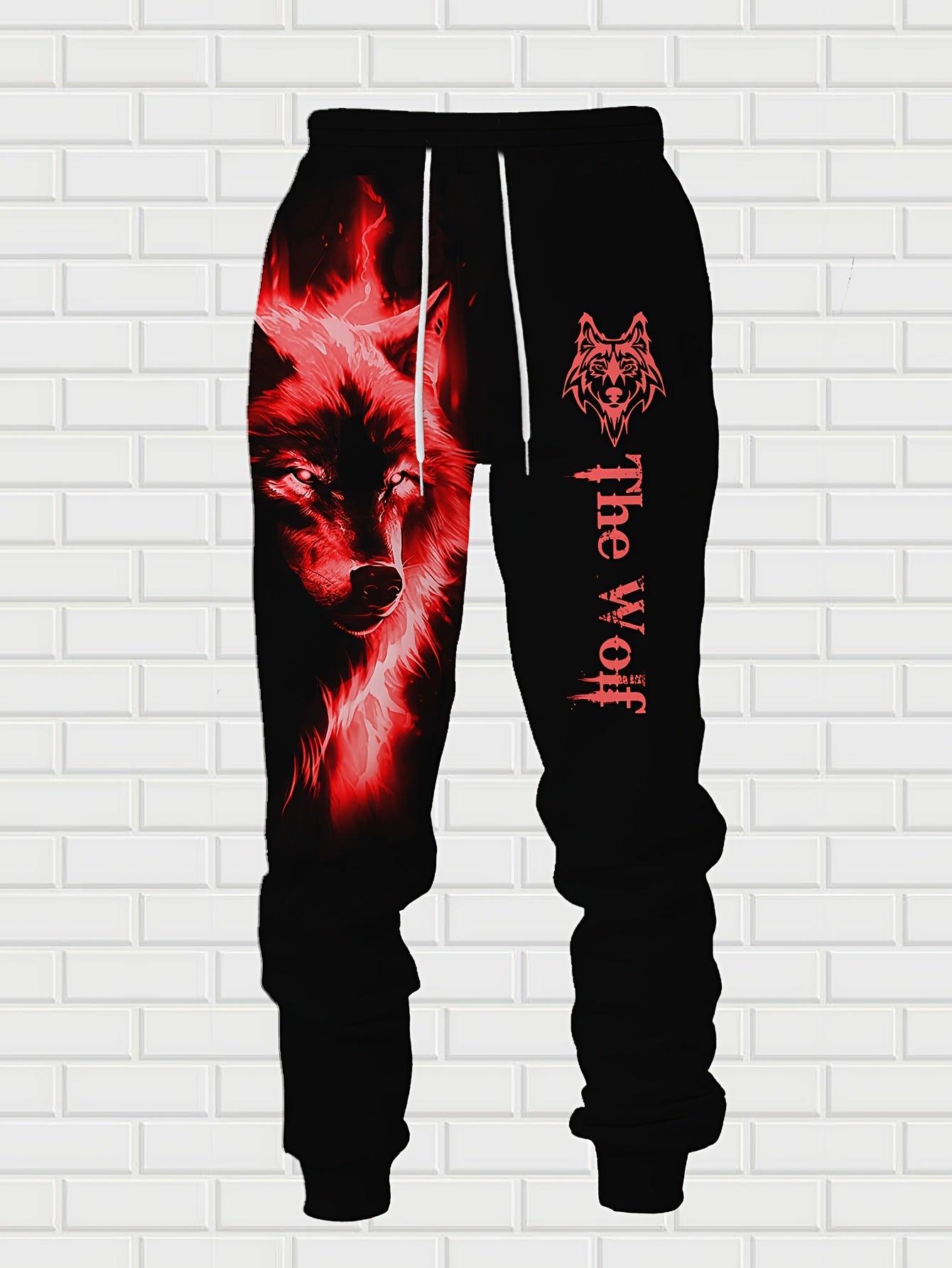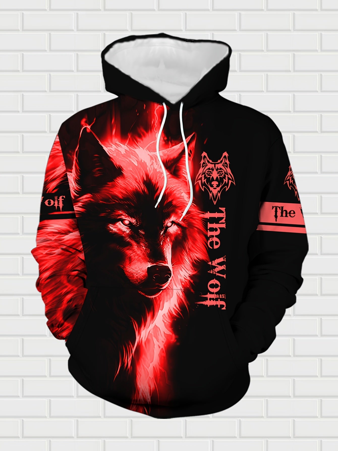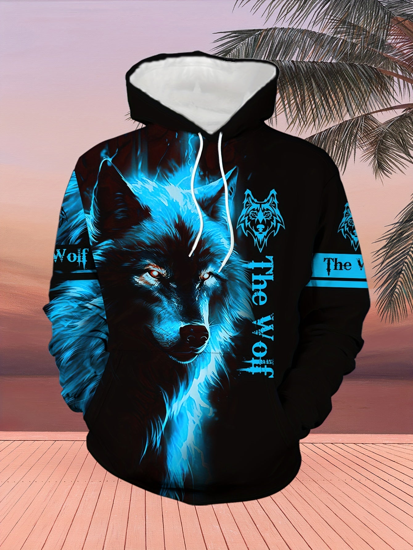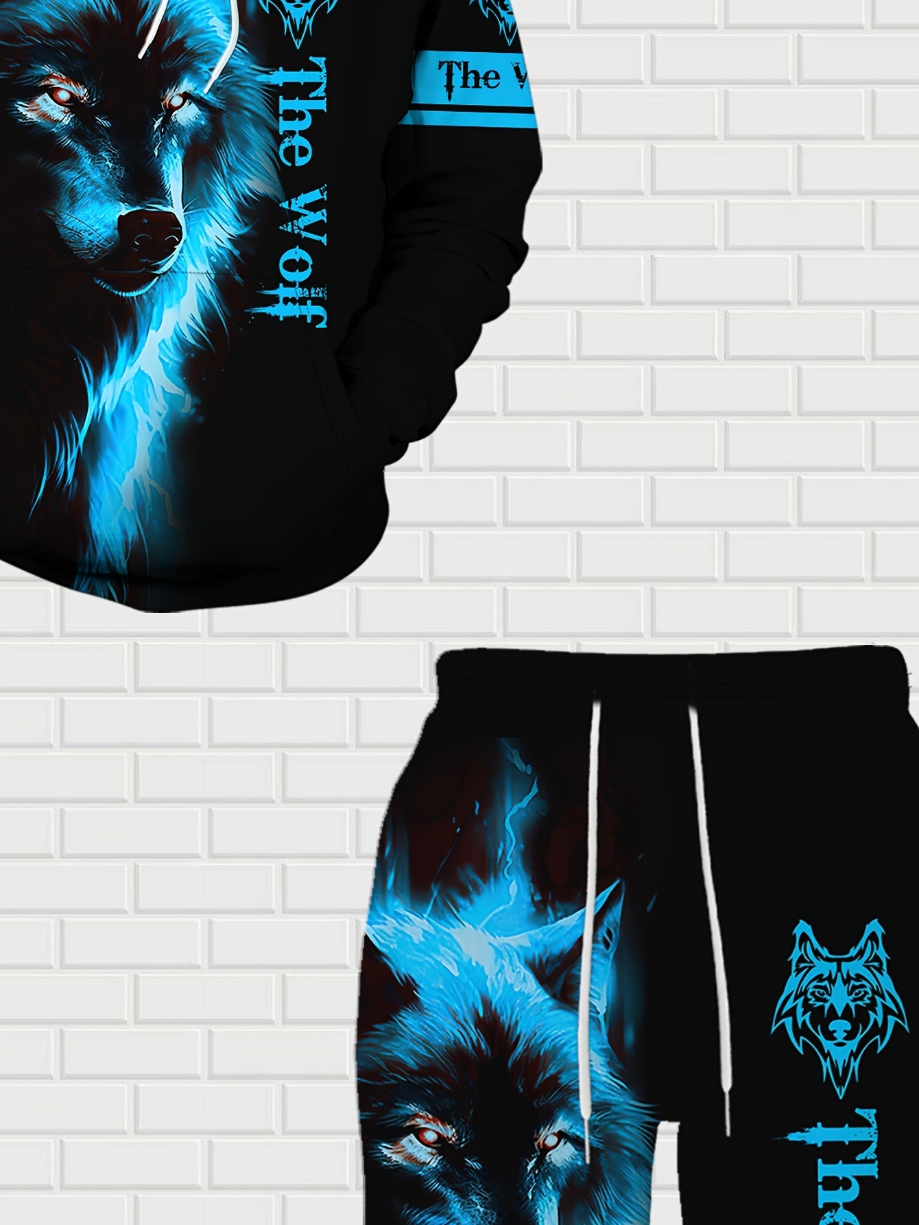 Men'S Wolf Print Hooded Sweatshirt and Joggers Set, Casual Polyester Knit Fabric, Slight Stretch, Regular Fit, Comfortable Long Sleeve Pullover for Spring/Fall, Weekend Casual Wear