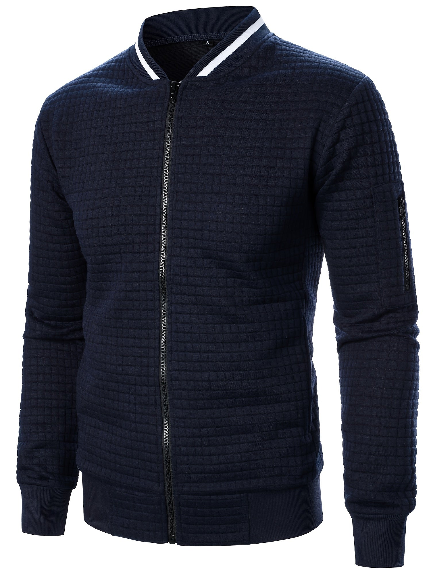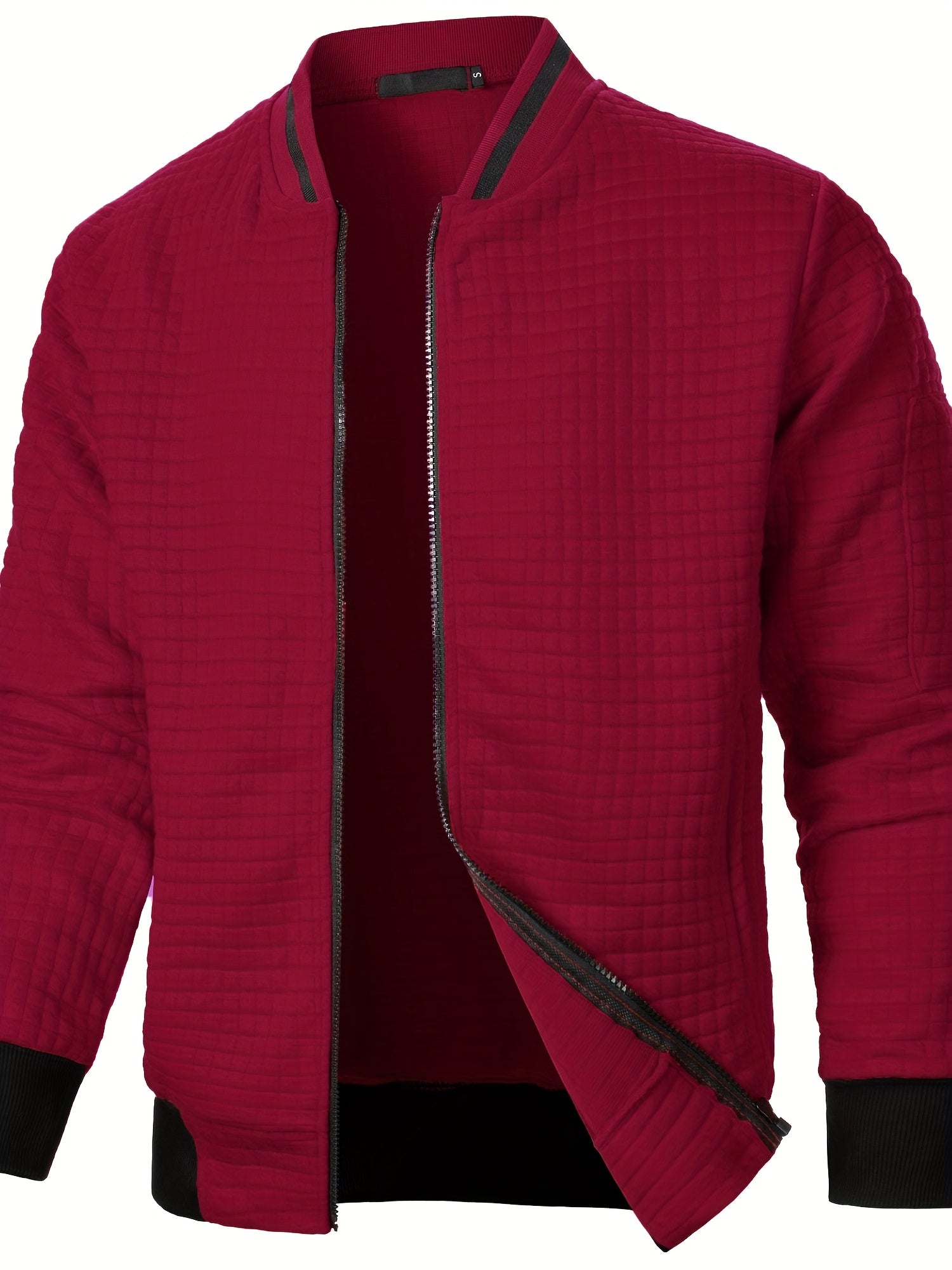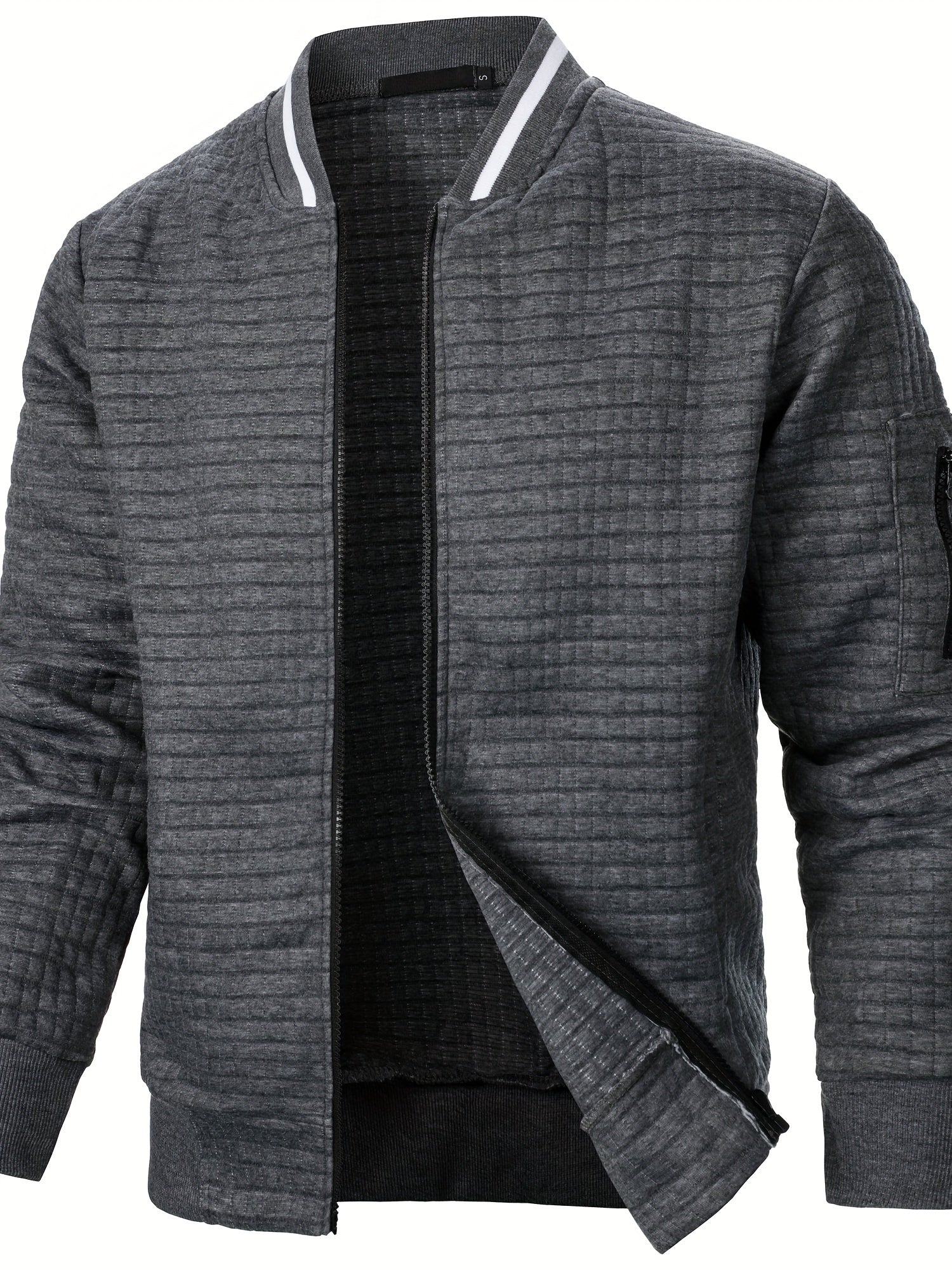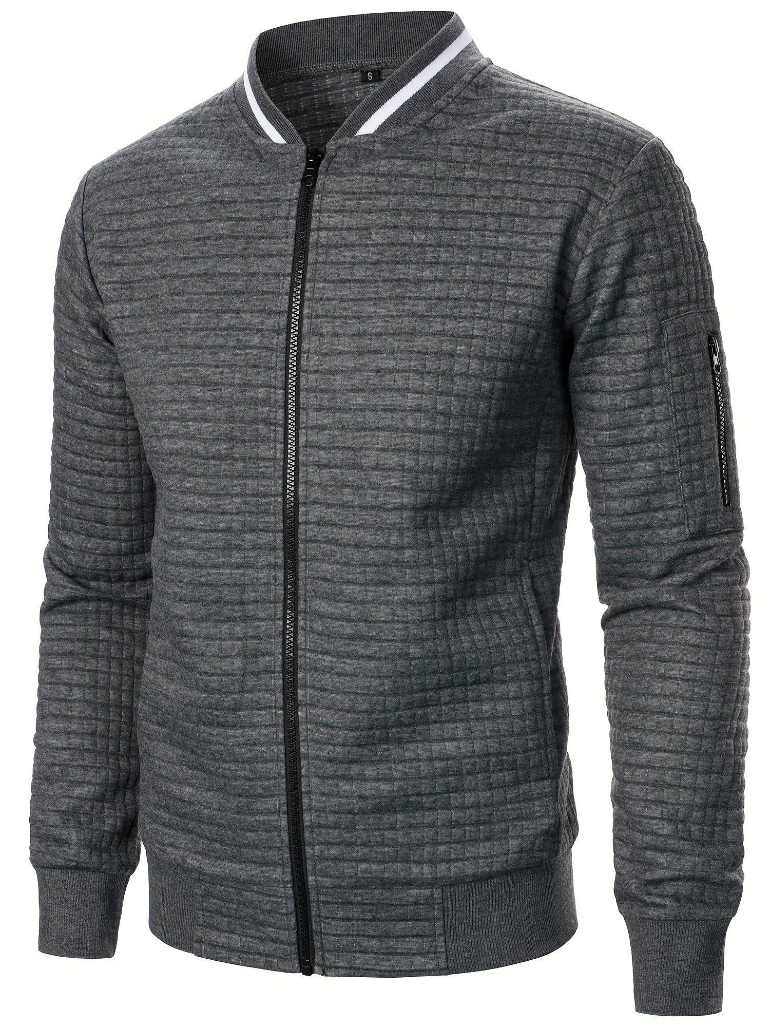 Men'S Zip-Up Jacket - Full-Zip Front Closure, Stand Collar, Lightweight Outerwear for Office, Casual & Formal Events - Spring/Fall Transitional Clothing - Easy-Care Modern Men'S Coat, Zip Up Jacket, Autumn Layering, Sleek Des