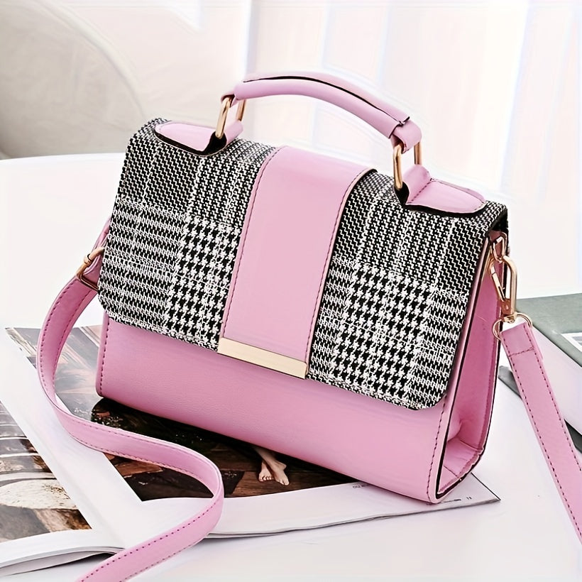 Mini Checkered Crossbody Bag, Fashion Top Handle Square Purse, Casual Shoulder Bag For Women