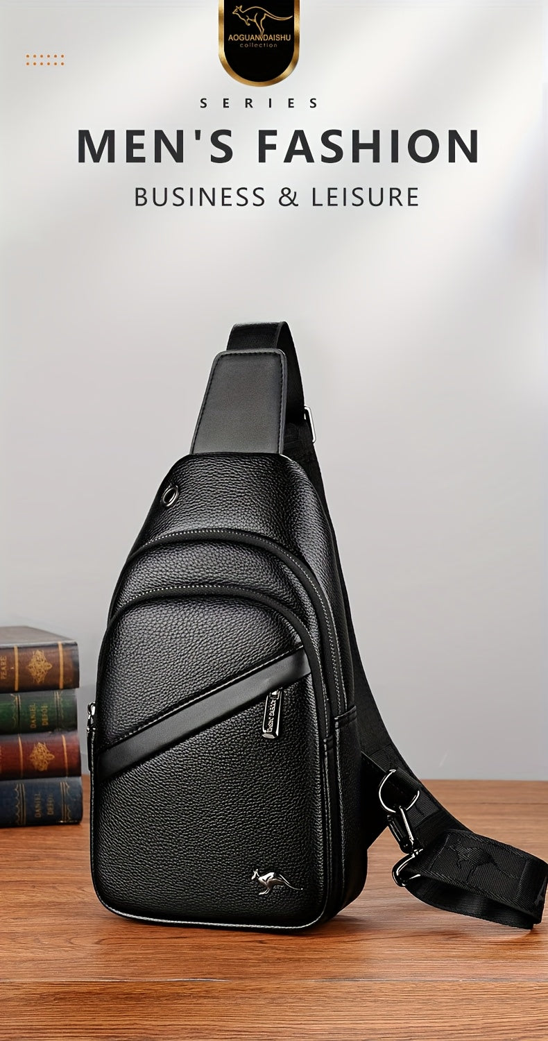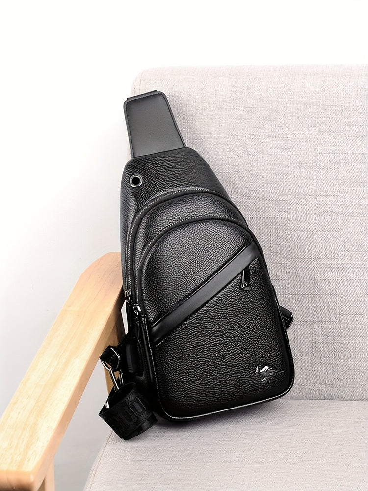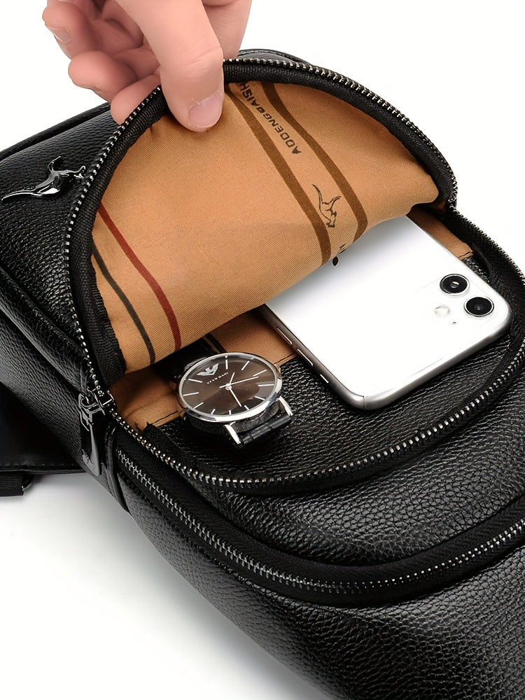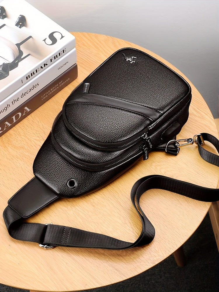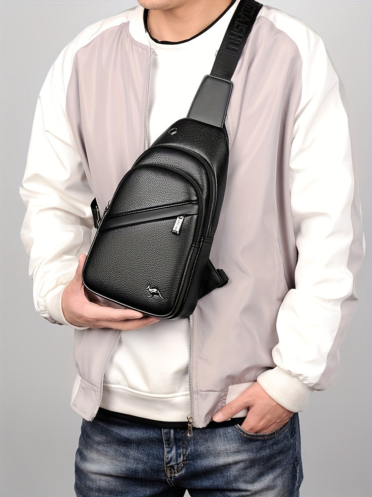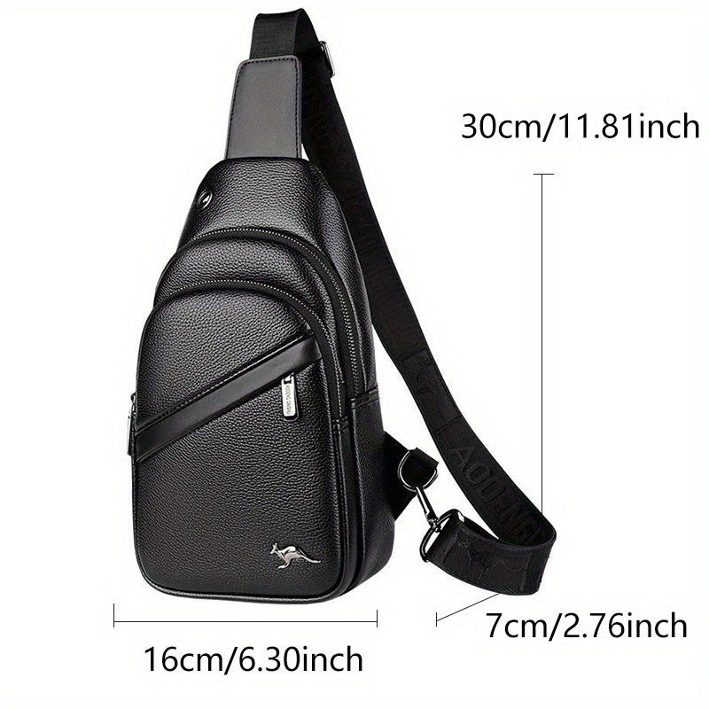 MOEPEQDAISHU Men's Synthetic Leather Crossbody Bag - Adjustable Strap, Multiple Compartments, Casual Style, Black, Perfect for Daily Commute, Casual Crossbody Bag | Modern Men's Bag | Textured Finish, Purse Crossbody