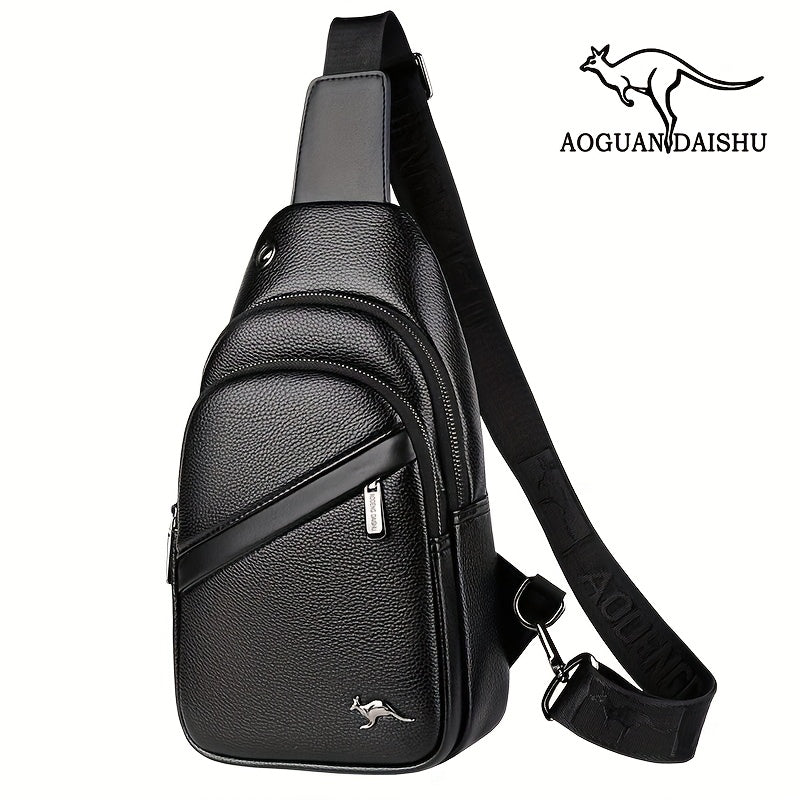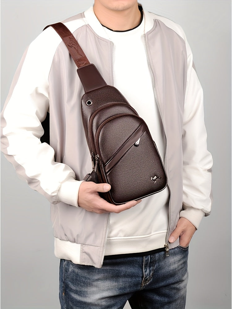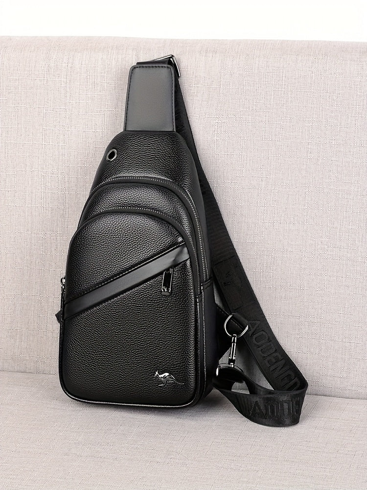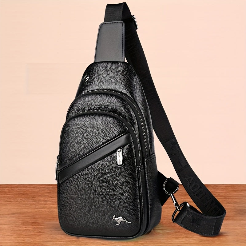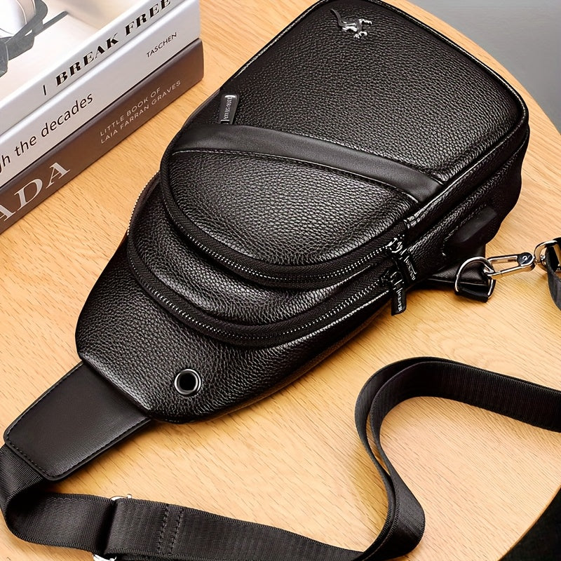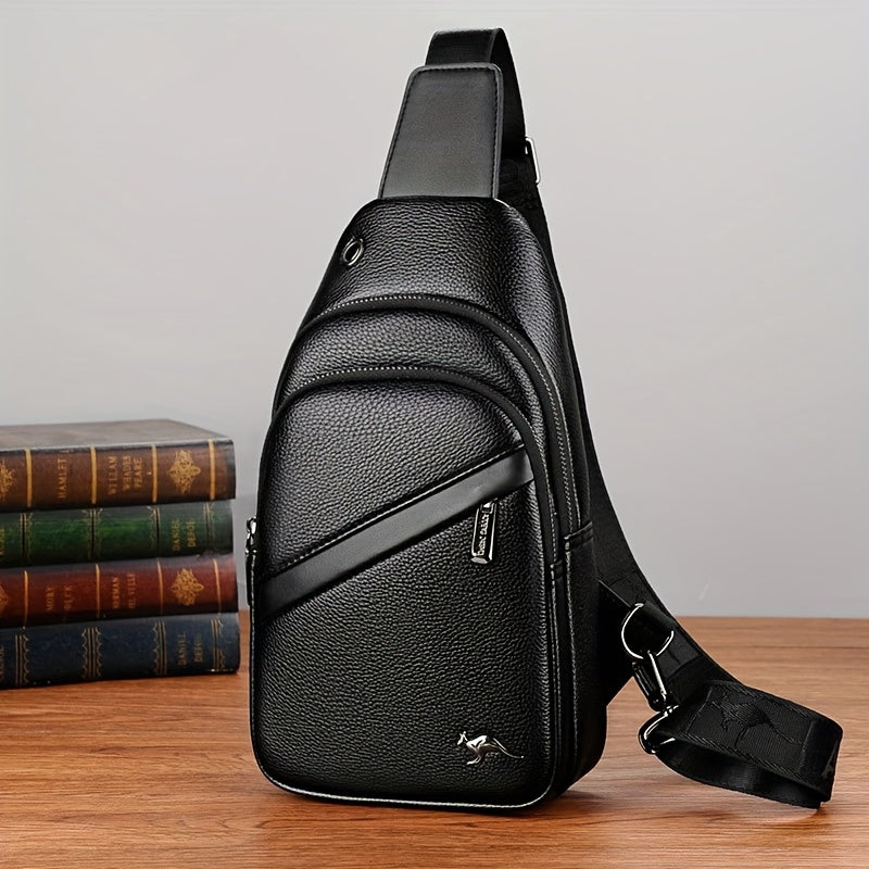 MOEPEQDAISHU Men's Synthetic Leather Crossbody Bag - Adjustable Strap, Multiple Compartments, Casual Style, Black, Perfect for Daily Commute, Casual Crossbody Bag | Modern Men's Bag | Textured Finish, Purse Crossbody