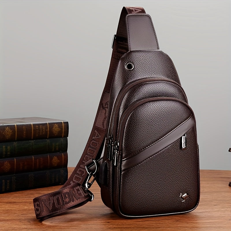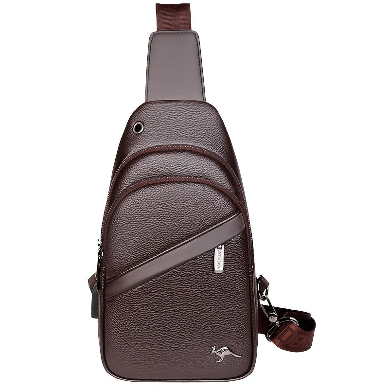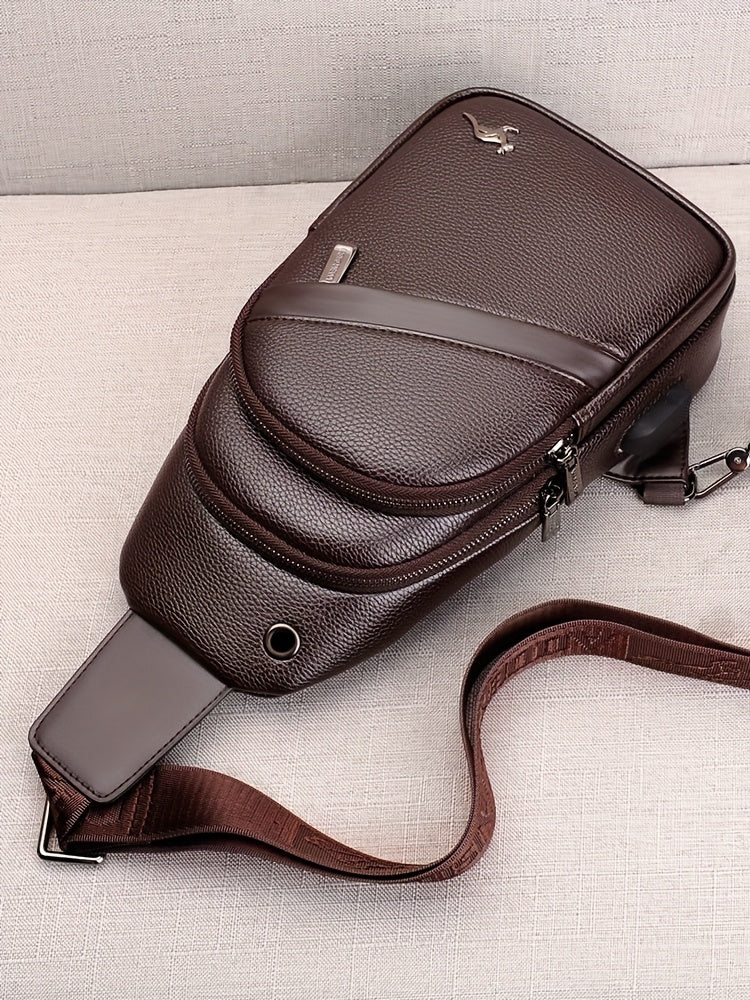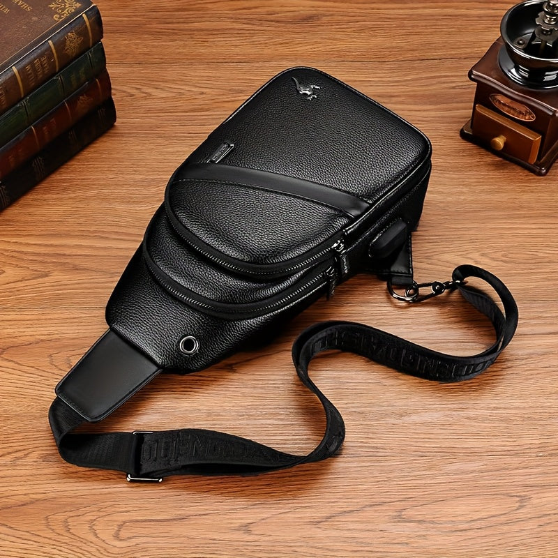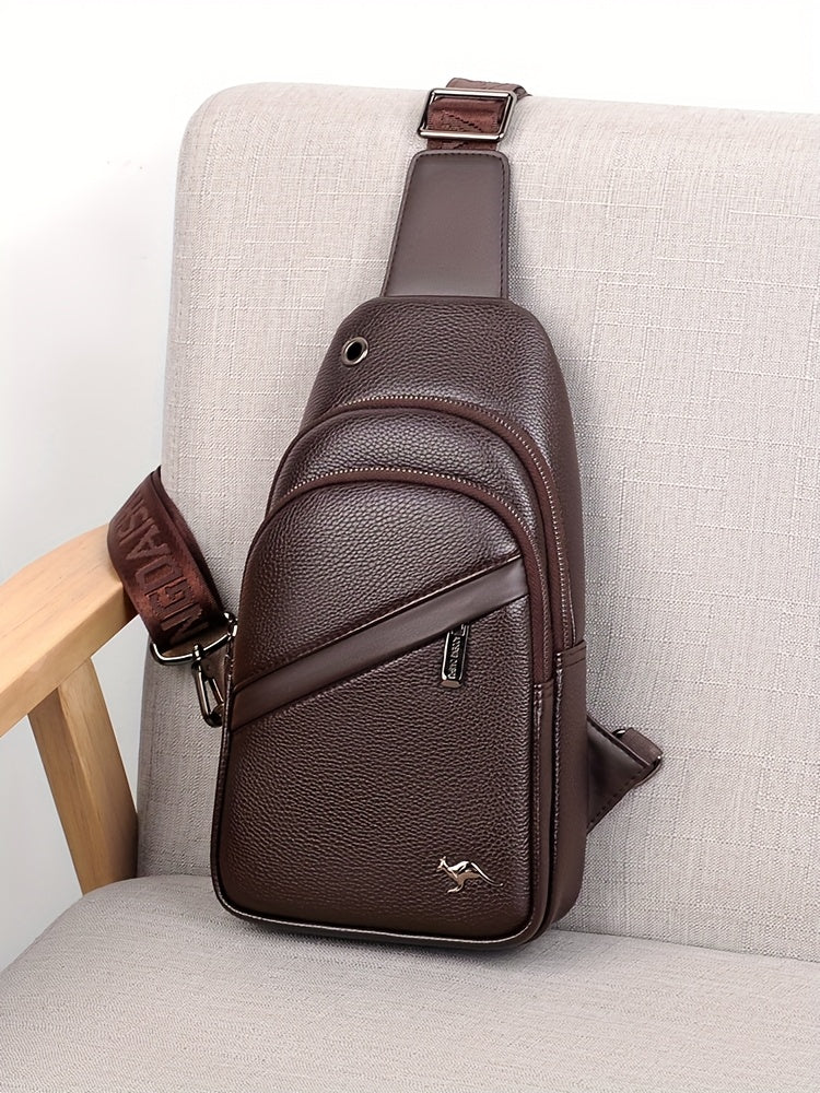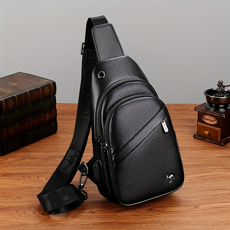 MOEPEQDAISHU Men's Synthetic Leather Crossbody Bag - Adjustable Strap, Multiple Compartments, Casual Style, Black, Perfect for Daily Commute, Casual Crossbody Bag | Modern Men's Bag | Textured Finish, Purse Crossbody