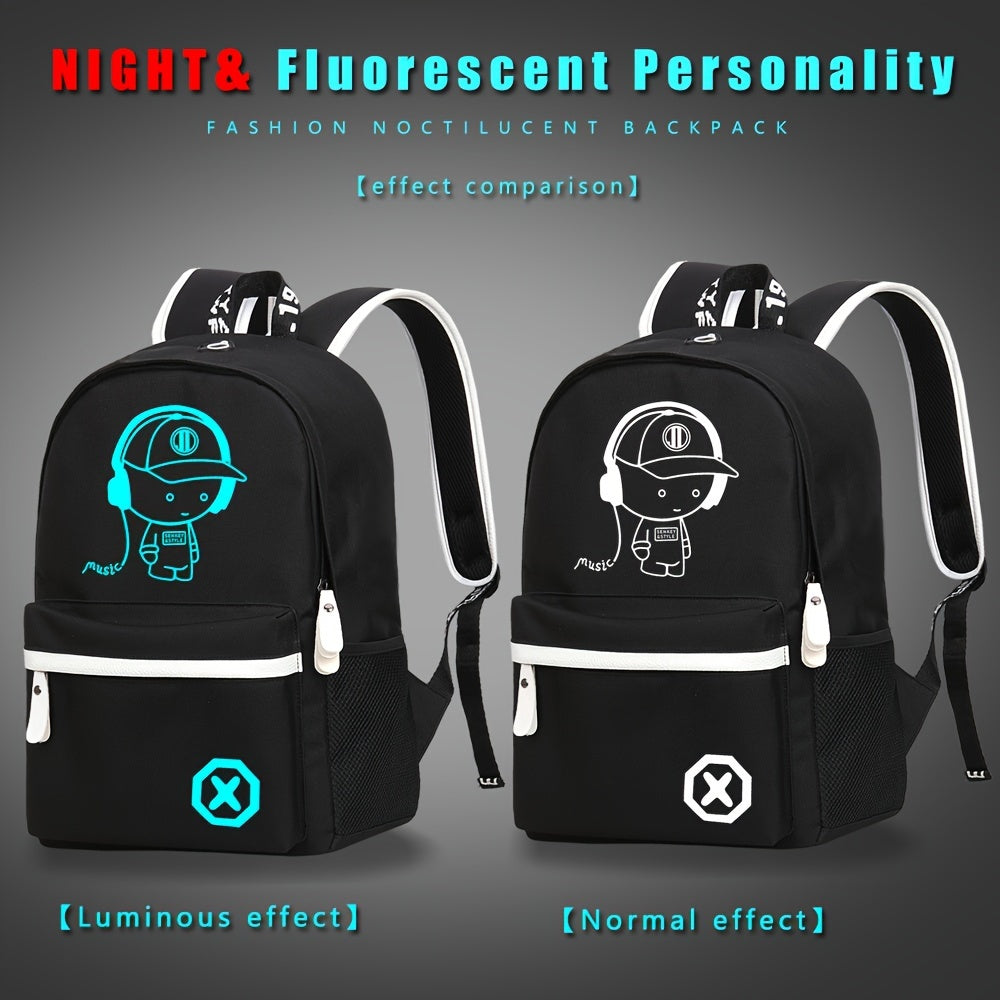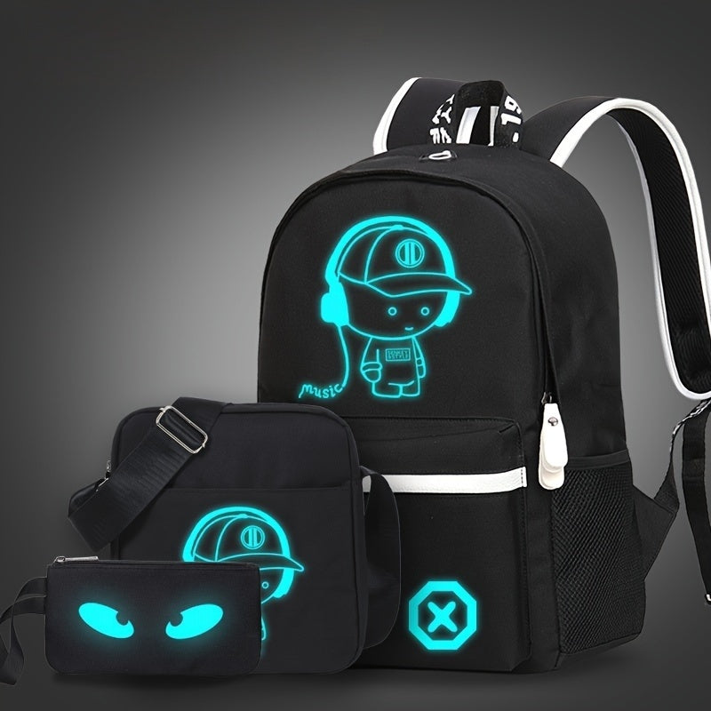New casual Men's backpack set, large capacity to store 15.6-inch laptops, night fluorescent backpack, three piece travel dual-use backpack