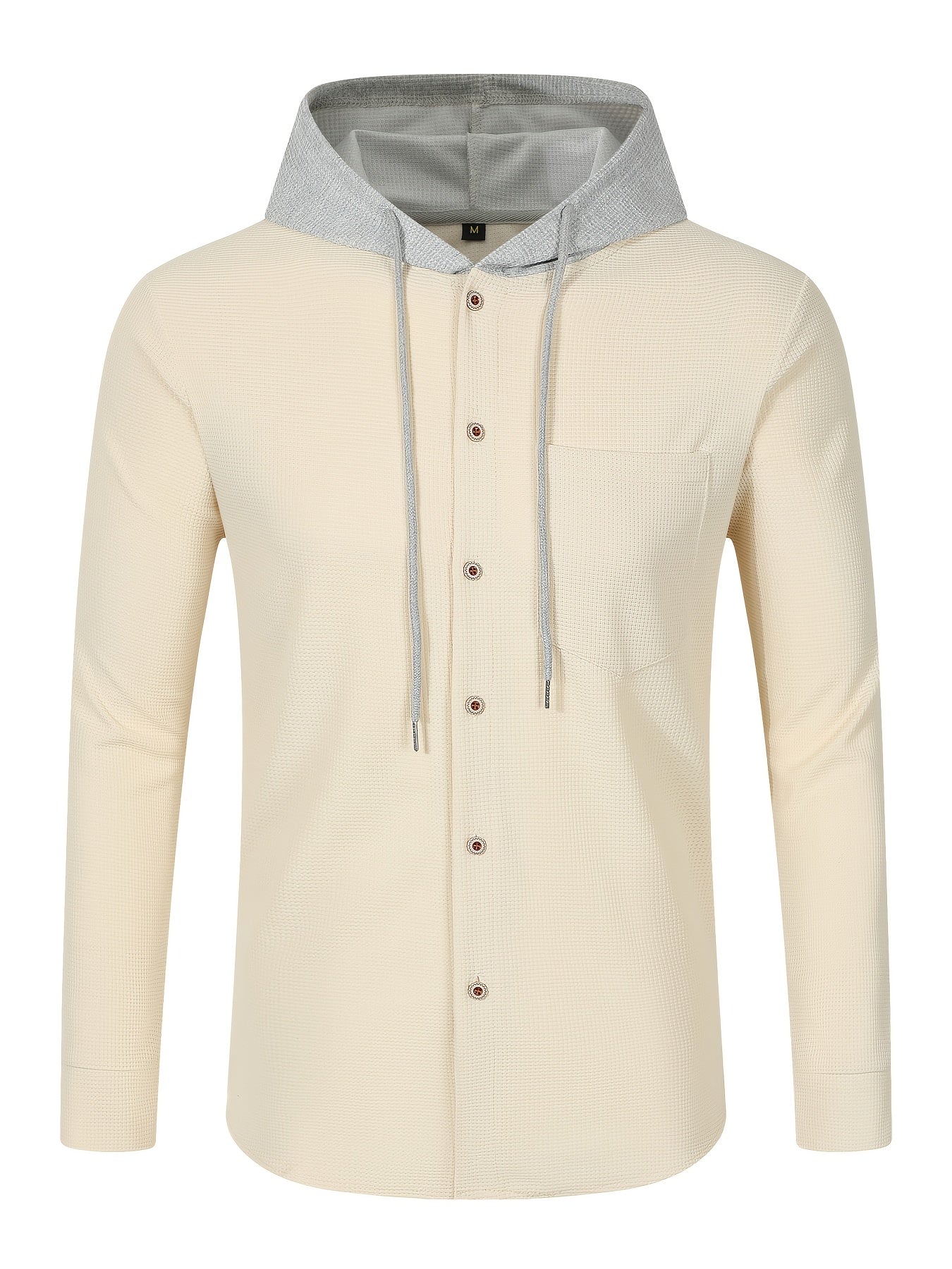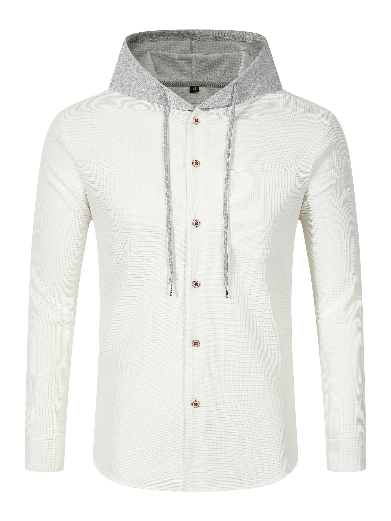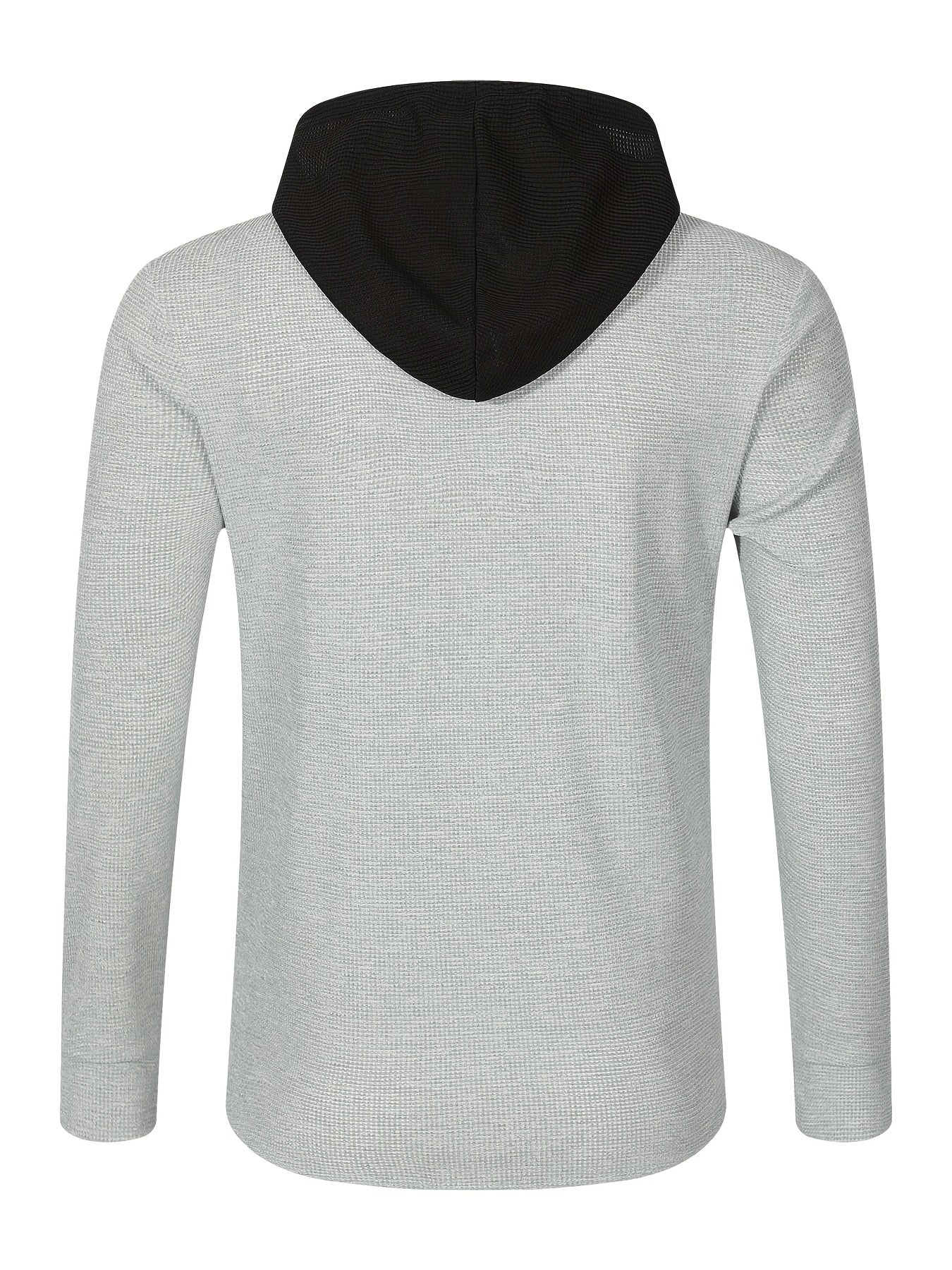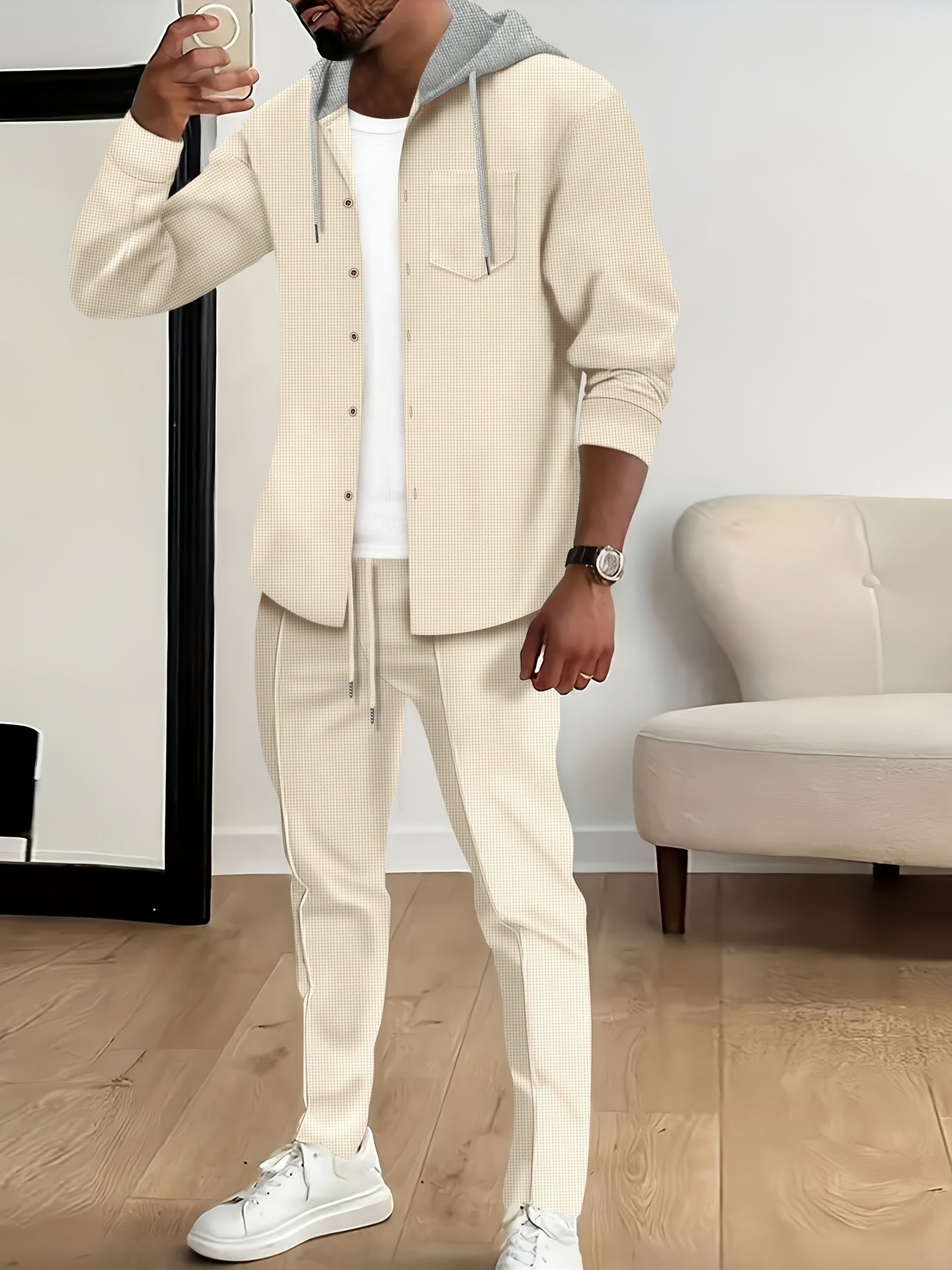 New Long Sleeve Buttoned Hooded Jacket and Rope Pants Set for Spring and Autumn, Waffle Solid Classic Men's Sports 2pcs Sports Suit - Sports Suit for Outdoor Sports Enthusiasts, Breathable and Comfortable