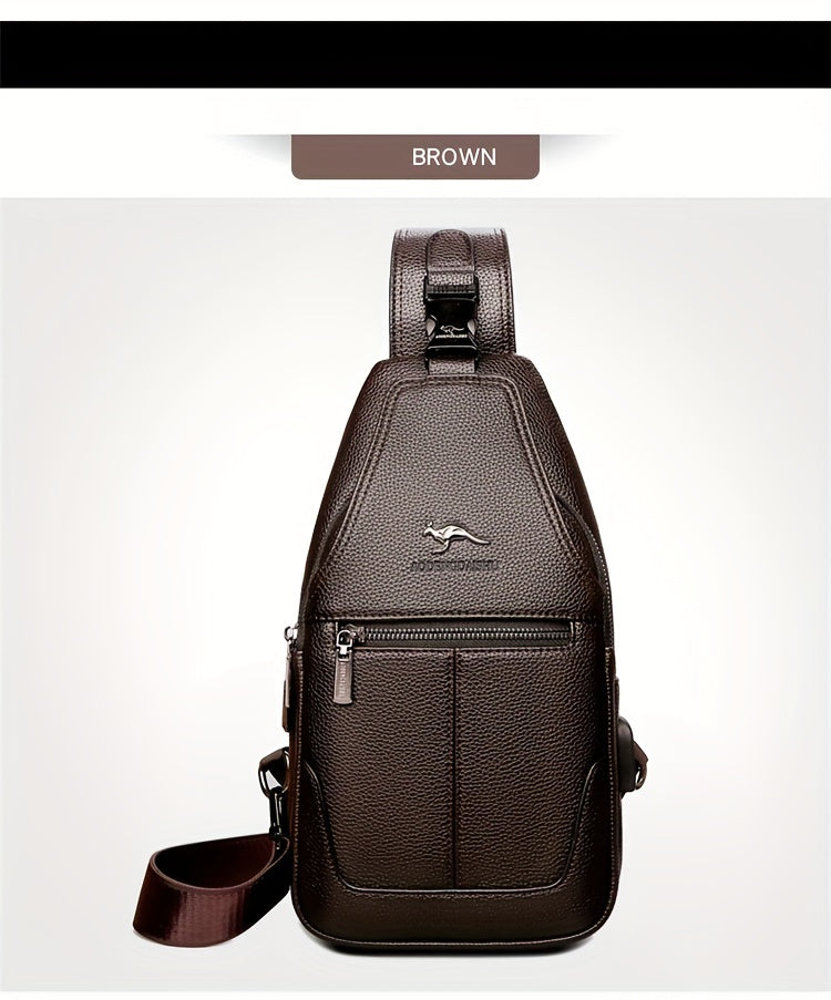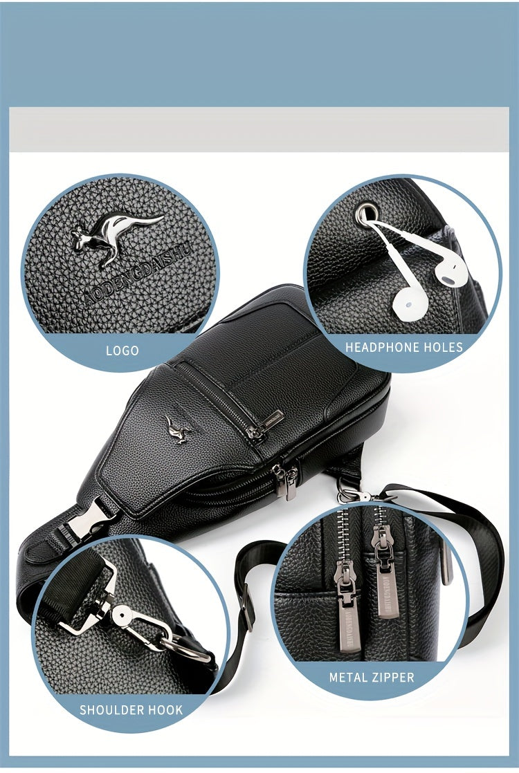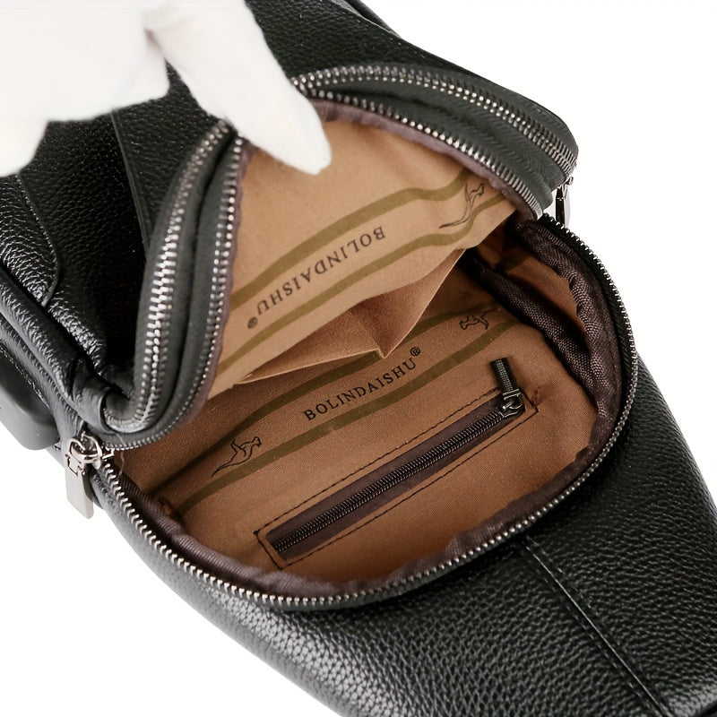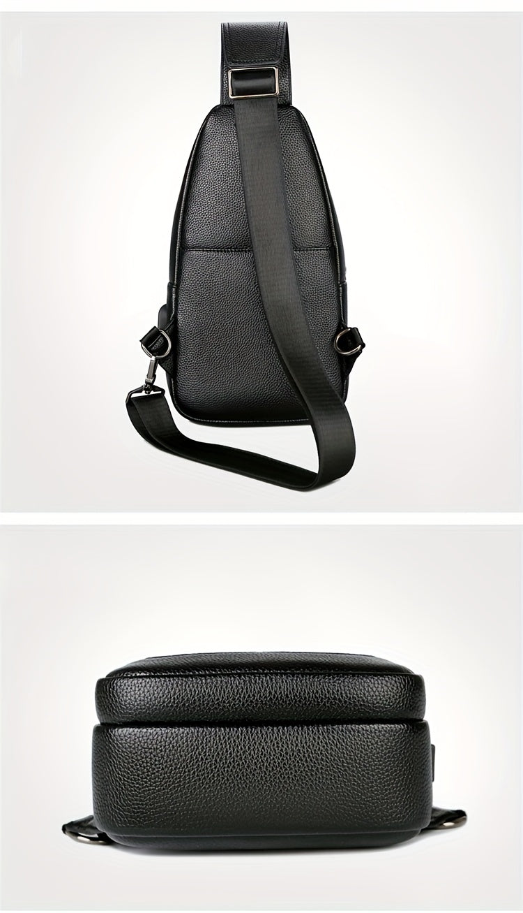 New Men'S Chest Bag 2024 Genuine Faux Leather Texture Crossbody Bag Casual Shoulder Bag Men'S Large Capacity Backpack Trendy
