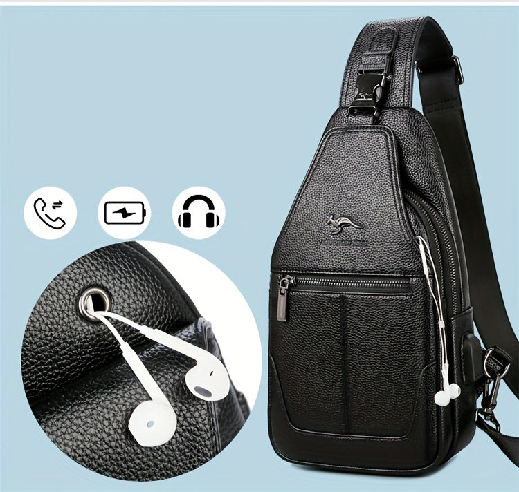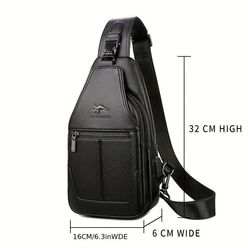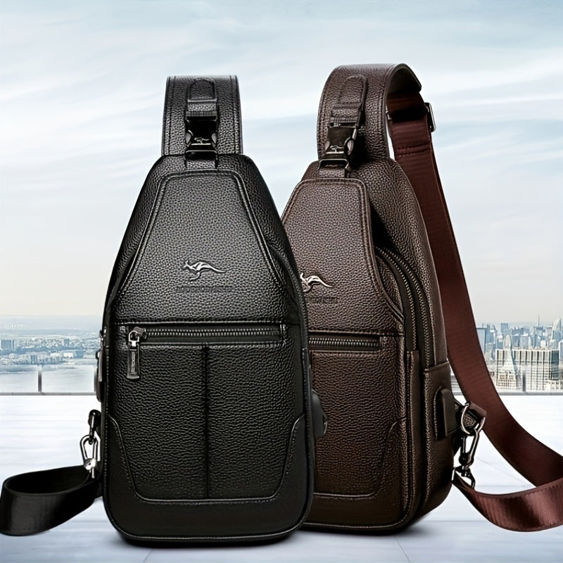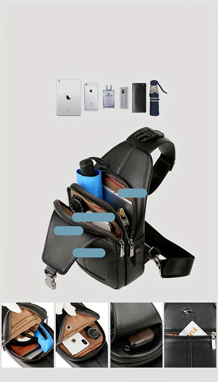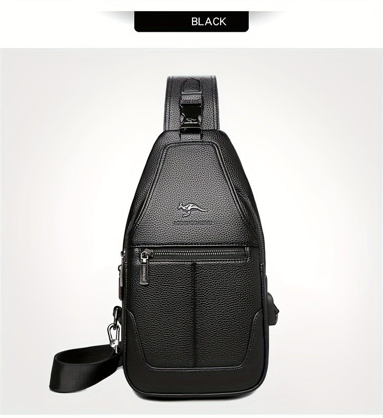 New Men'S Chest Bag 2024 Genuine Faux Leather Texture Crossbody Bag Casual Shoulder Bag Men'S Large Capacity Backpack Trendy