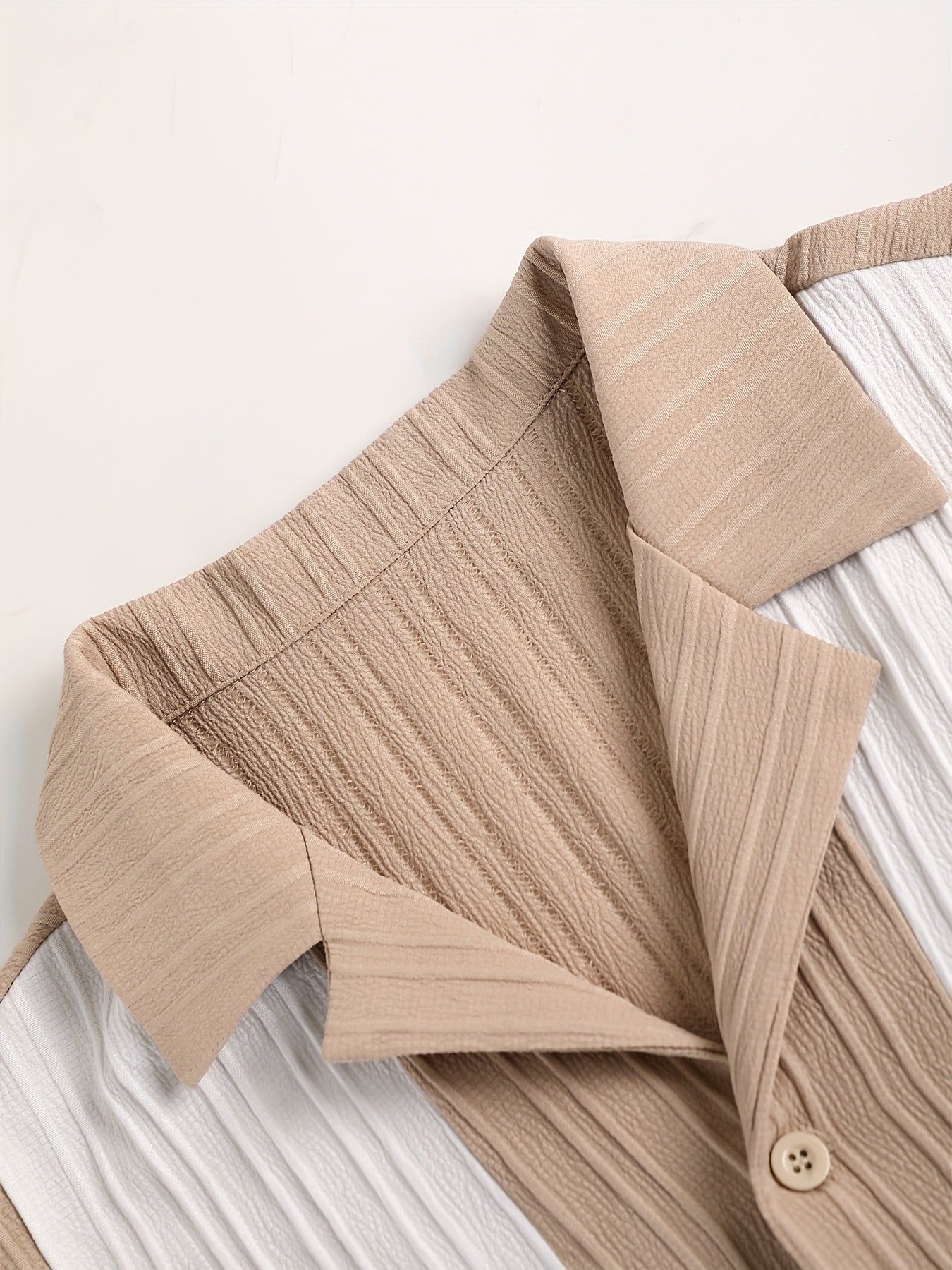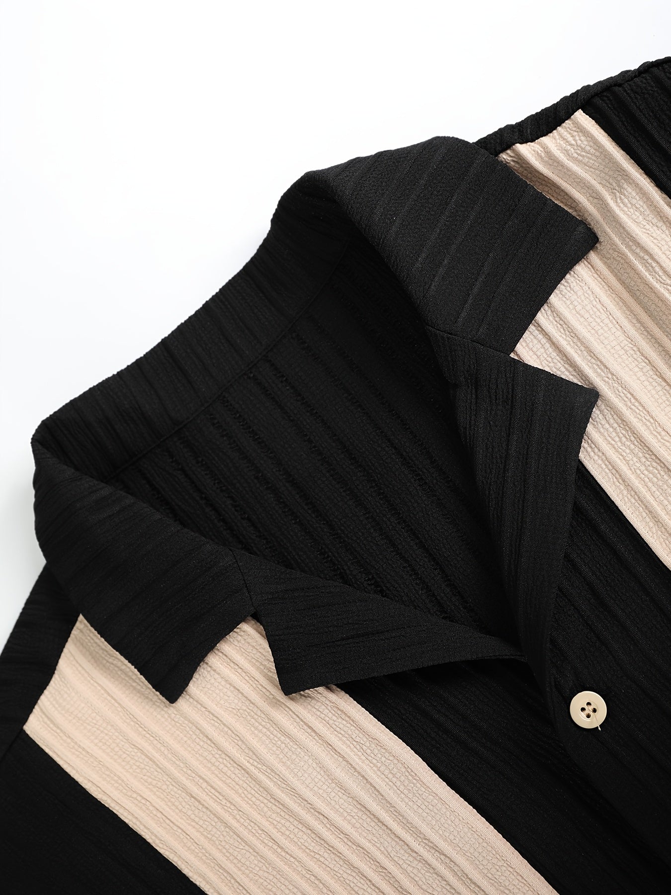 New Men's Colorful French Stripe Short Sleeve Shirt and Trousers Set