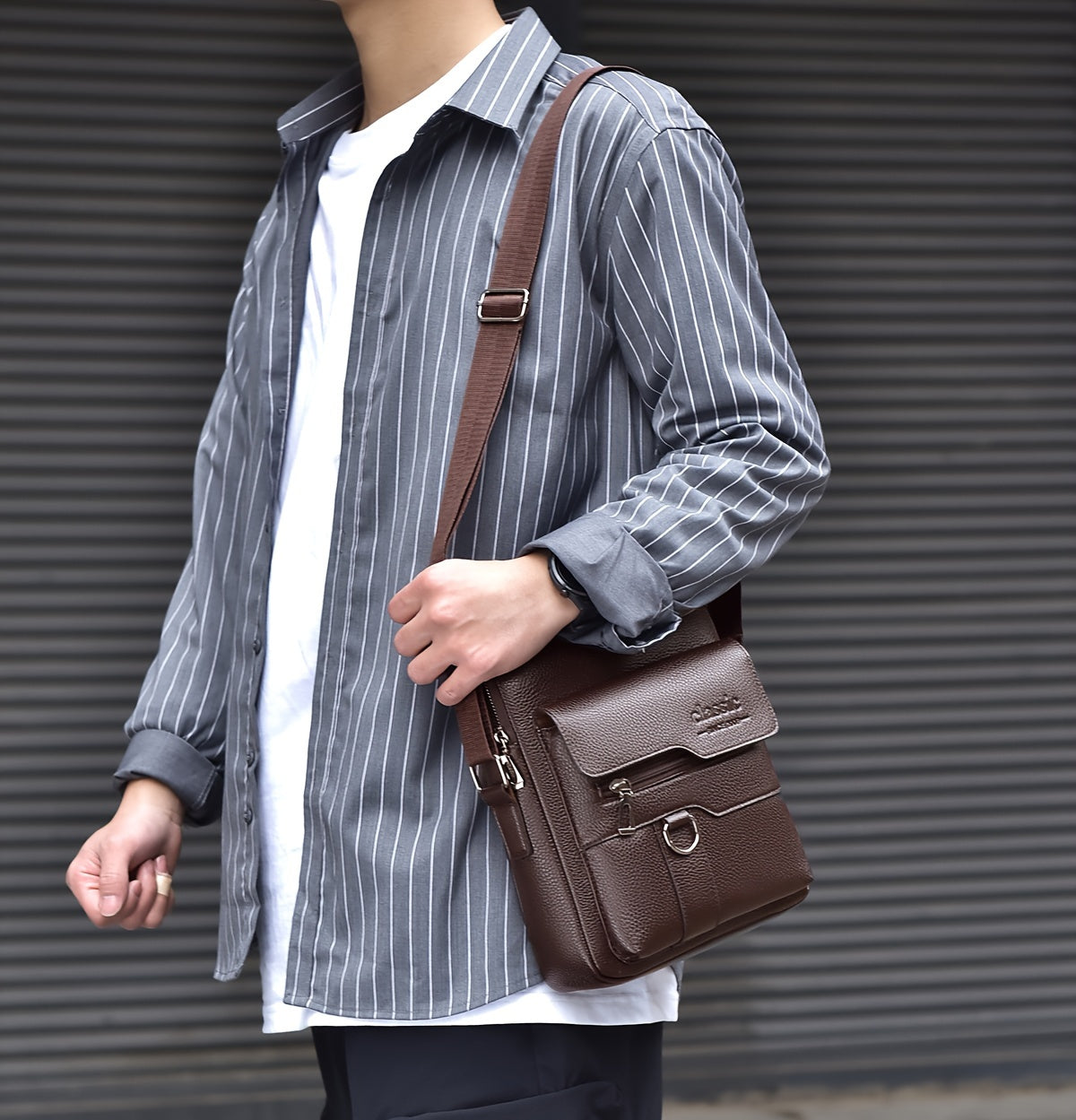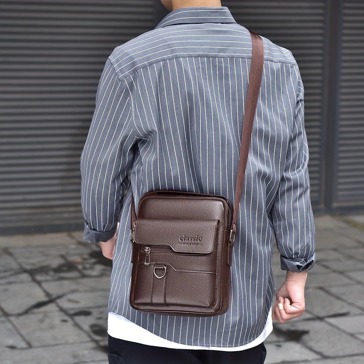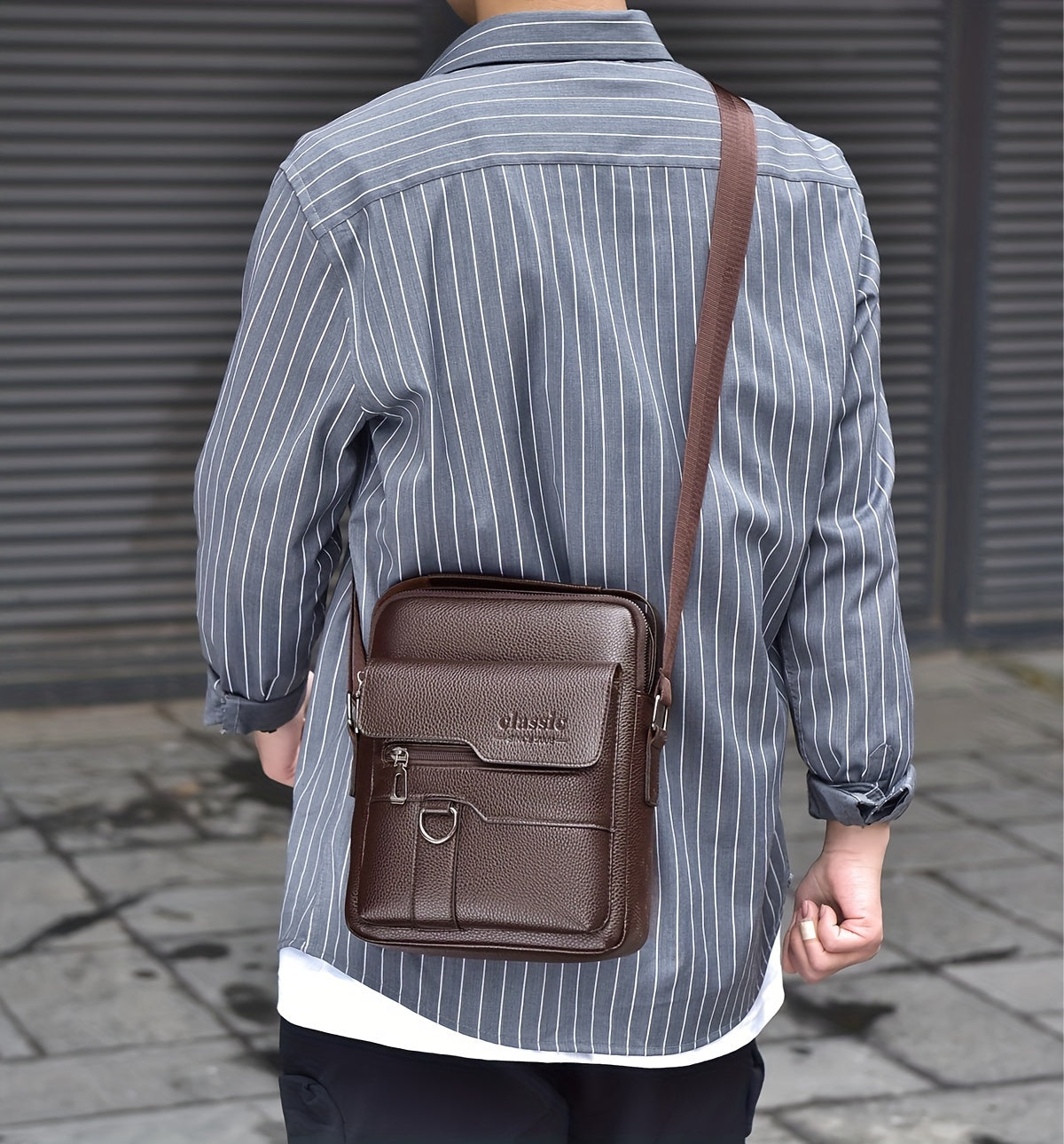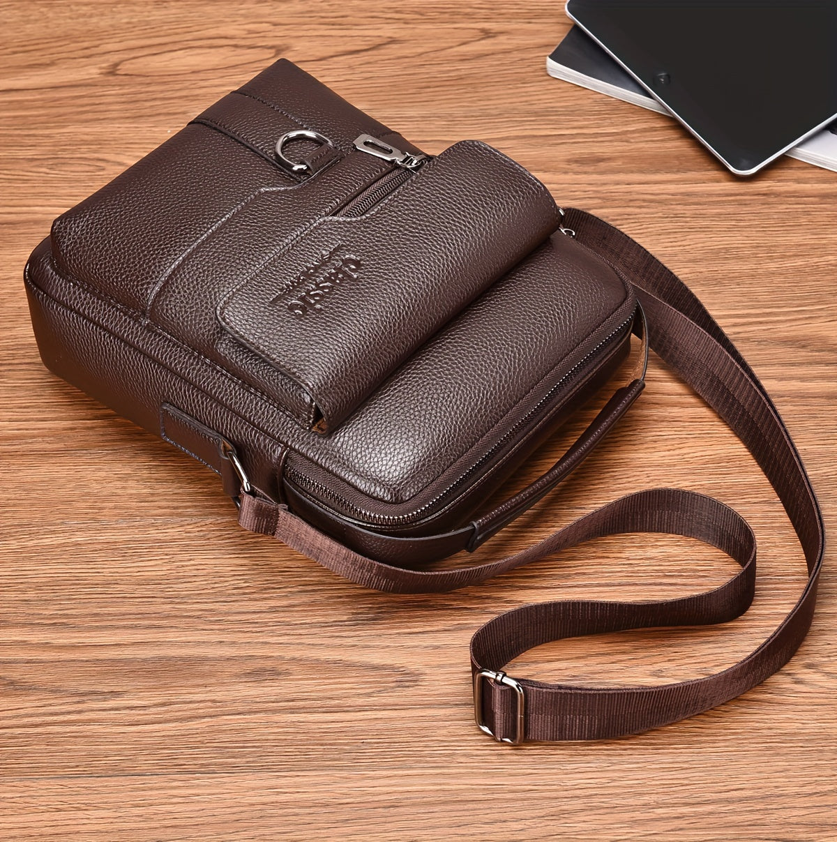 New Men's Crossbody Bag Messenger Bag with Mahogany Pattern Large Capacity Design PU Material Men's Casual Retro Adjustable Shoulder Bag for Going Out Valentine's Day Gift for Husband or Boyfriend