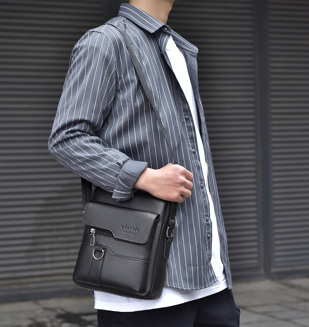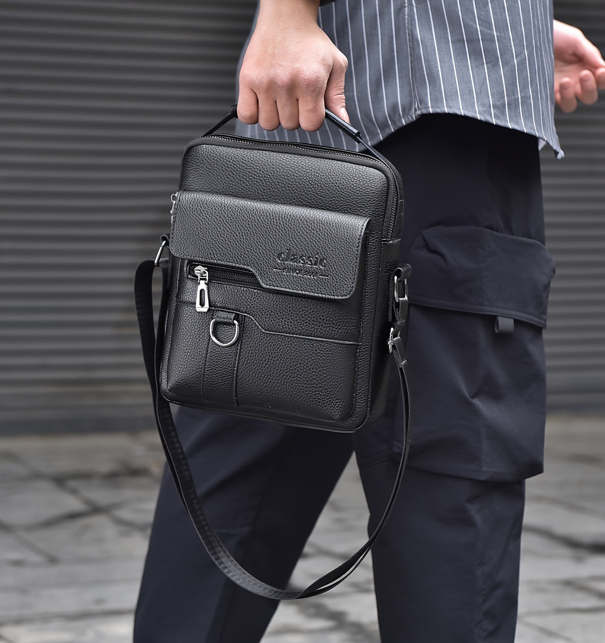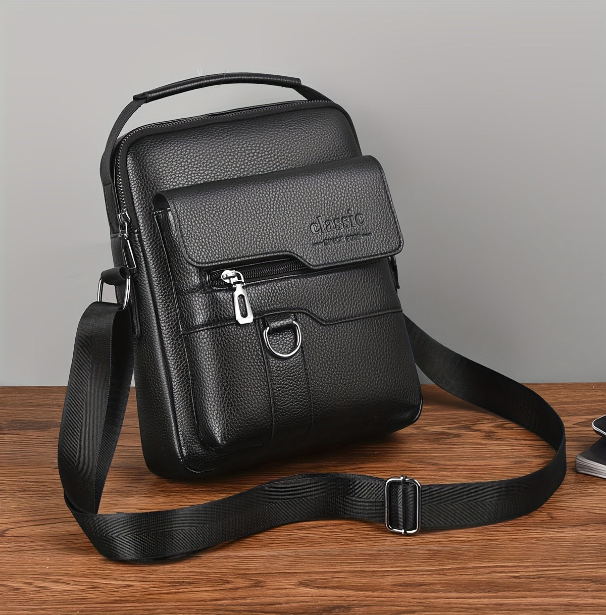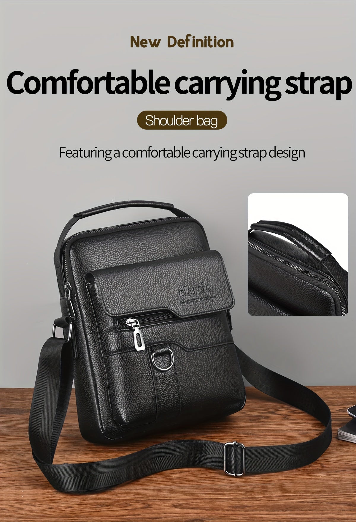 New Men's Crossbody Bag Messenger Bag with Mahogany Pattern Large Capacity Design PU Material Men's Casual Retro Adjustable Shoulder Bag for Going Out Valentine's Day Gift for Husband or Boyfriend