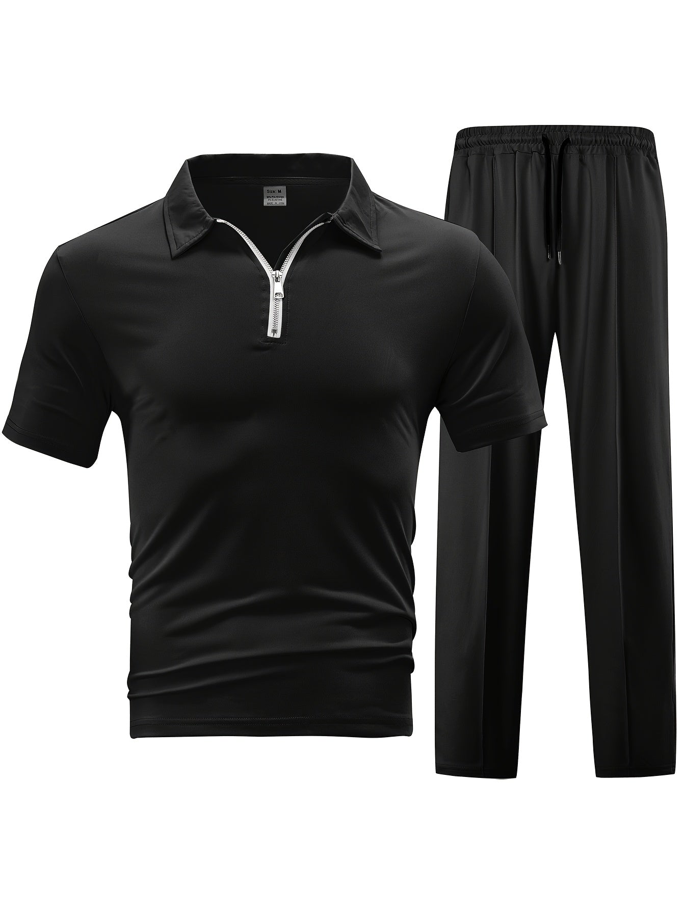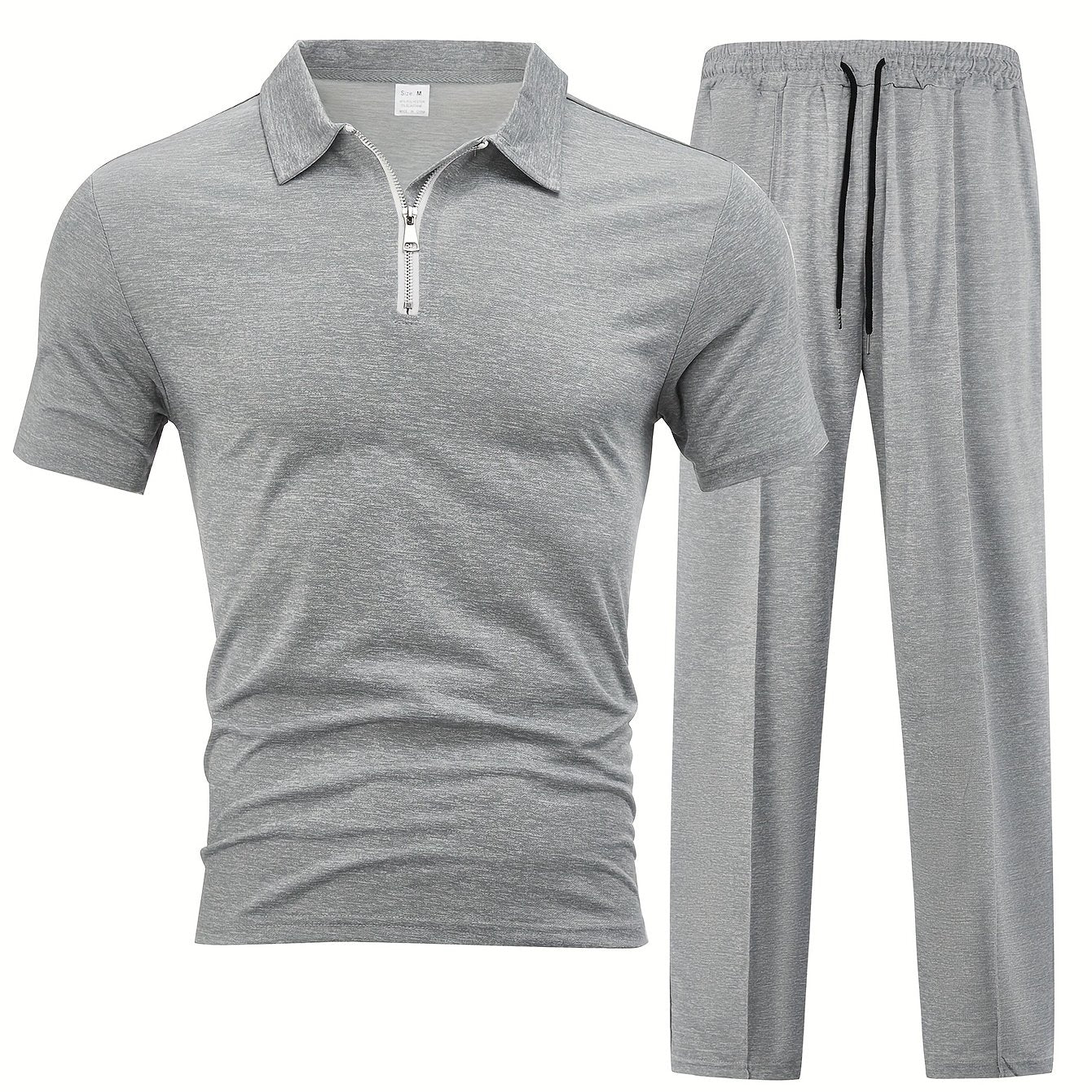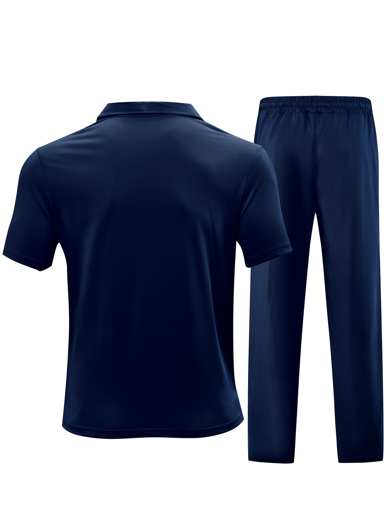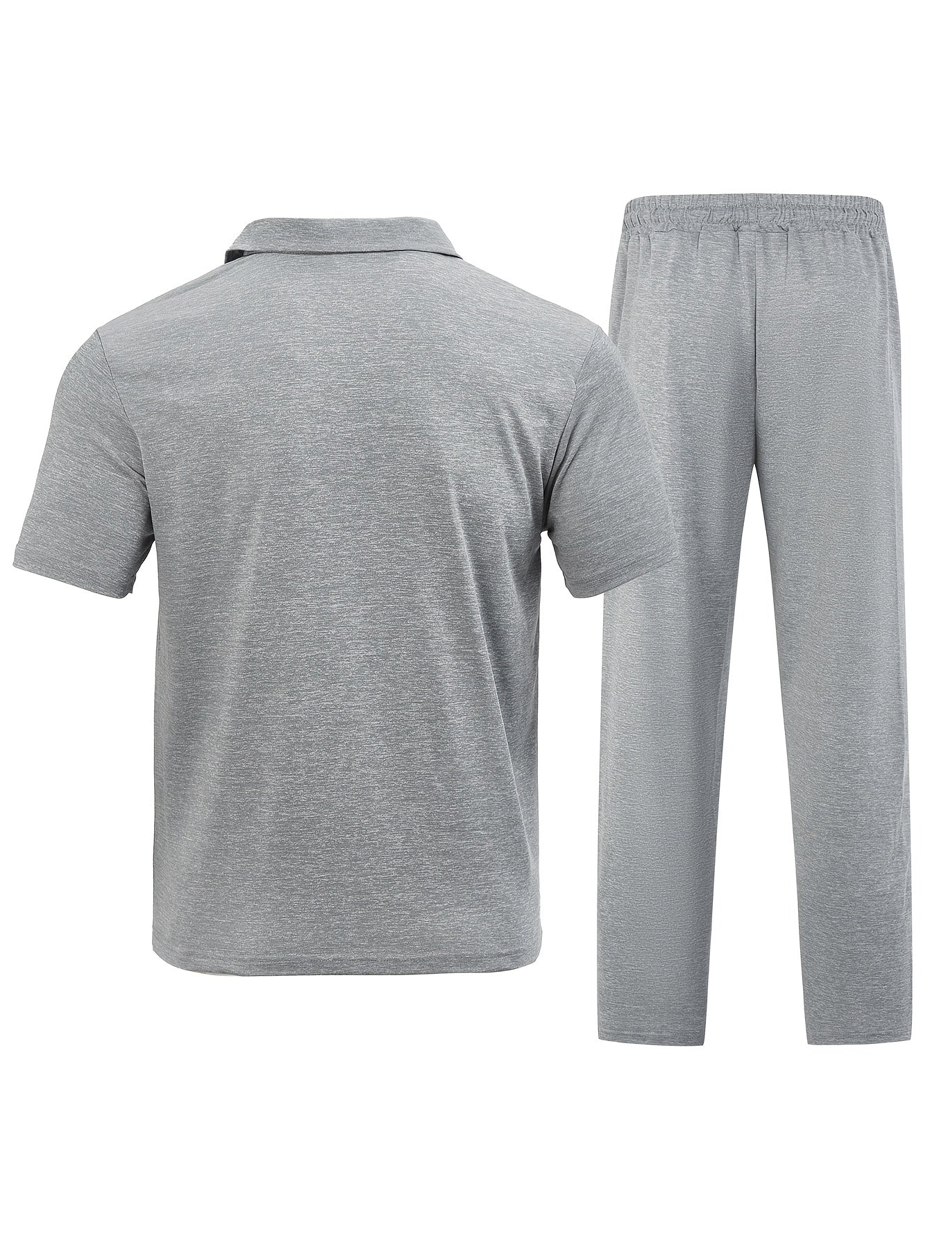 New Spring Fashion Casual Polo Shirt Zipper Men'S Casual Sports Long Pants Short Sleeve Two-Piece Set