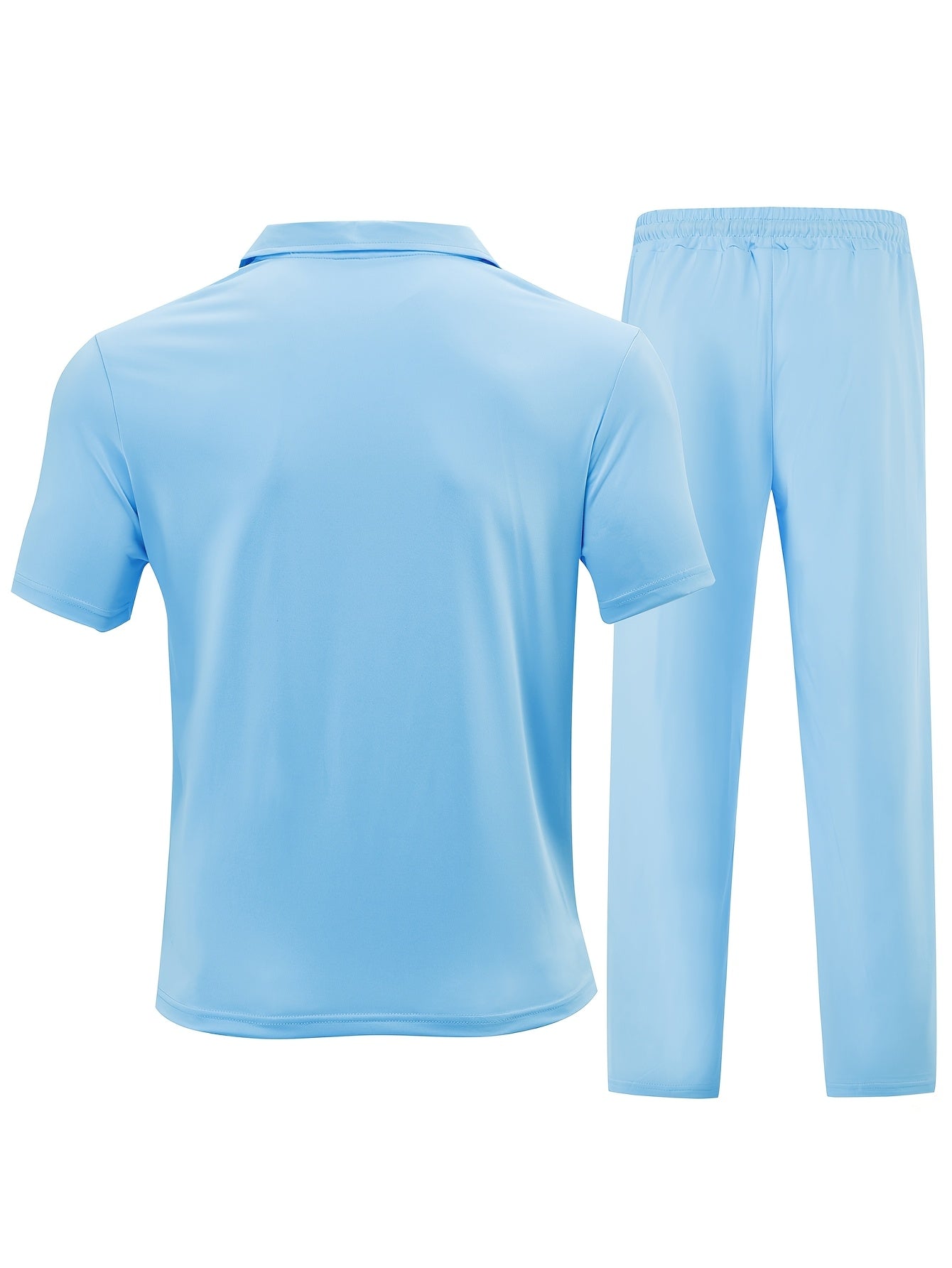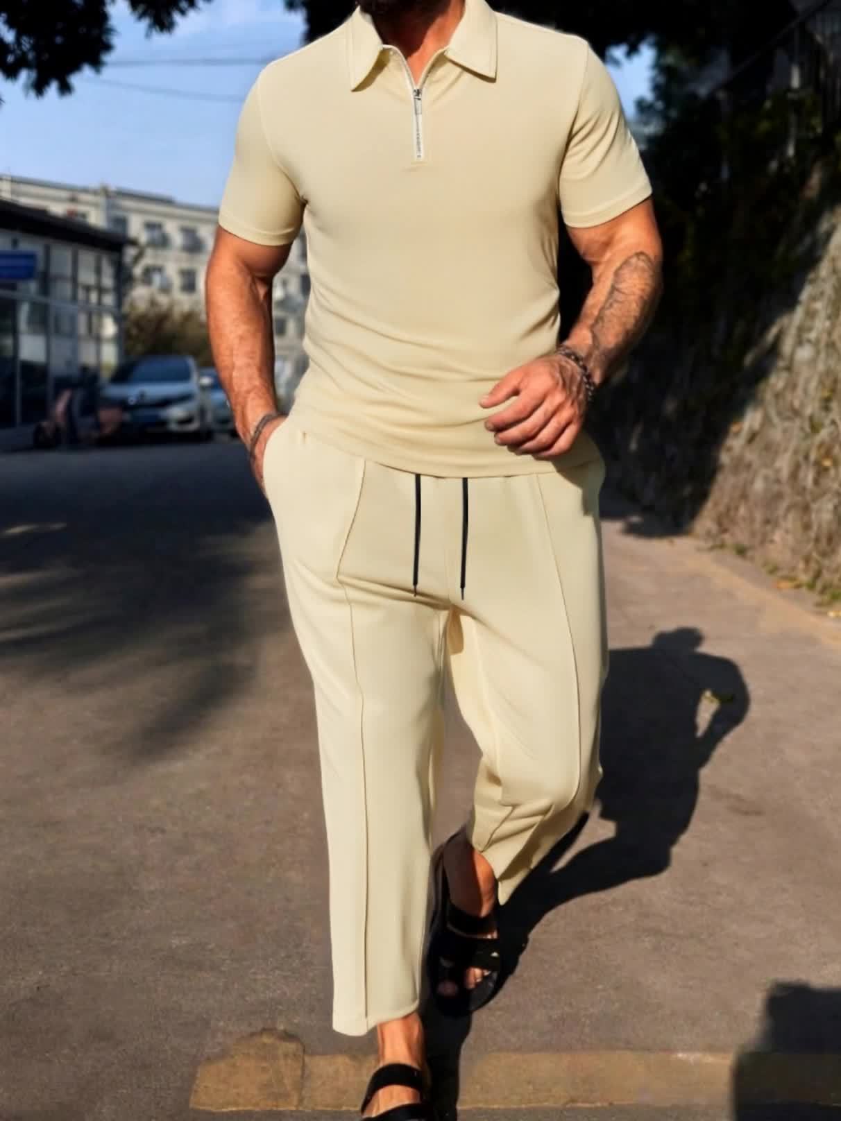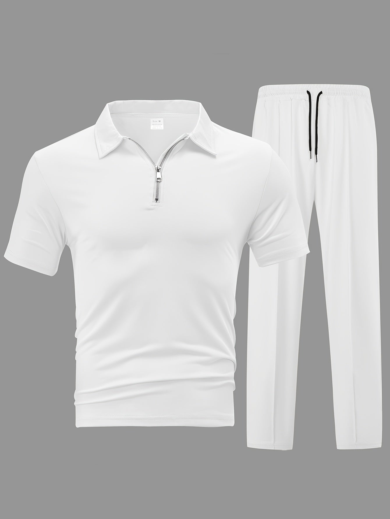 New Spring Fashion Casual Polo Shirt Zipper Men'S Casual Sports Long Pants Short Sleeve Two-Piece Set