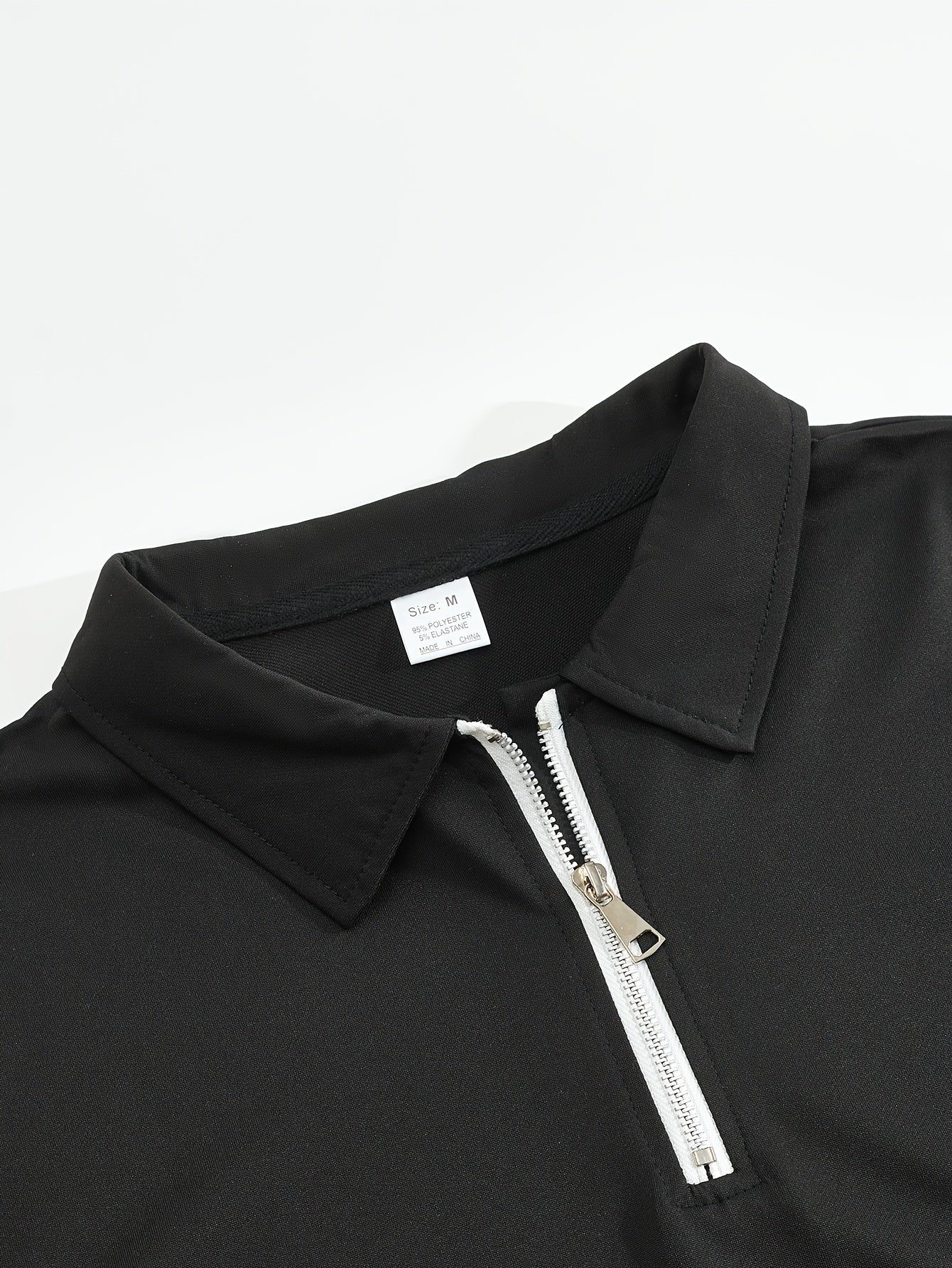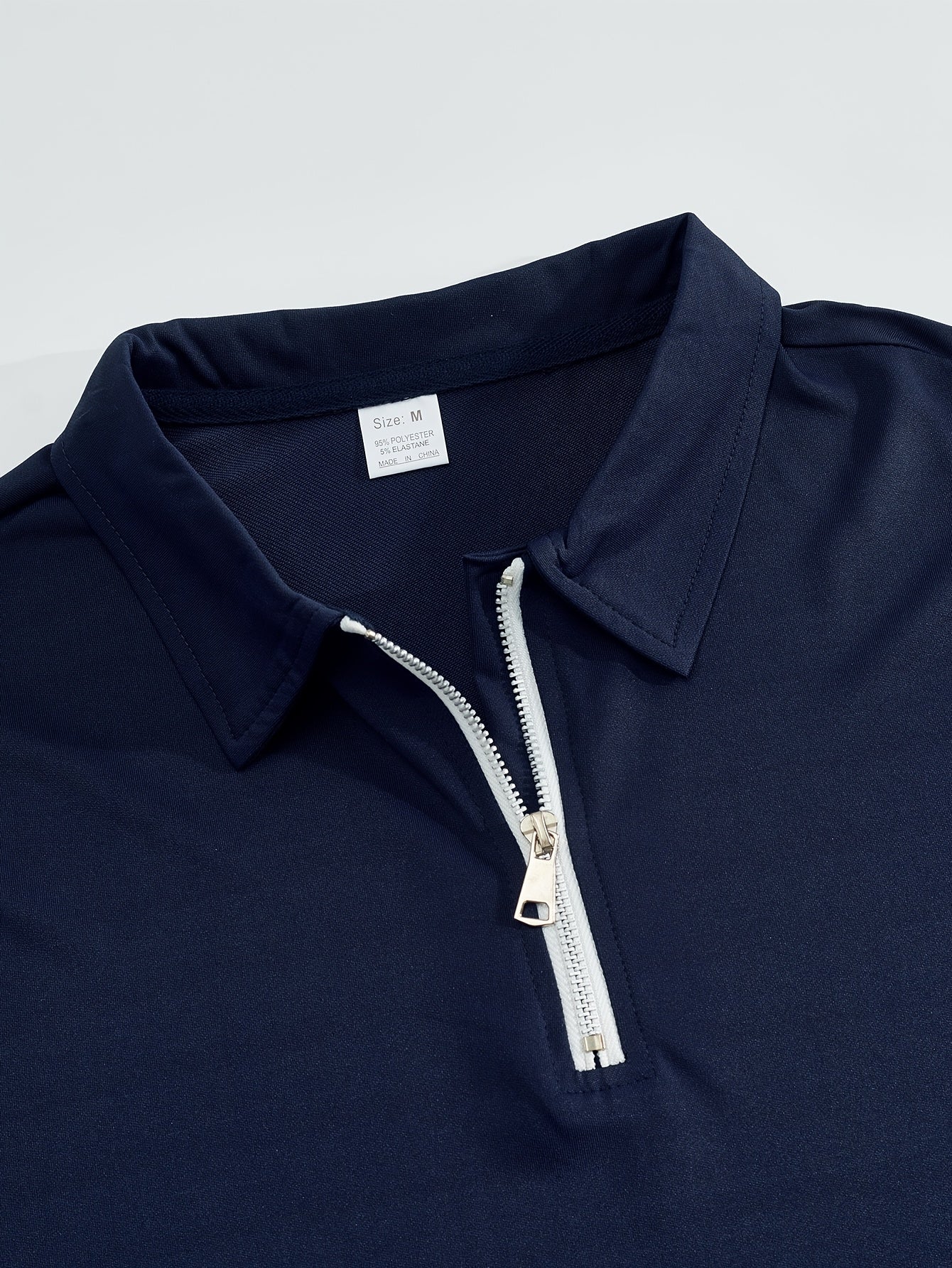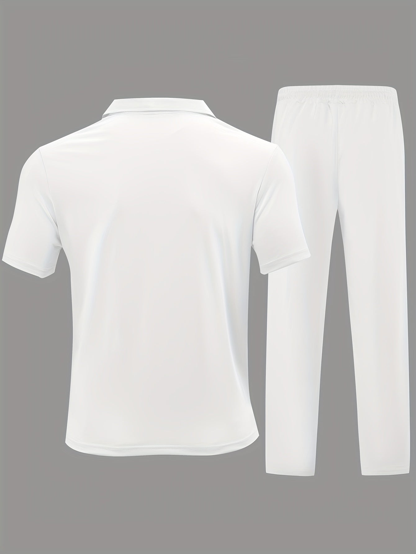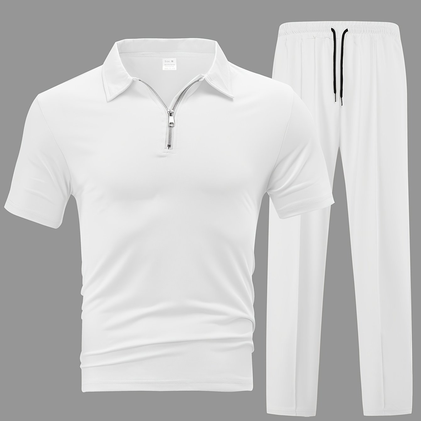 New Spring Fashion Casual Polo Shirt Zipper Men'S Casual Sports Long Pants Short Sleeve Two-Piece Set
