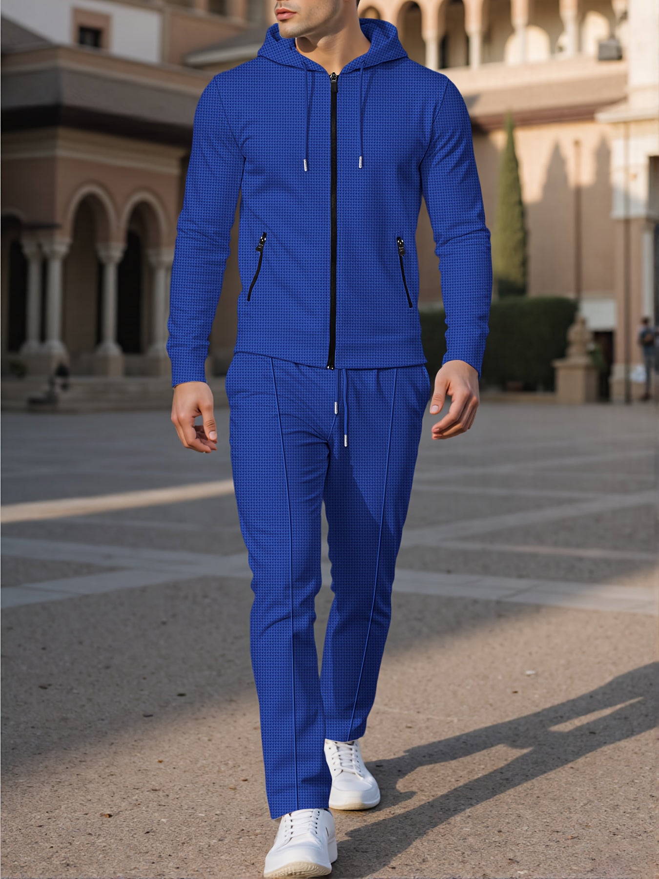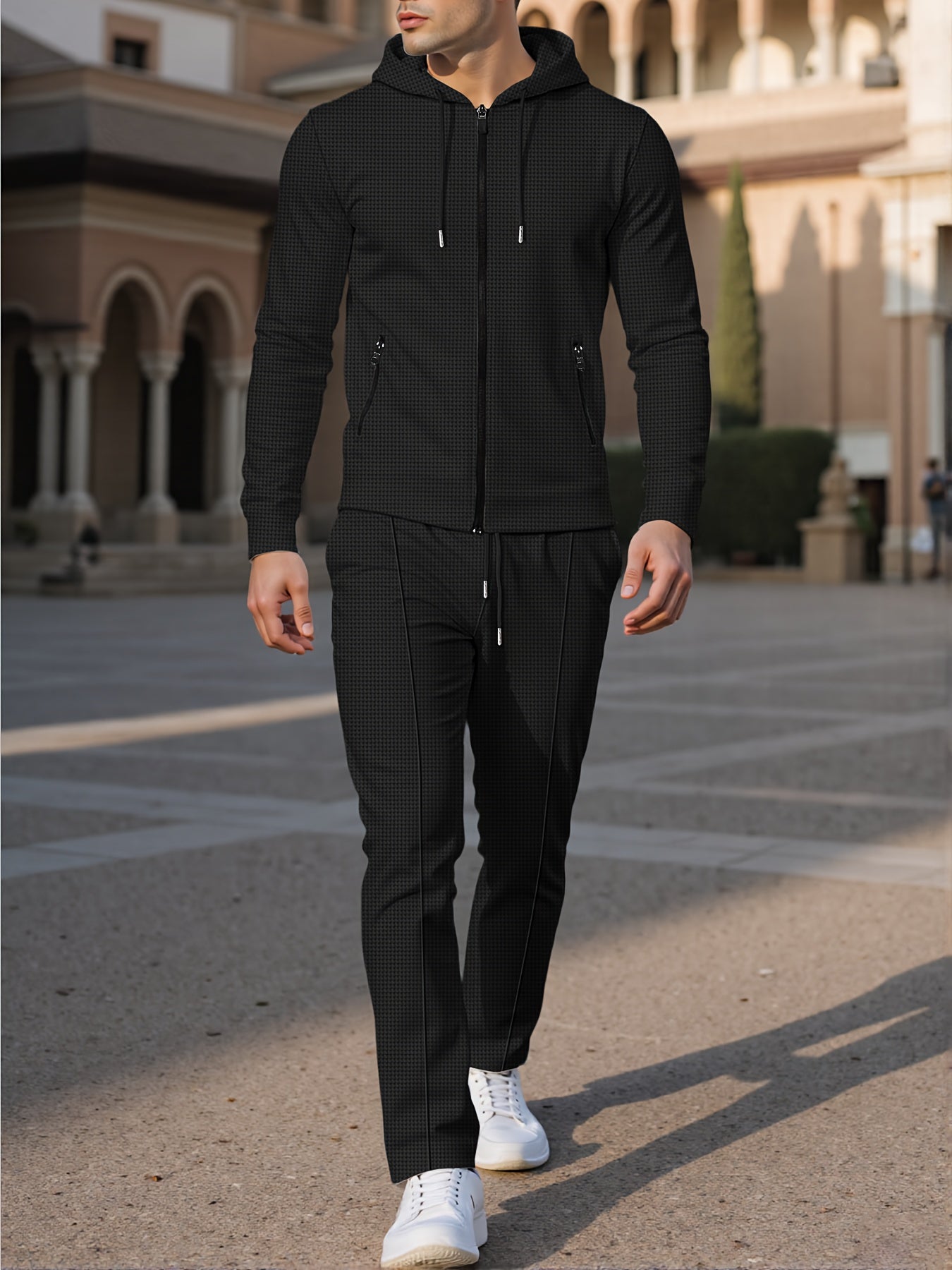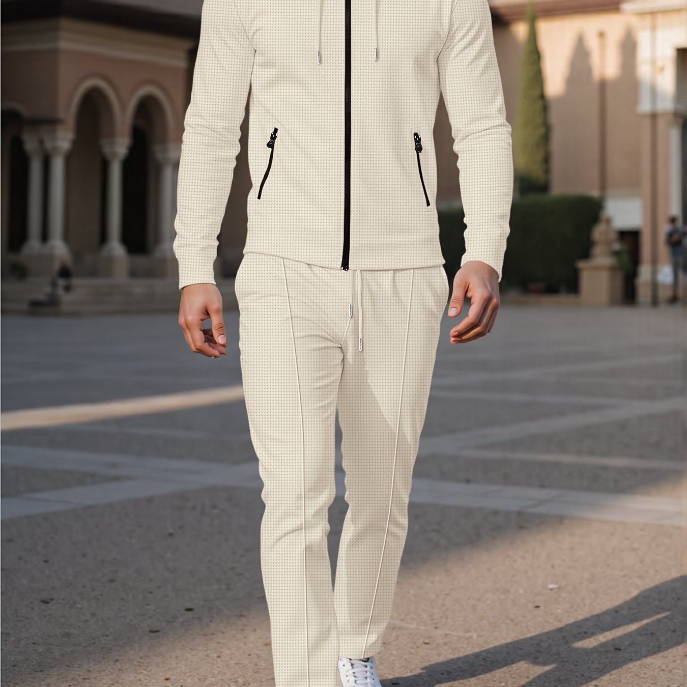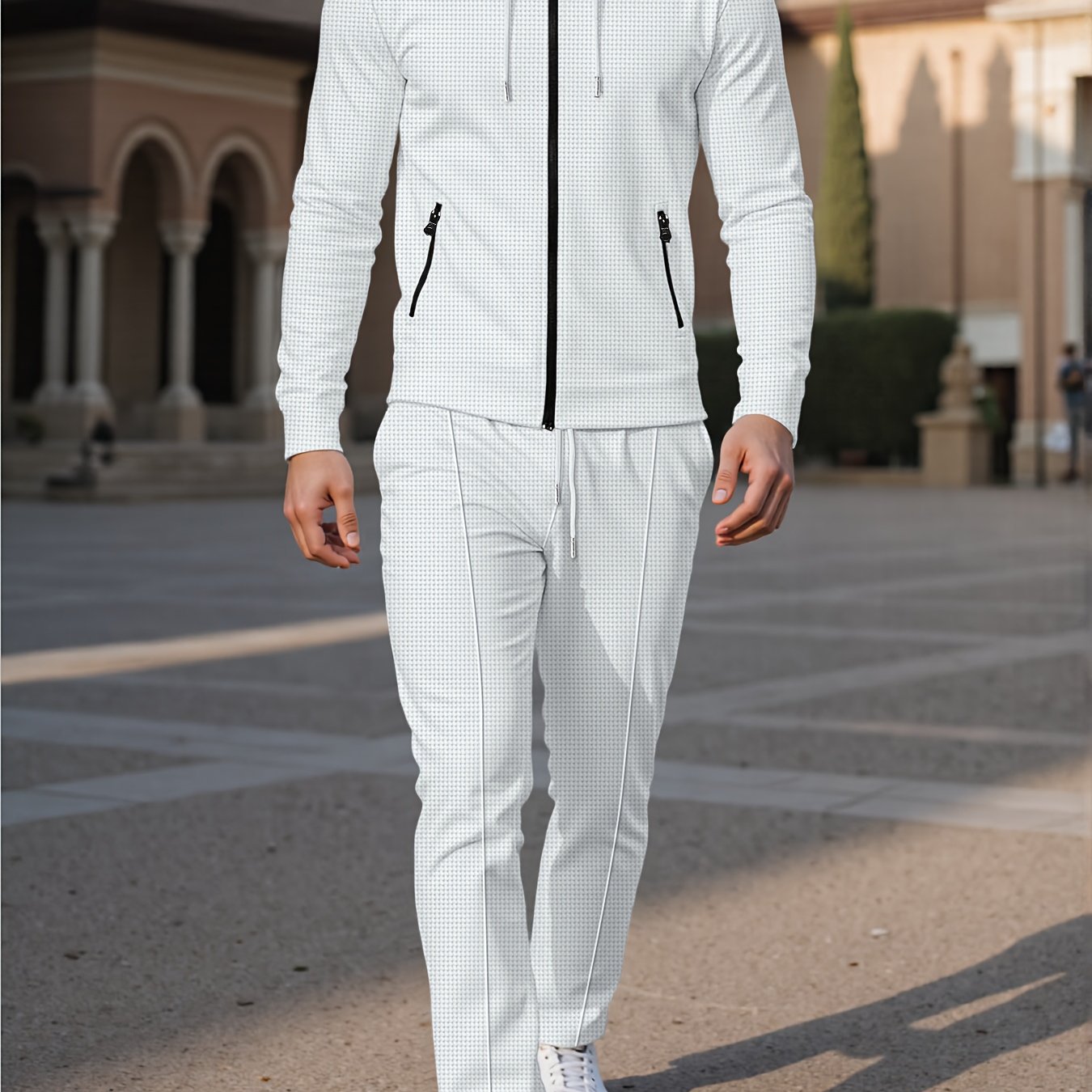 New Style Autumn Men's 2pcs Set, Casual Hooded Long Sleeve Zip-Up Sweatshirt and Drawstring Jogger Pants with Pockets, All-Season Outfit for Men