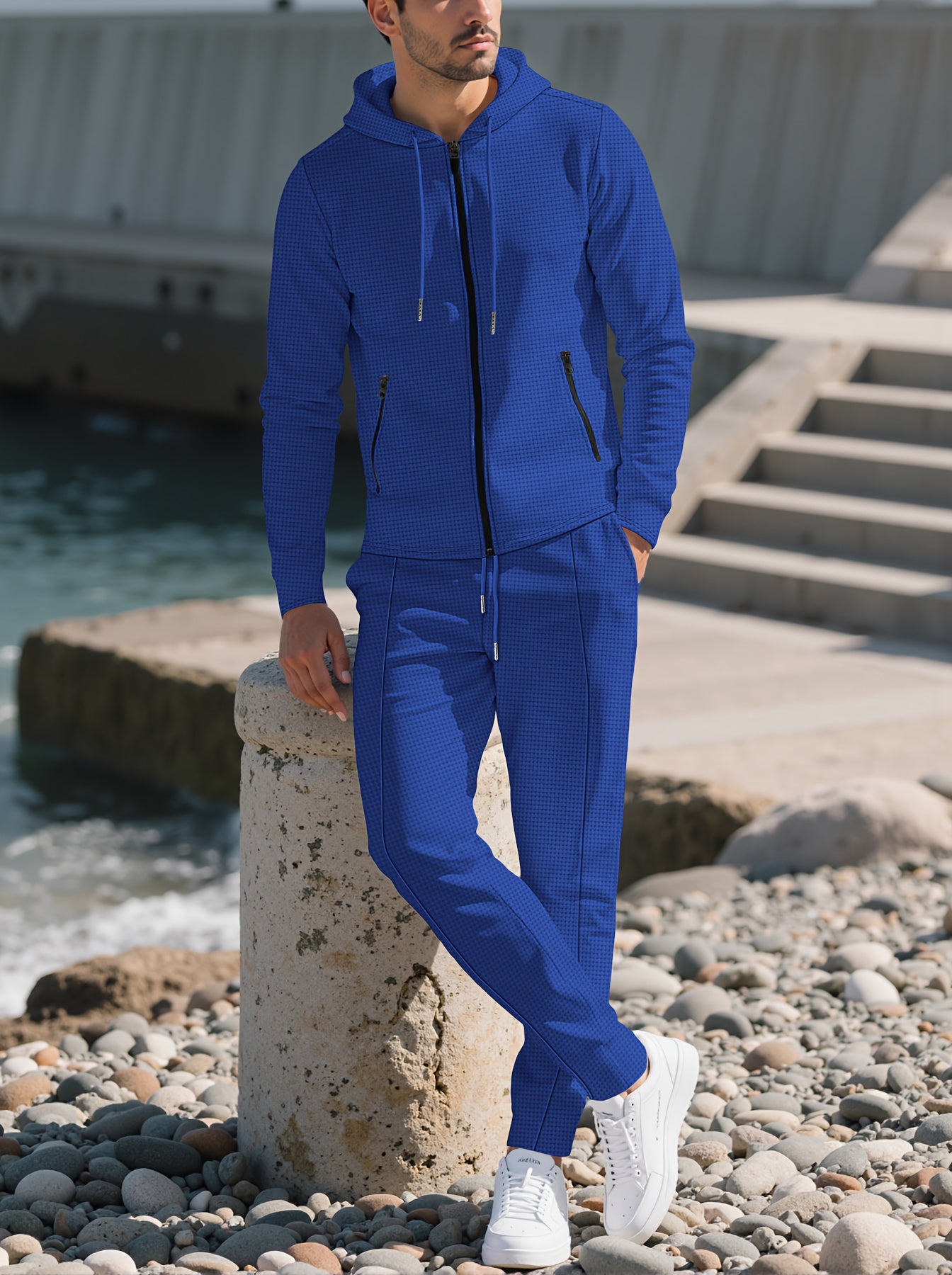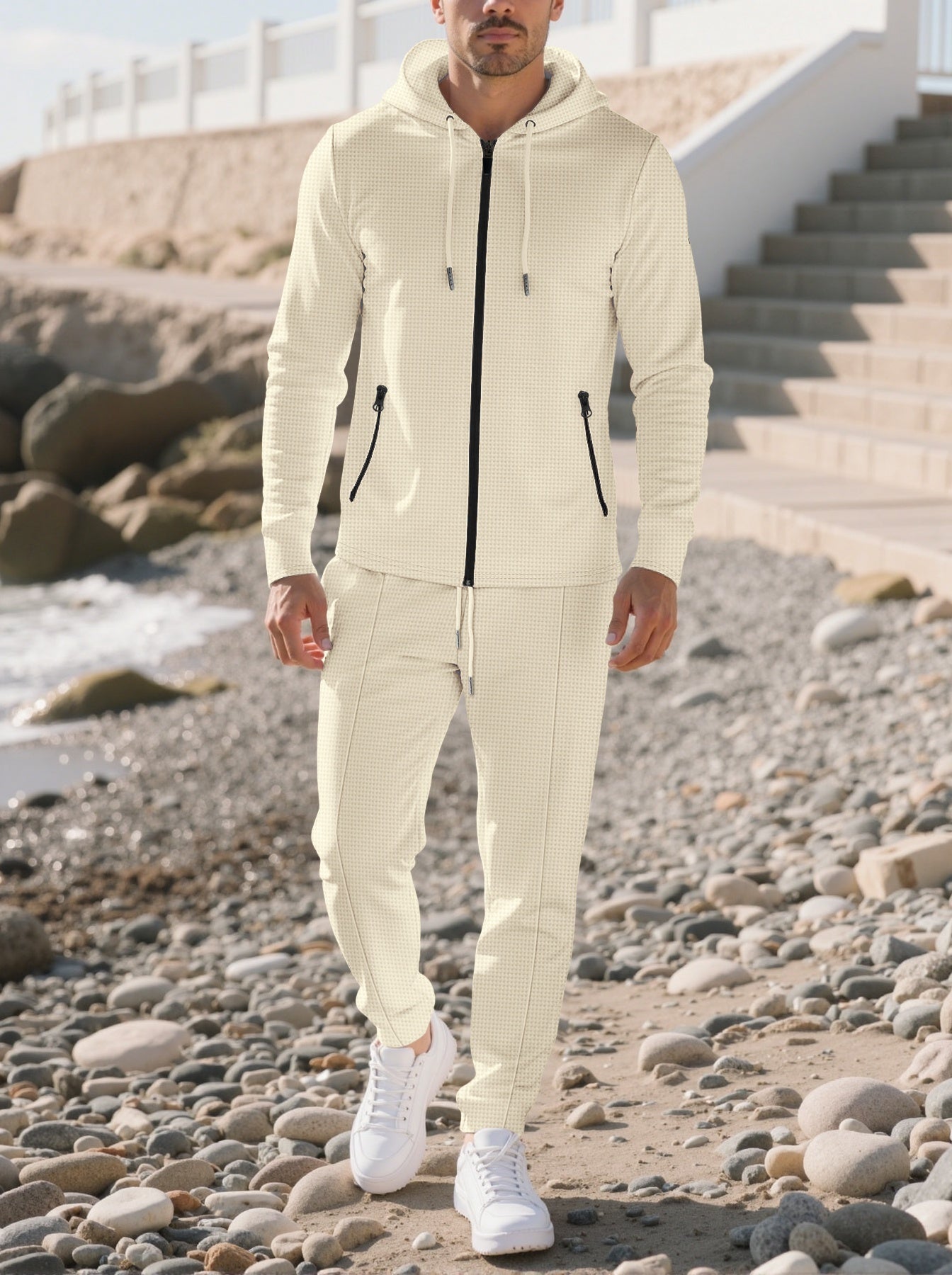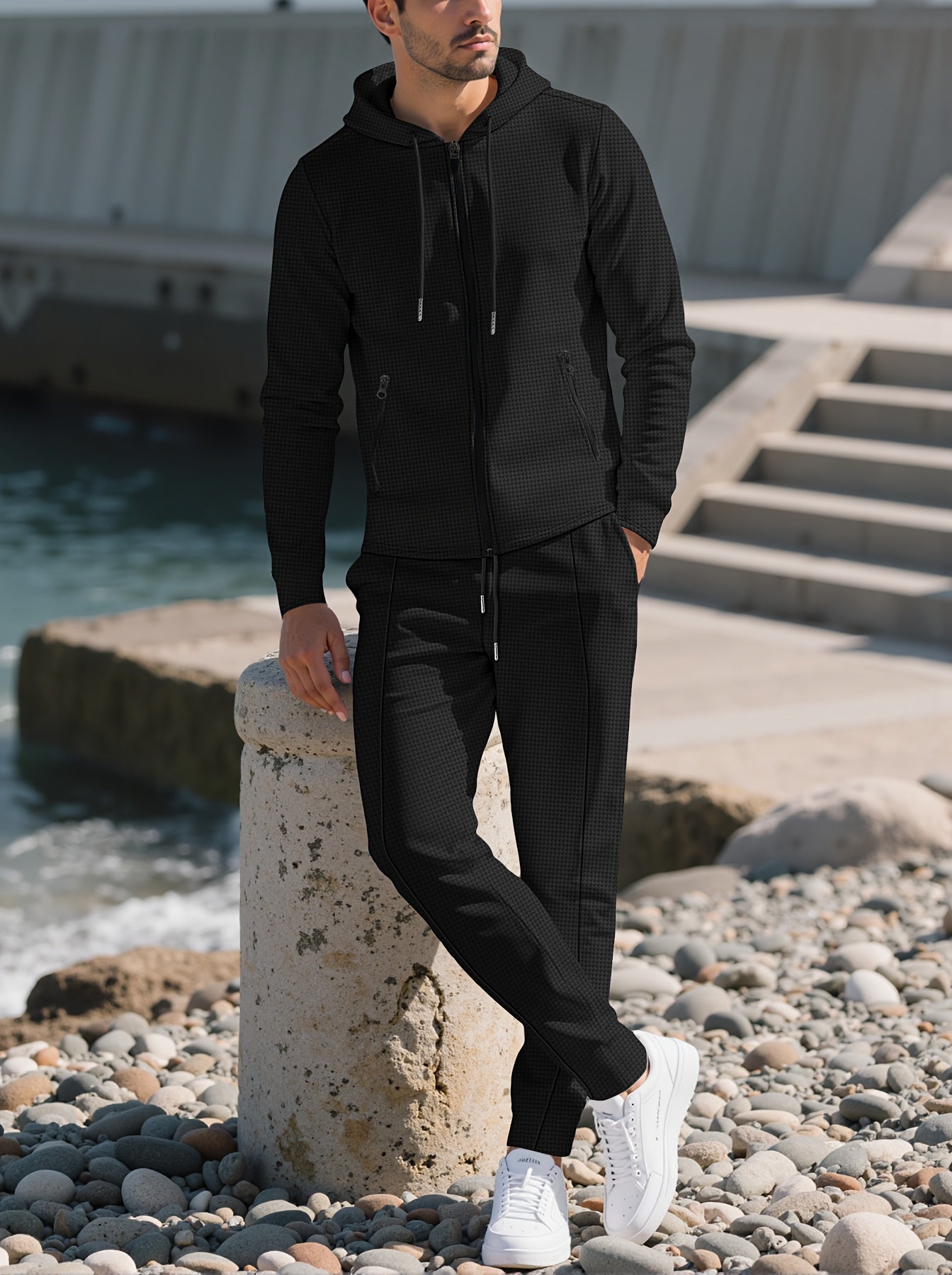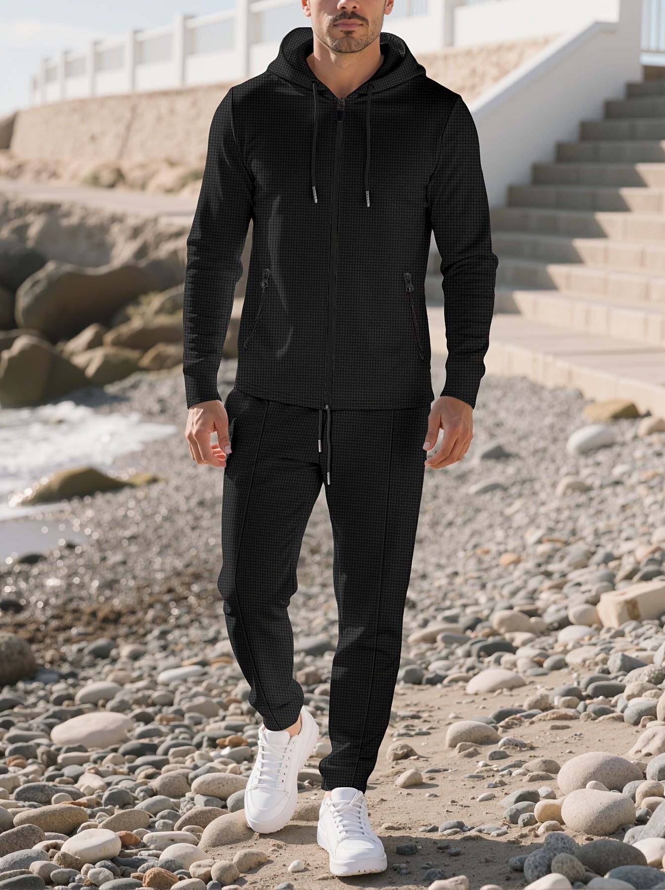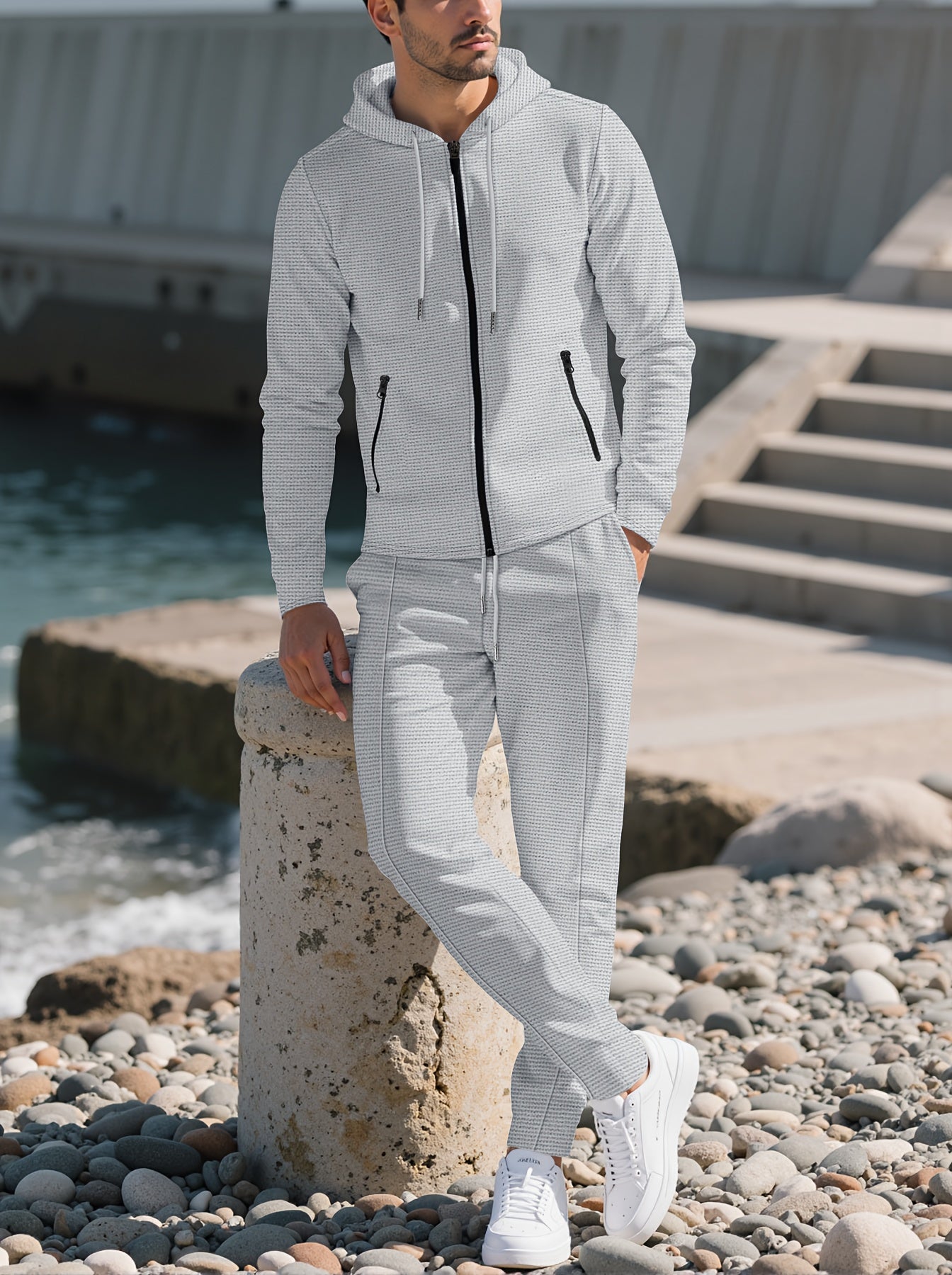 New Style Autumn Men's 2pcs Set, Casual Hooded Long Sleeve Zip-Up Sweatshirt and Drawstring Jogger Pants with Pockets, All-Season Outfit for Men