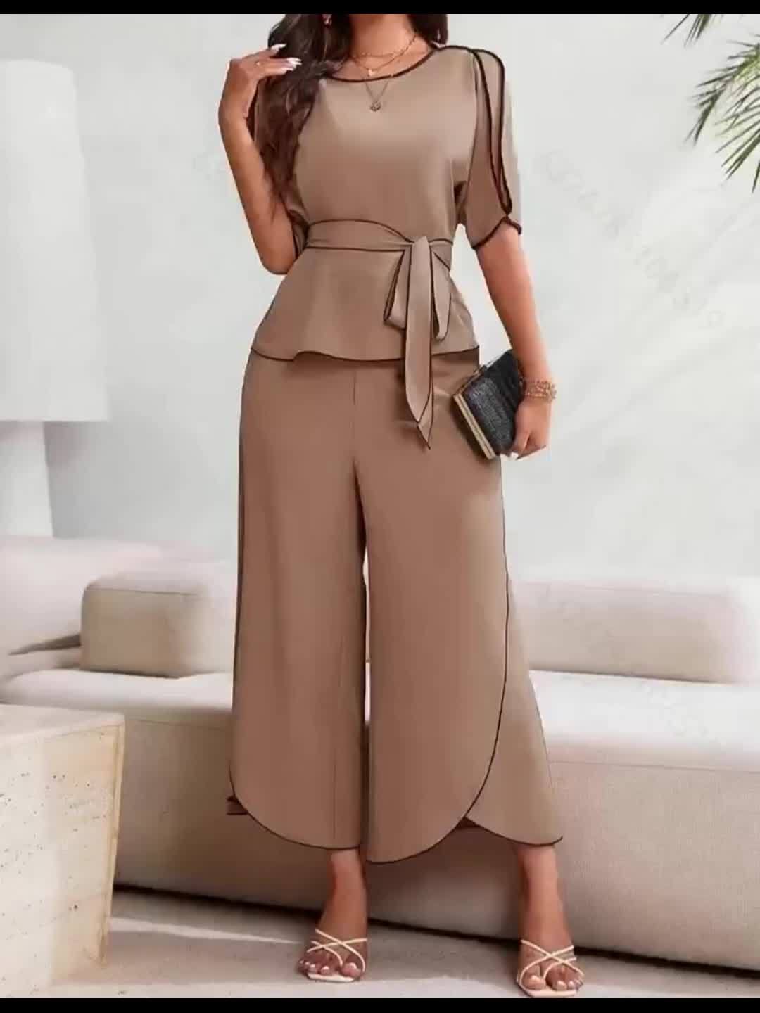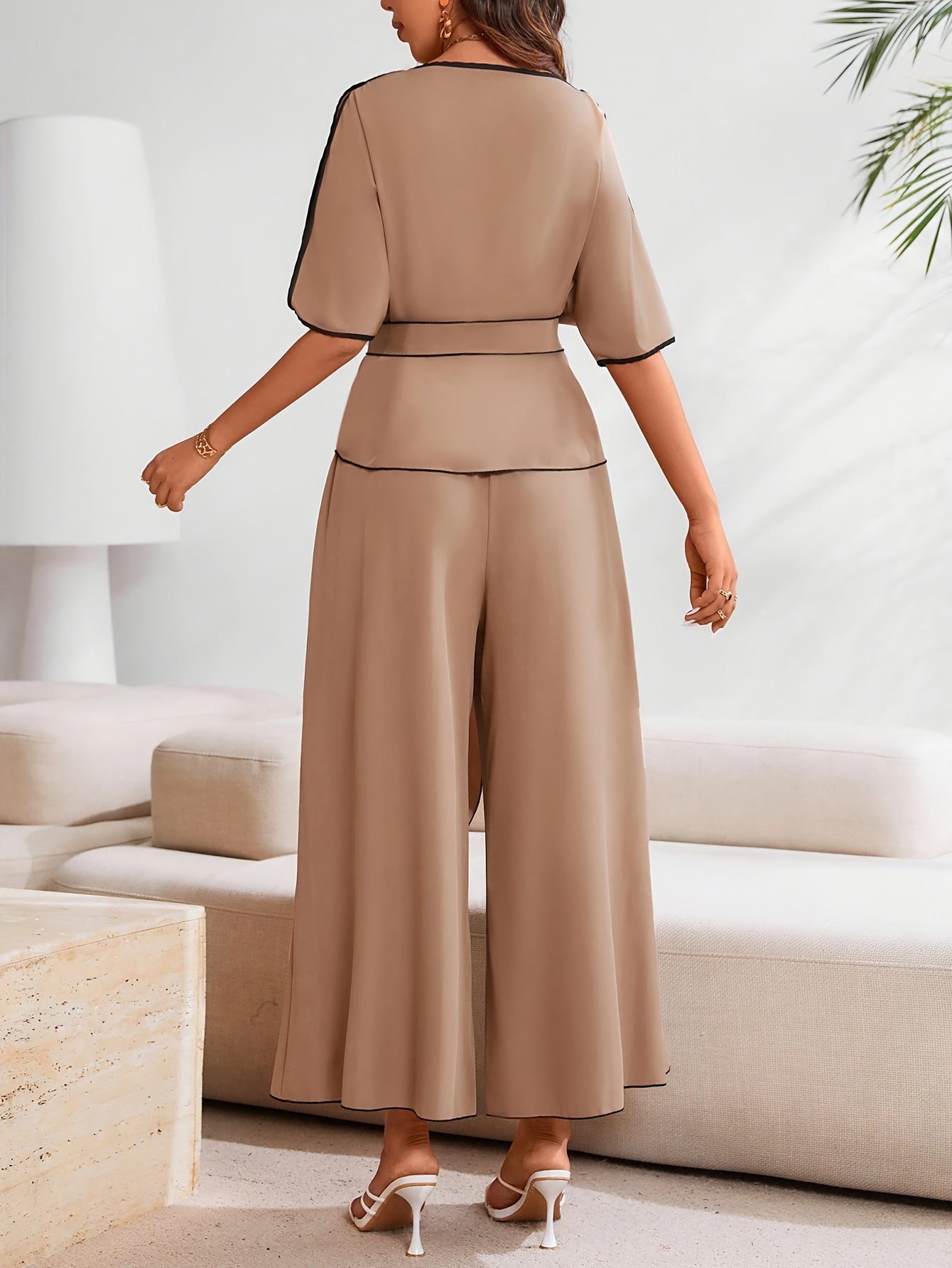 New Stylish and Elegant Solid Color Short-Sleeve Shirt Pants Set for Women