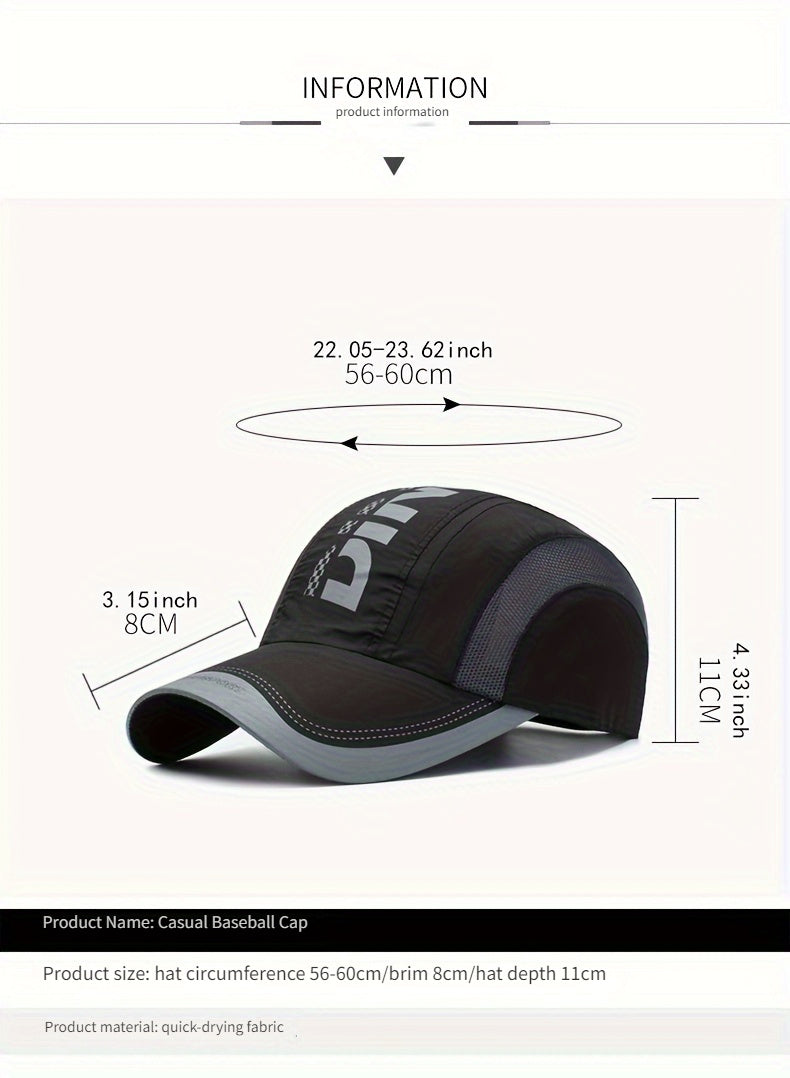 New Summer Quick-Dry Baseball Cap Unisex Youth Fashion Outdoor Sports Sun Protection Breathable Mesh Hat Sunshade Truck Hat