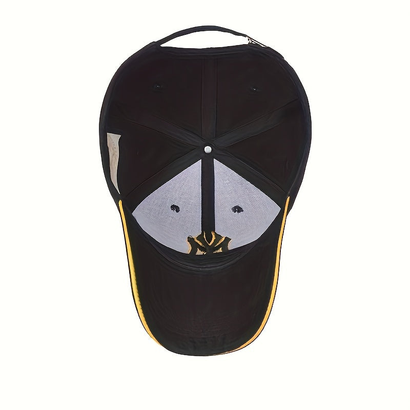 NY Embroidered Baseball Cap - Stylish Black Polyester Hat with Golden "NY" Design, Perfect for Spring & Fall Sports and Casual Wear, Casual Headwear | Embroidered Cap | Polyester Cap