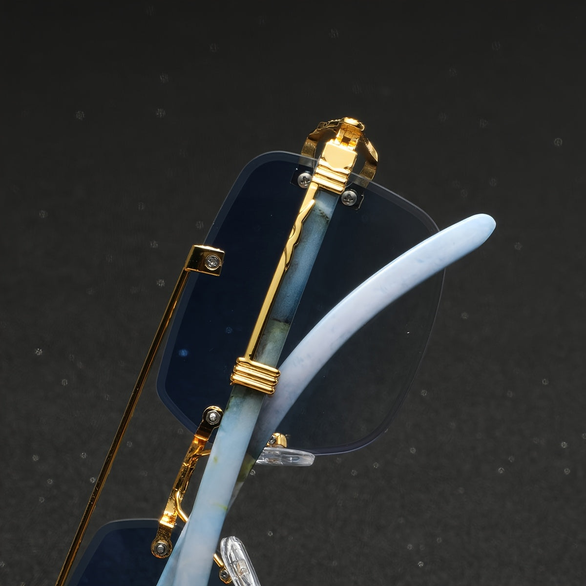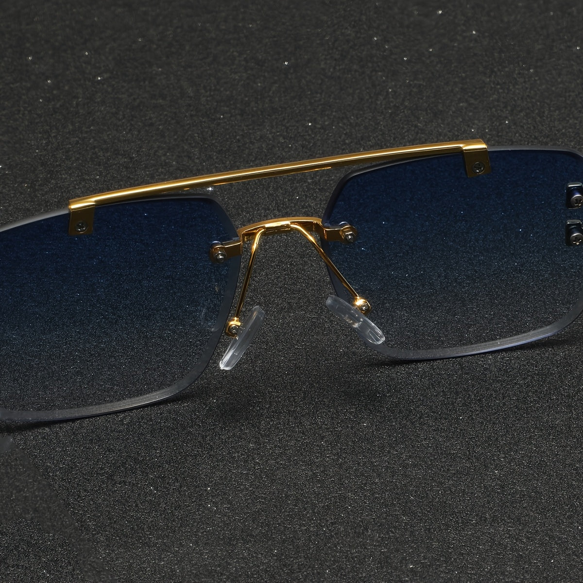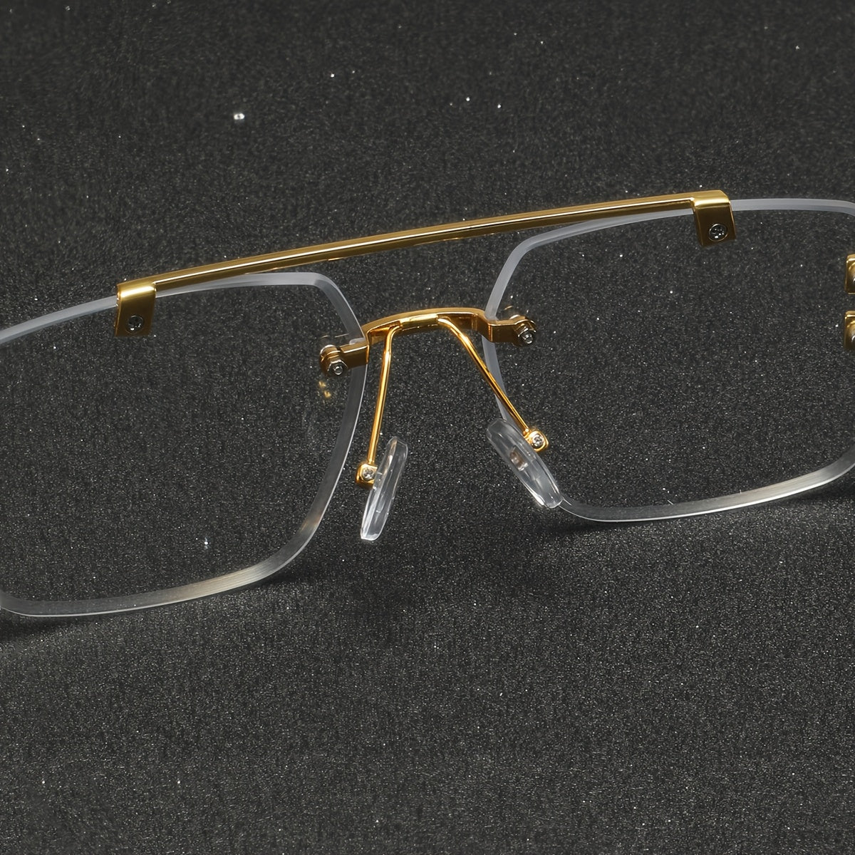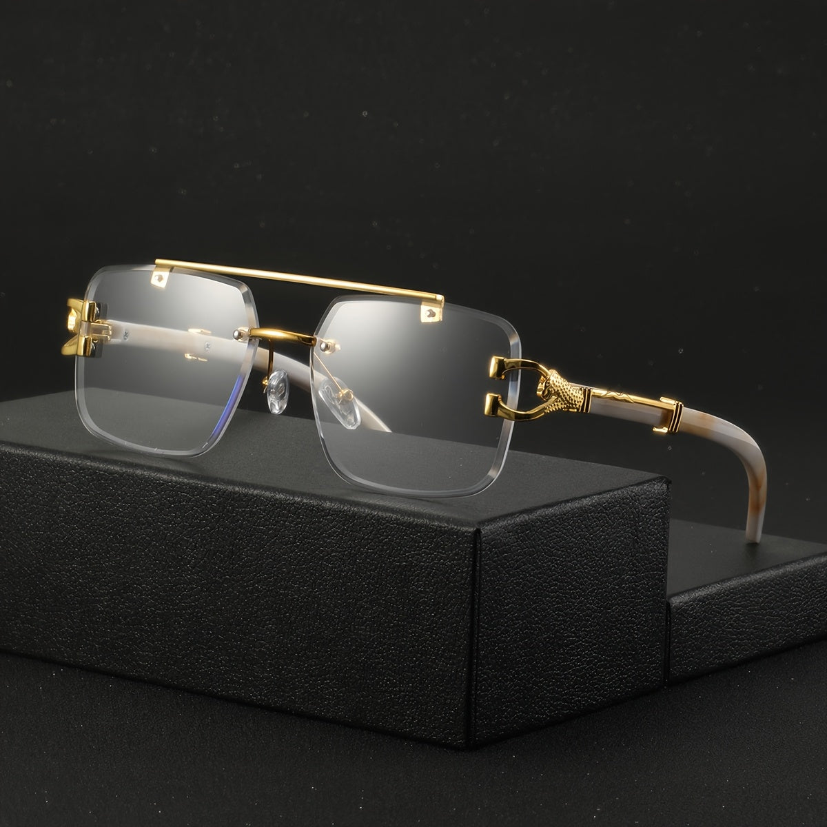 One Pair of Men's Metal Square Frameless Double Bar Vintage High-Quality Exquisite Lightweight Fashion Glasses Suitable for Daily Wear