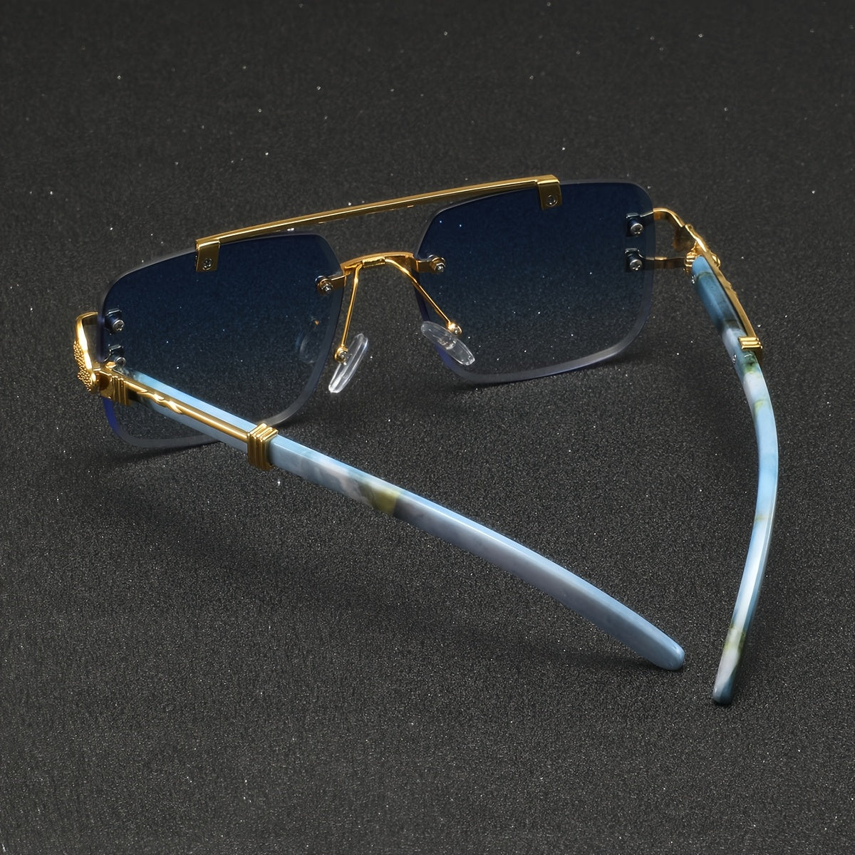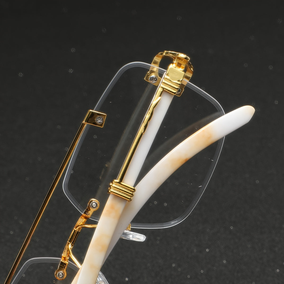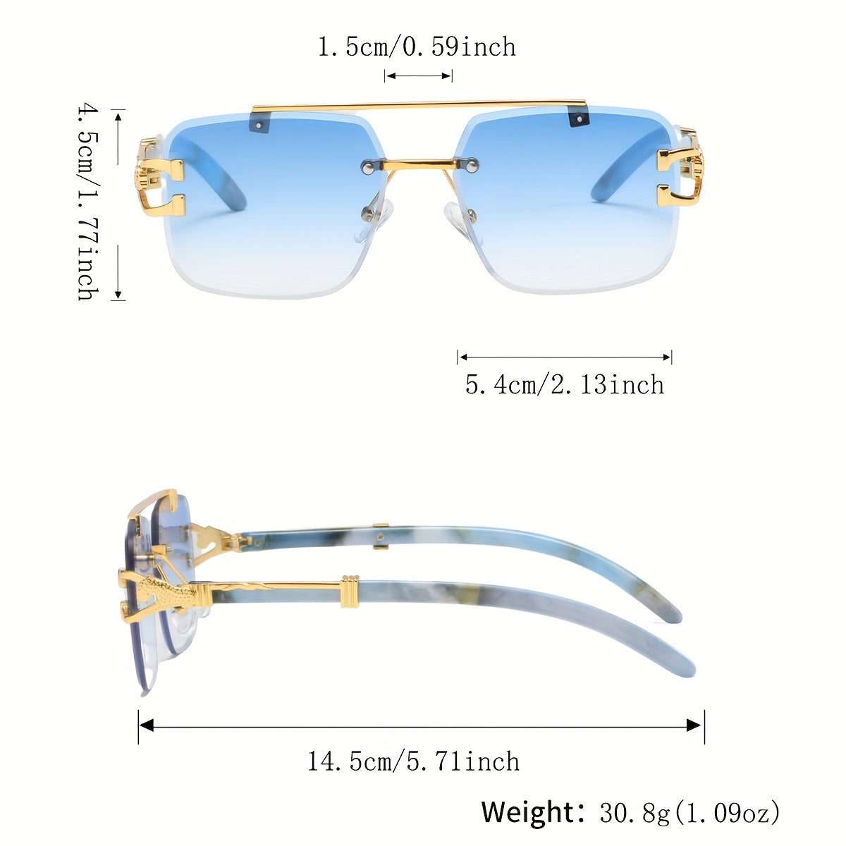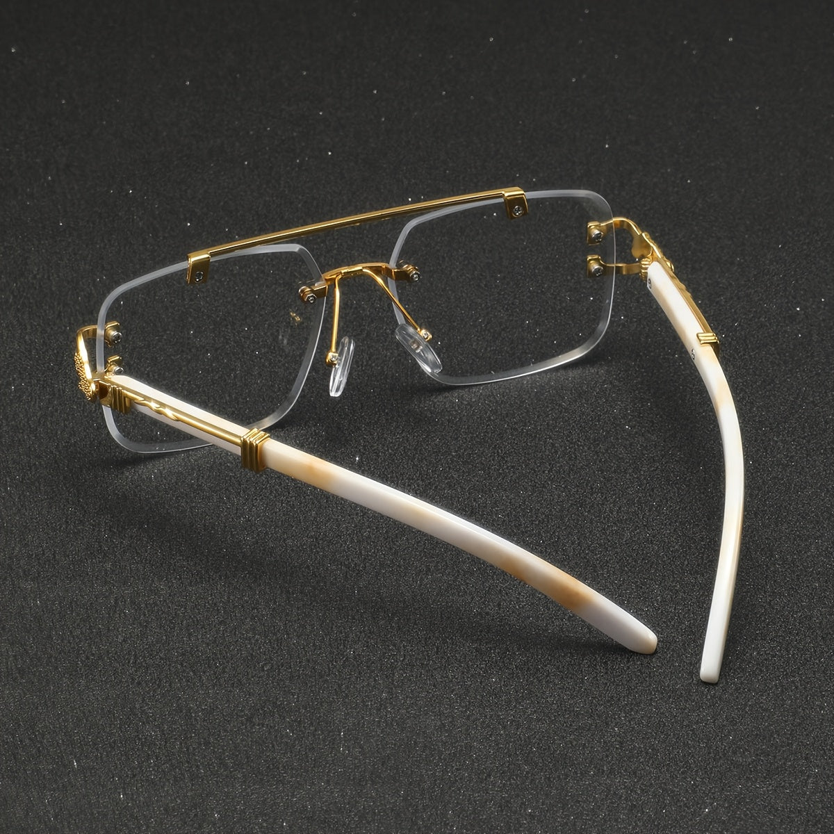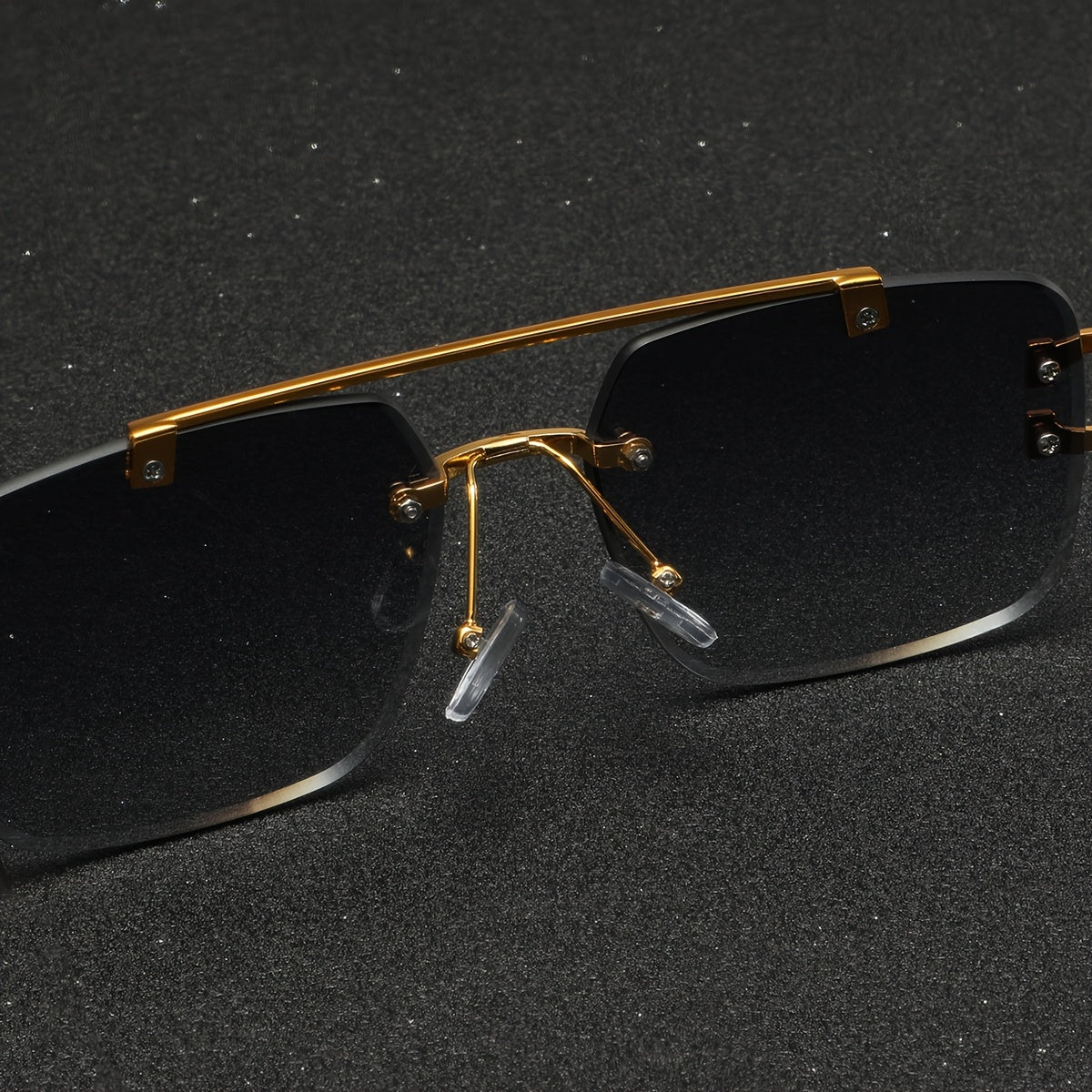 One Pair of Men's Metal Square Frameless Double Bar Vintage High-Quality Exquisite Lightweight Fashion Glasses Suitable for Daily Wear