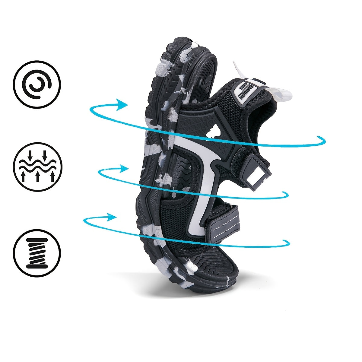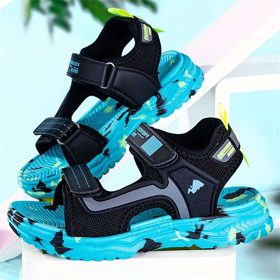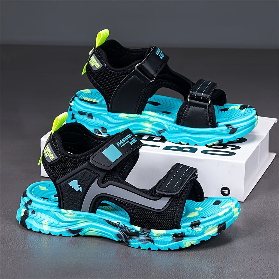 Pair of Boys' Summer Barefoot Sandals with Random Print, Fashionable Buckle Strap Outdoor Beach Sports Sandals Quick-Drying Lightweight EVA Shock Absorption Soles Breathable and Wear-Resistant Casual Sandals