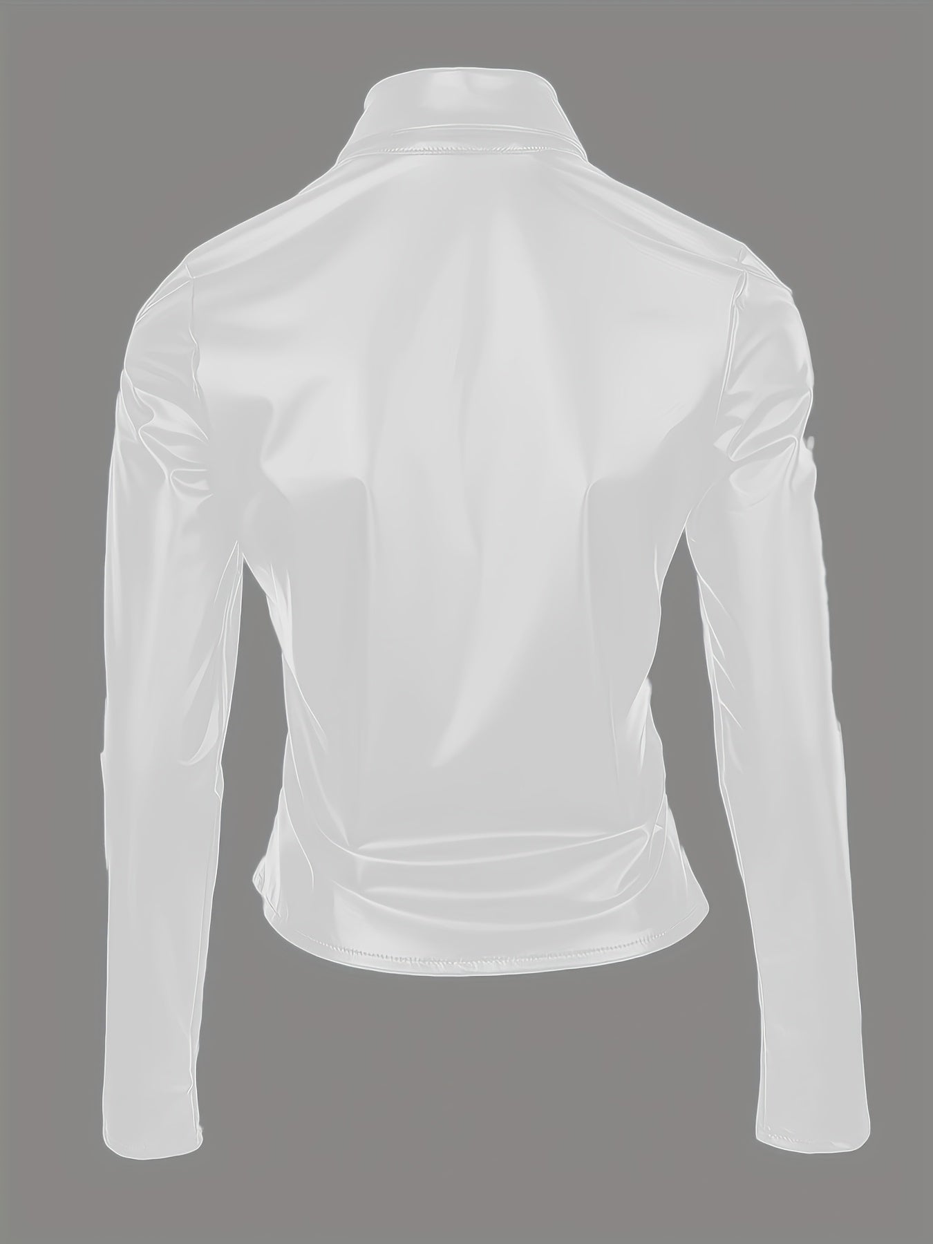 Plus Size, Plus Size Solid Color Studded Blouse, Sexy Slim Fit Button-Up Long Sleeve Top