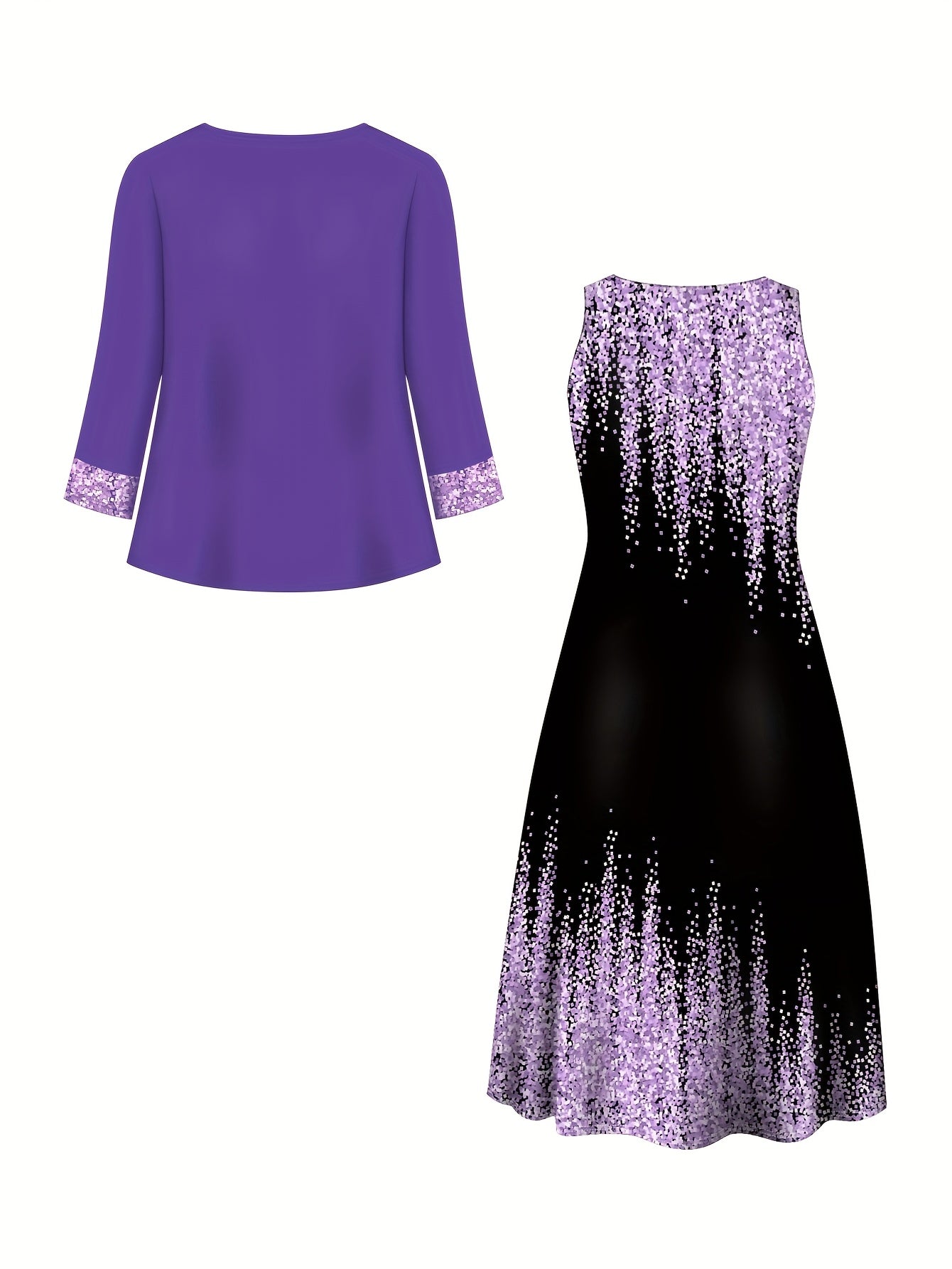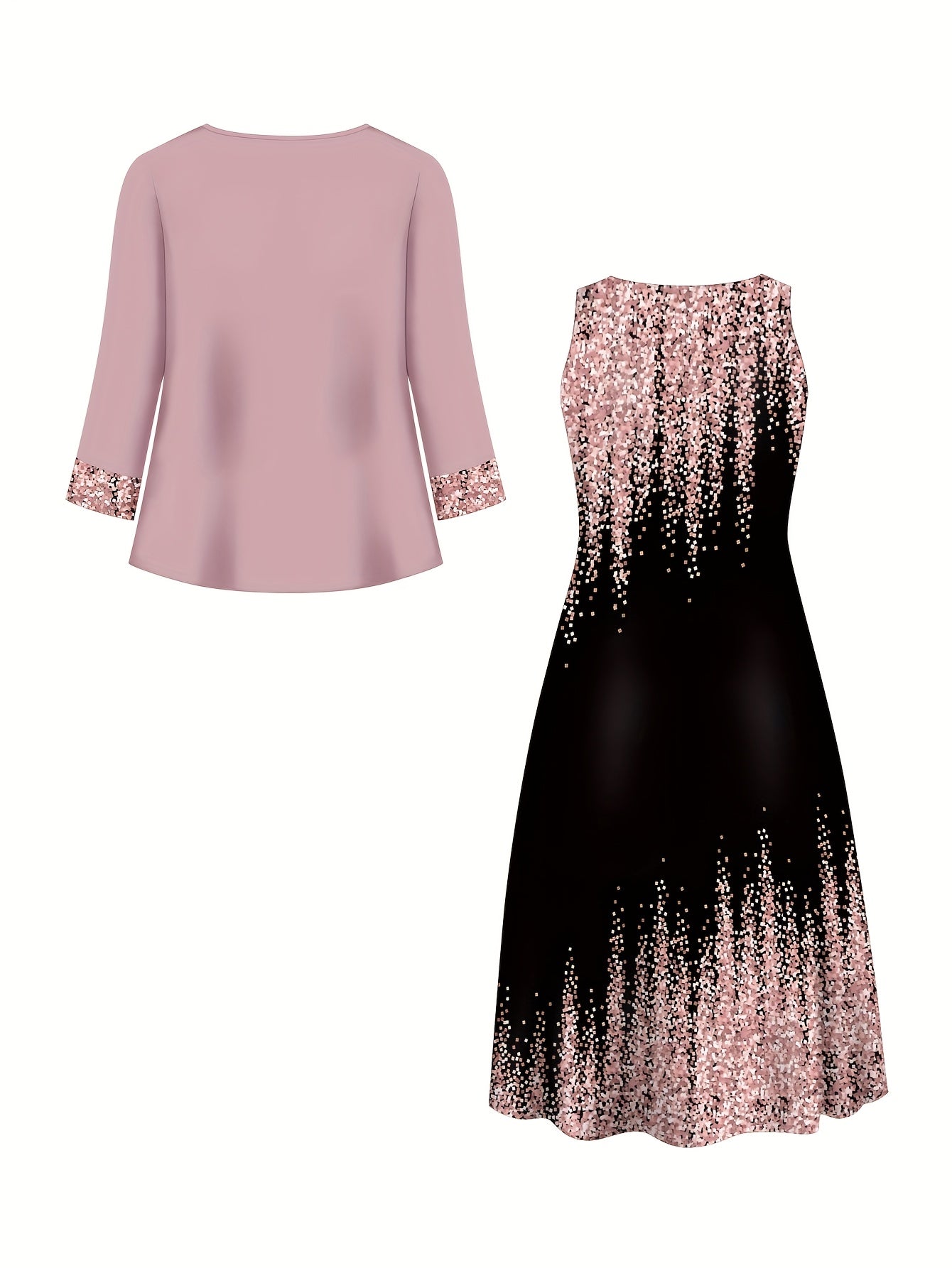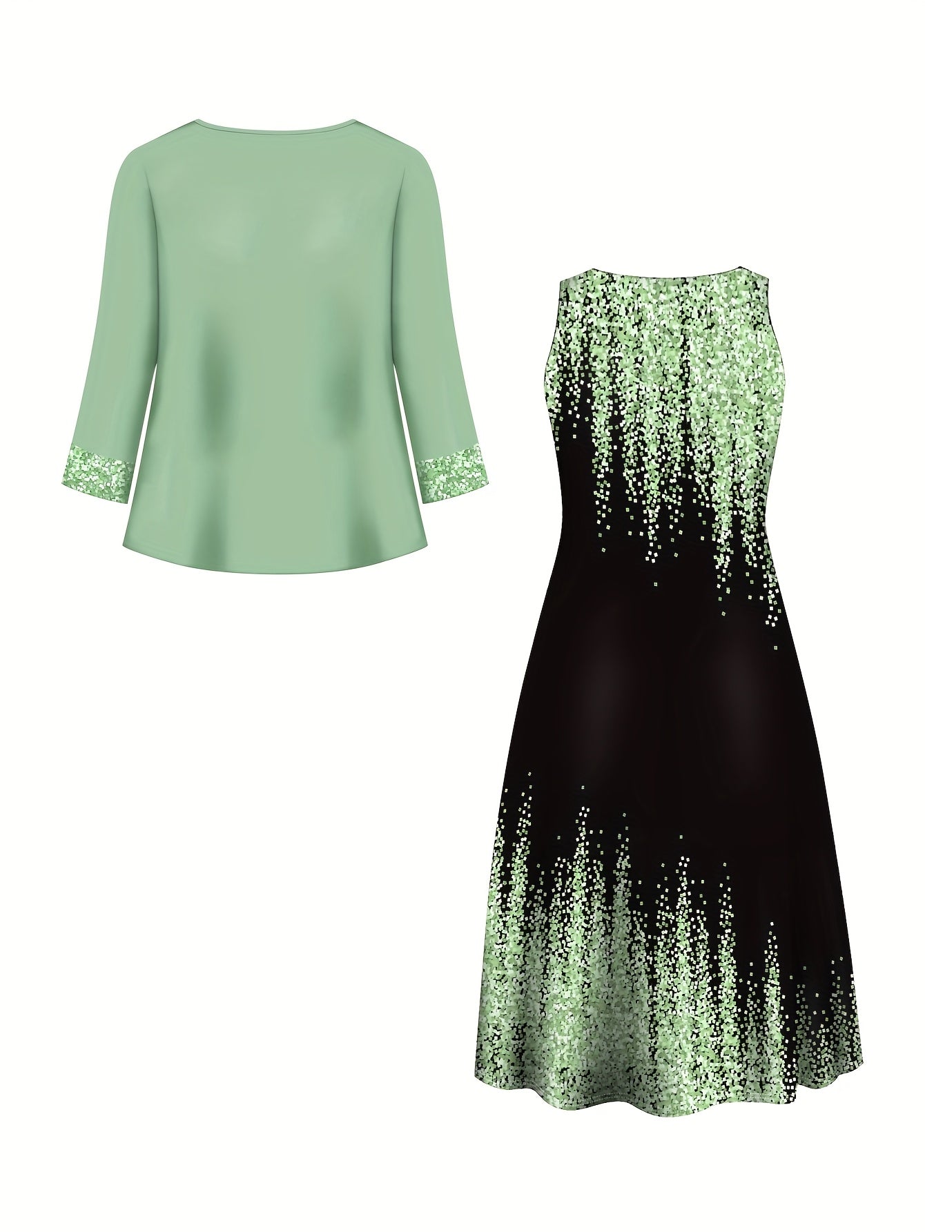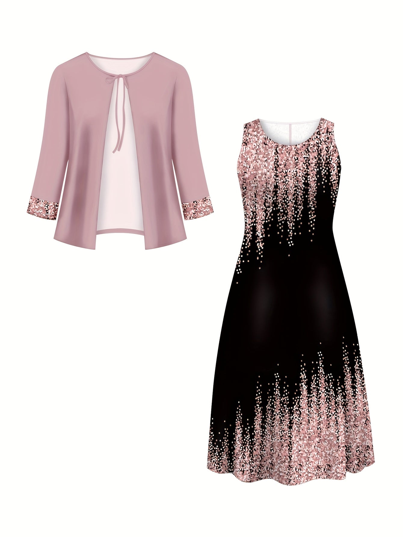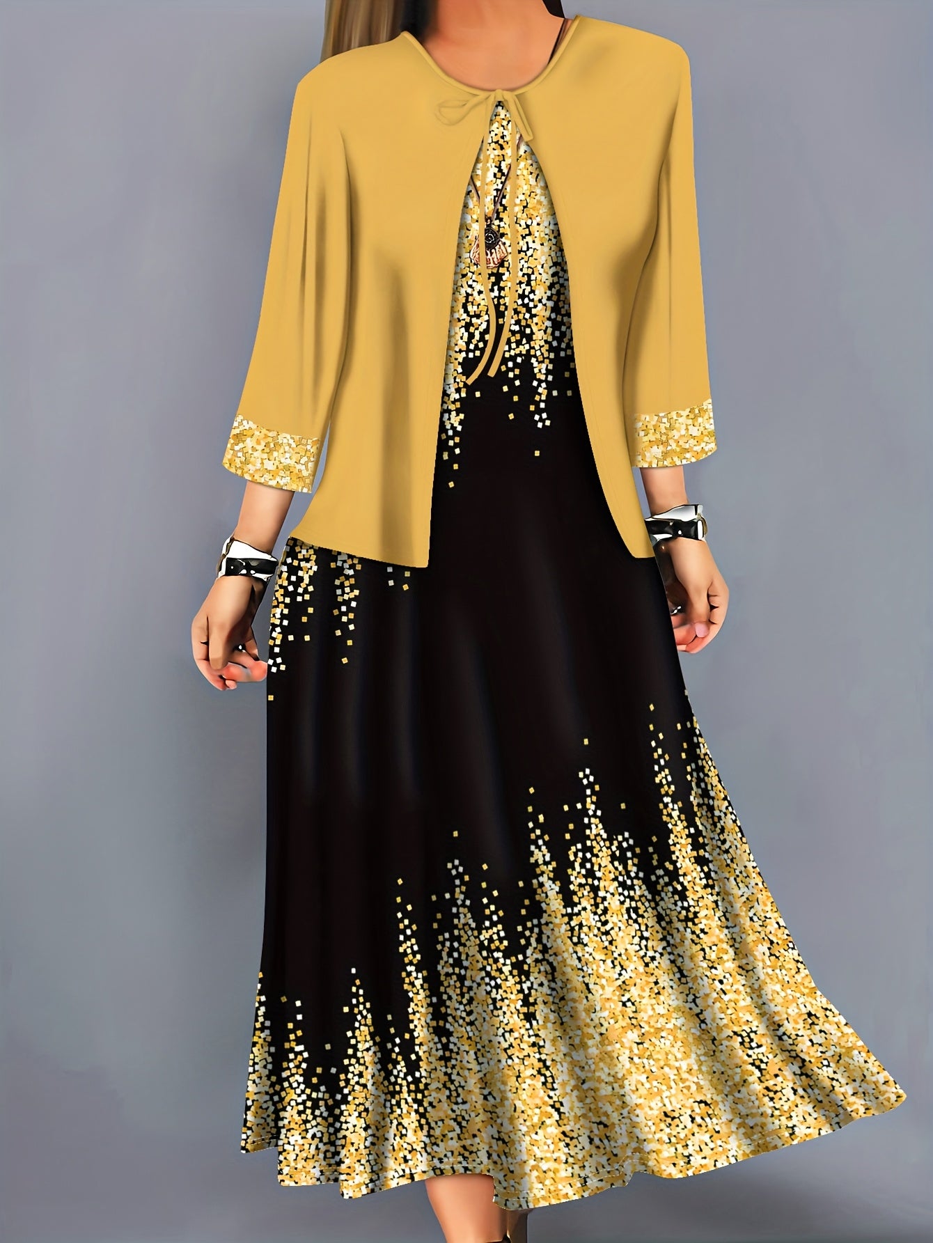 Plus Size, Spring-Summer Elegant Plus Size Floral Print Fashion Vacation Wrap Vest Long Dress Women's Set Without Accessories
