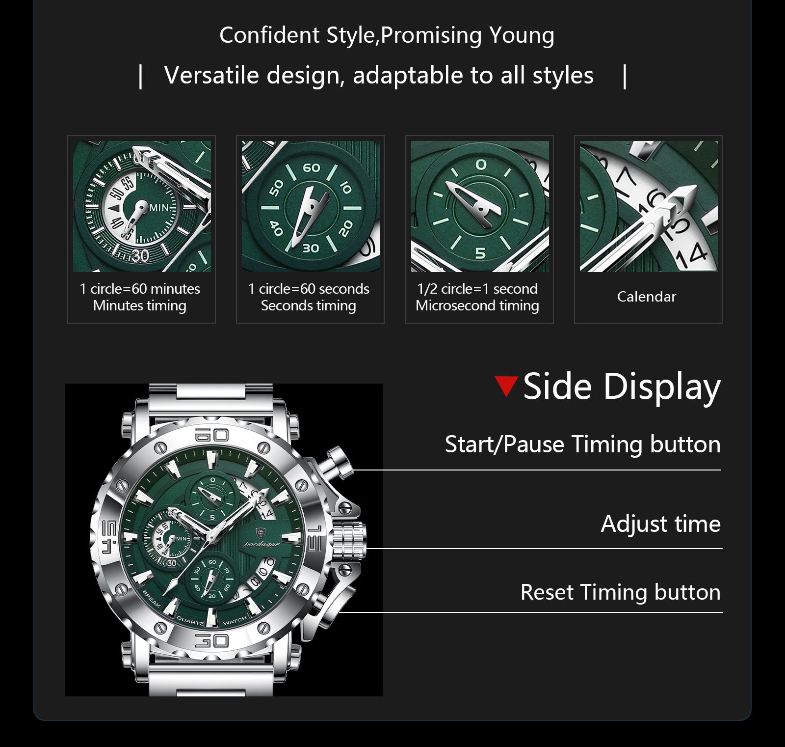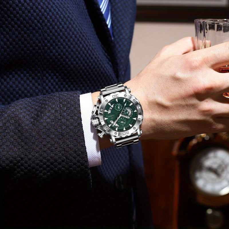 POEDAGAR Luxury Business Calendar Multi functional Waterproof Sports Men's Quartz Watch, Sports Wristwatch, Business Timepiece, Elegant Watch, Sleek Design, Precision Movement, Durable Construction, Wristwatch for Men, Quartz