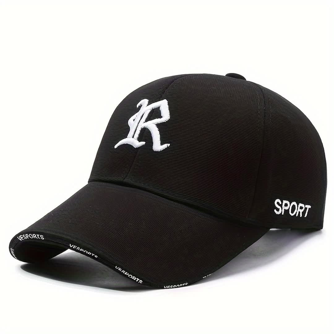"R" Embroidered Baseball Cap - Sleek Black Dad Hat with Curved Brim, Comfortable & Breathable, Ideal for Outdoor Activities, One Size Fits All