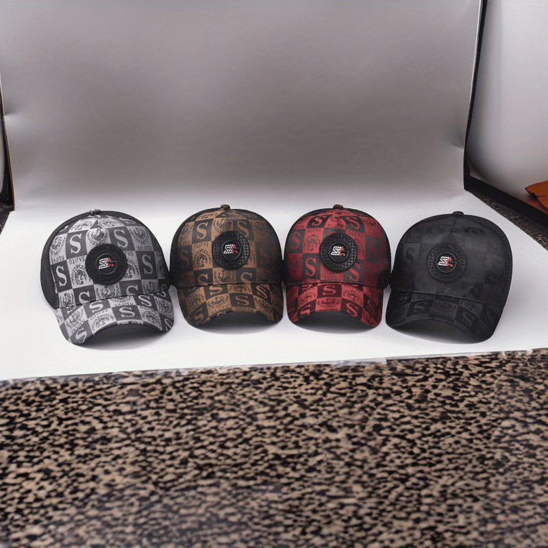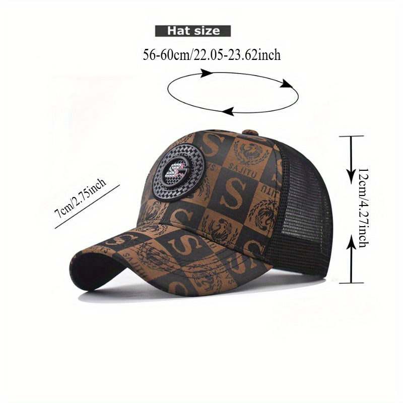 Retro Patchwork Embroidered Letter S Baseball Cap - Breathable Mesh Sun Hat for Men & Women, Checkered Duckbill Design, Summer Outdoor Fashion Hat with Wide Brim, Patches for Hats