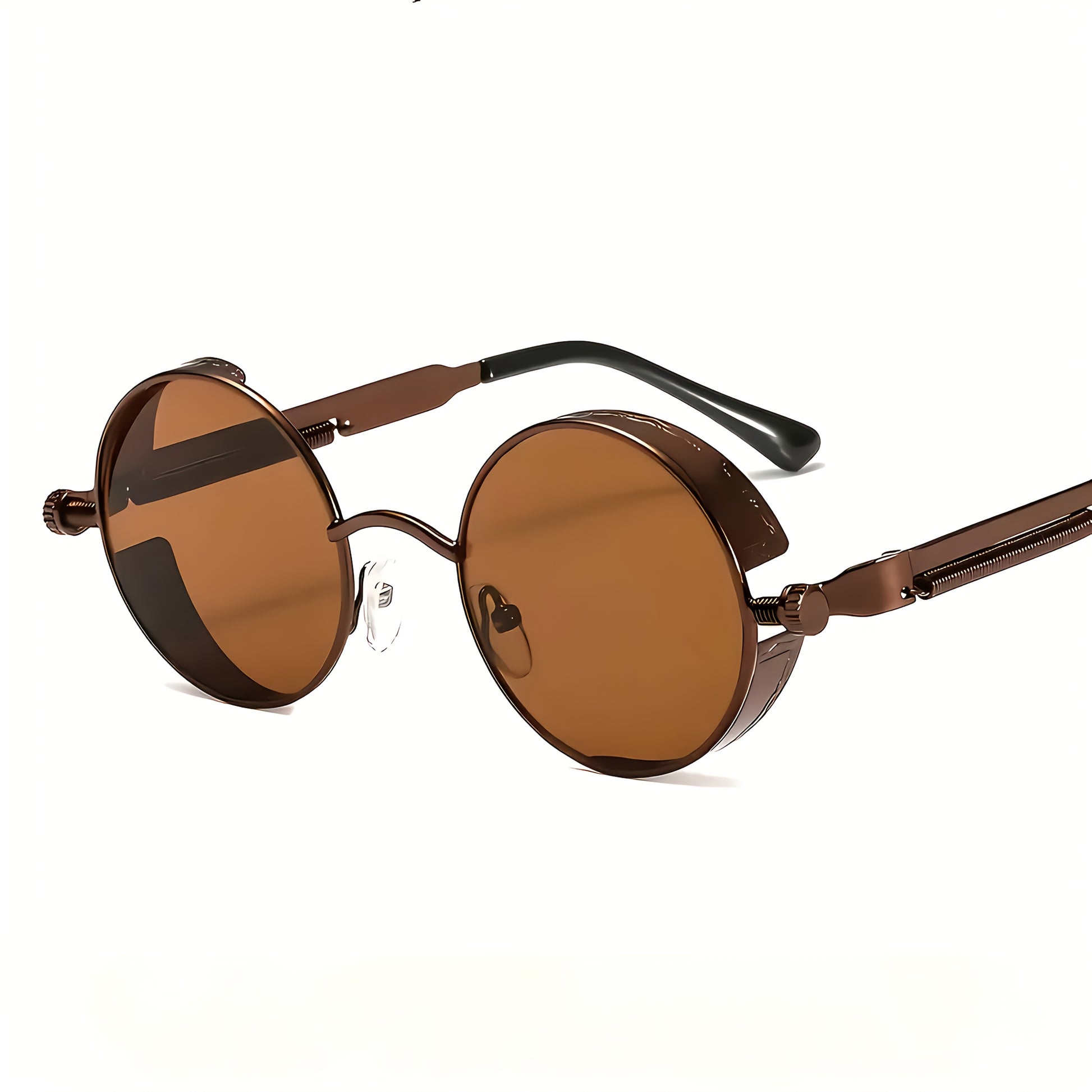 Retro Round Metal Frame Fashion Glasses with Spring Leg Design - Stylish Unisex Fashion Accessory for Men & Women, Brown Tinted Lenses, Perfect for Casual Outfits, Retro Glasses