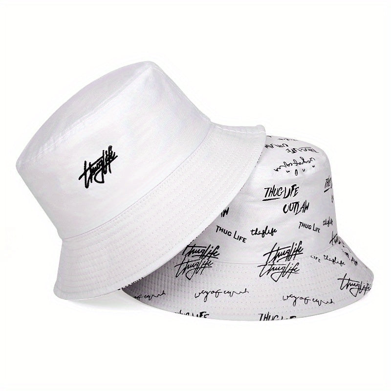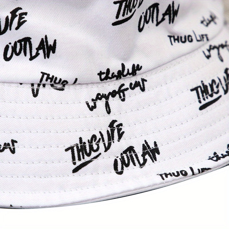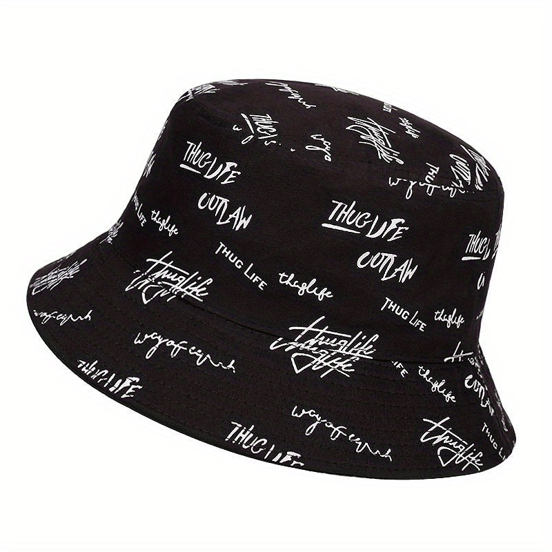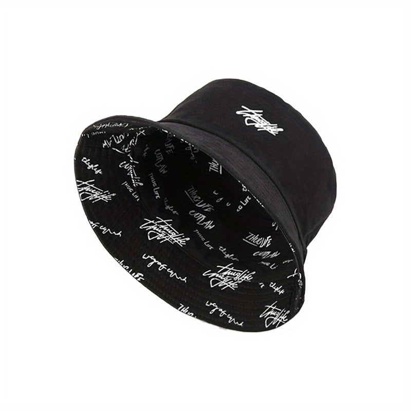Reversible Men's Bucket Hat with Letter Print - Funky Style, Sun Protection & Versatile for Outdoor Activities, Foldable Sun Hat