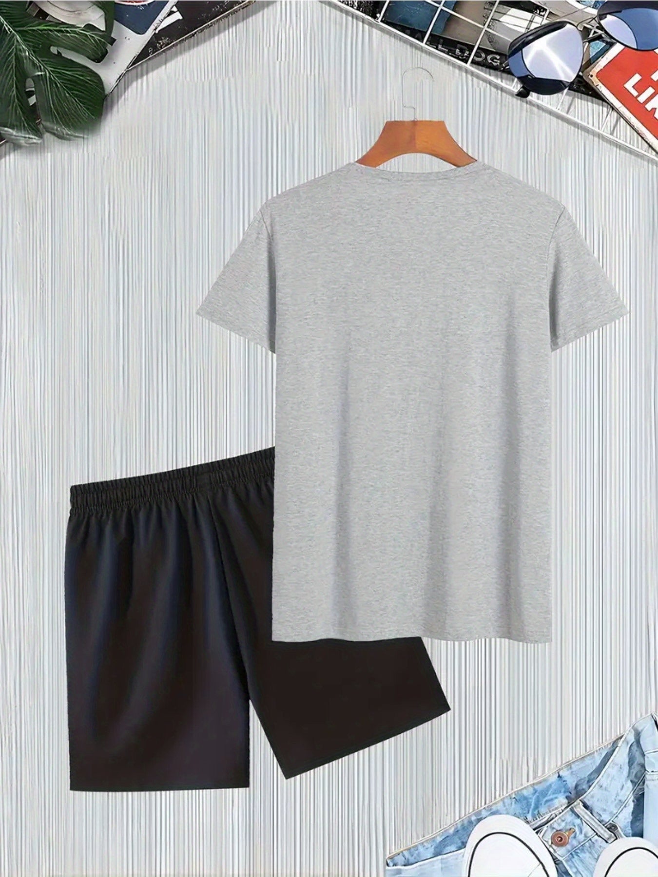 Ronaldo 7 Print Men'S Short Sleeve T-Shirt and Waistband Shorts 2pcs Casual Sports Regular Top & Bottom Set, Suitable for Spring/Summer