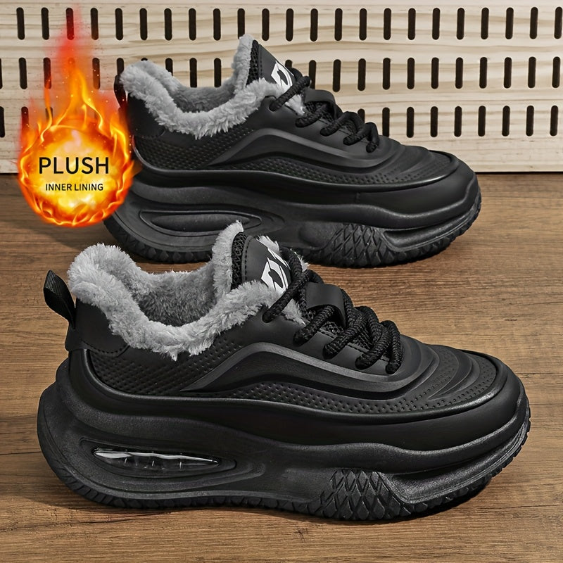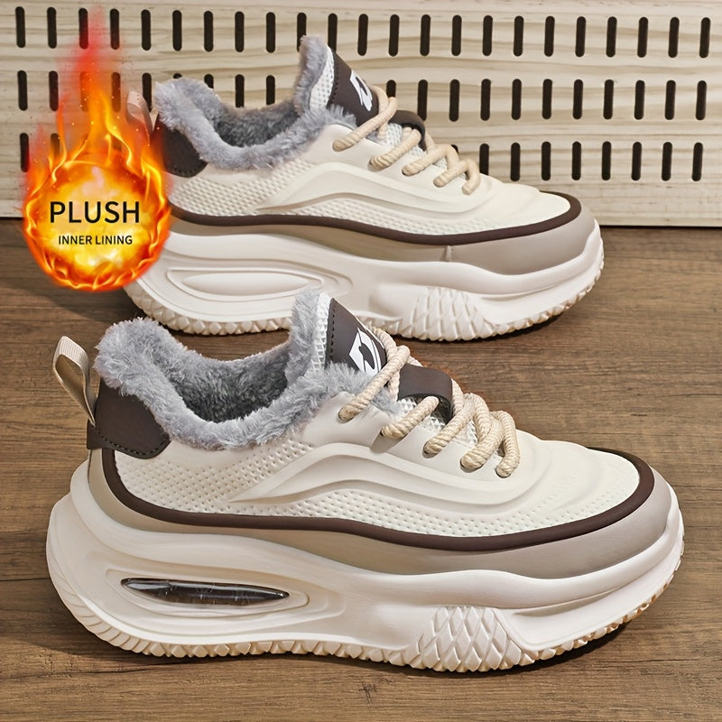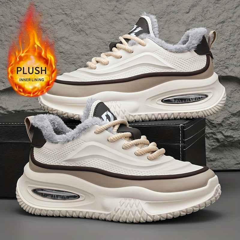 's Winter Snow Traction Shoes with -Like Collar - -Skid Low-Top, PU Upper & PVC Sole - Red/Navy/Beige/White Colorway for Ice Skating, Snow Walking, Casual Winter Wear (Warm Lace-Up Sneakers)