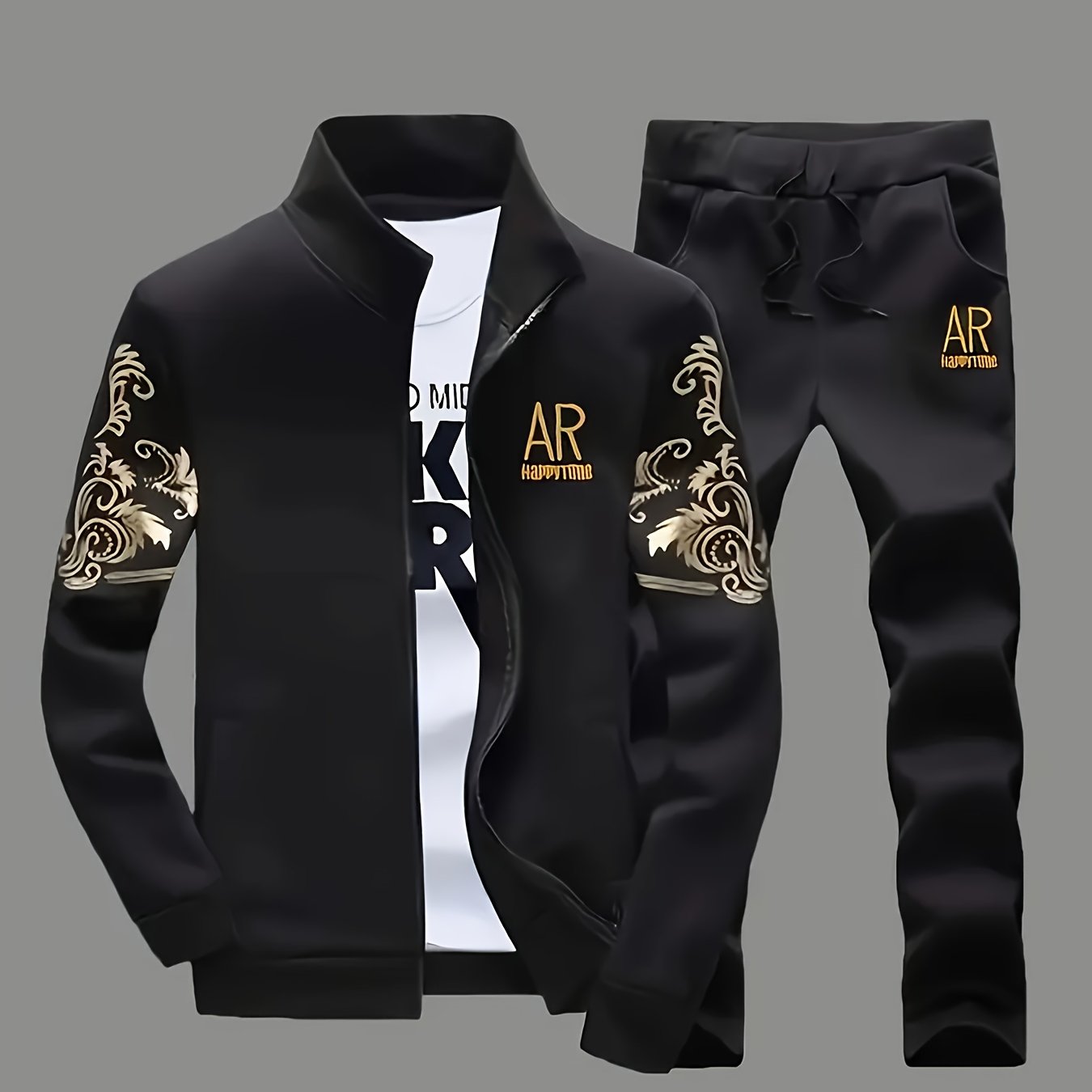 Spring and Autumn Style Men's Zip-Up Cardigan Sportswear Set