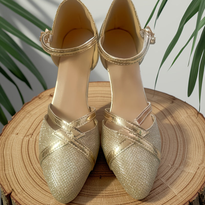 Spring and Summer Fashionable Women's High Heels, Comfortable Thick-Heeled Buckle Sandals, Golden and Silvery Wedding Party High Heels