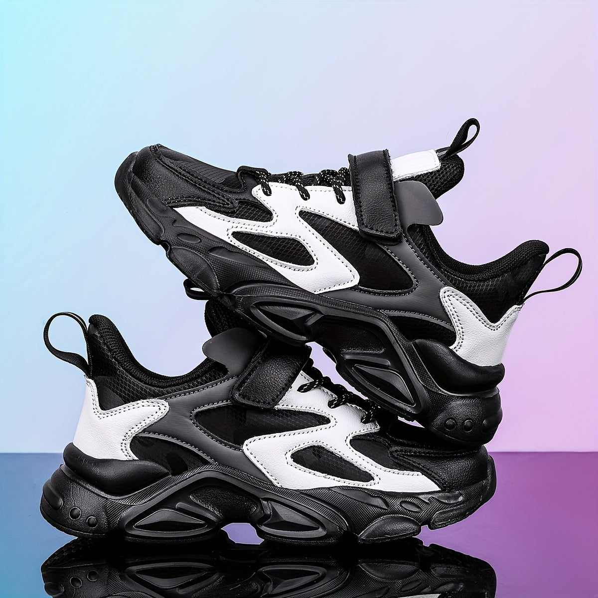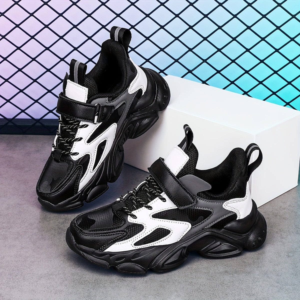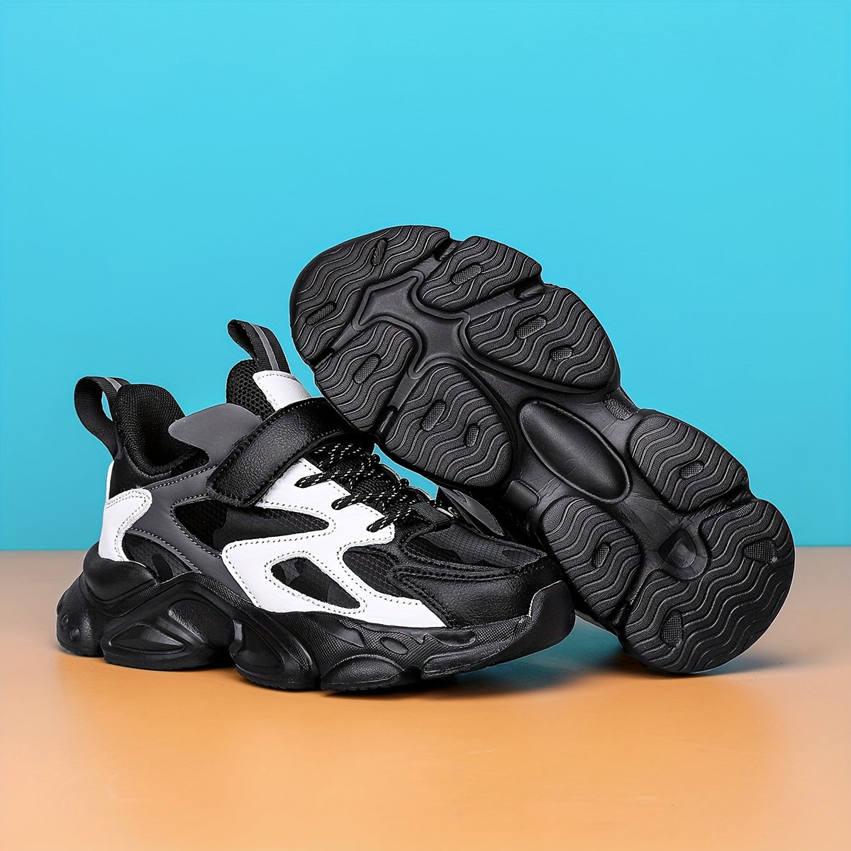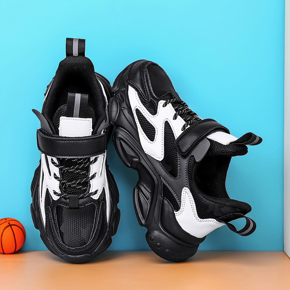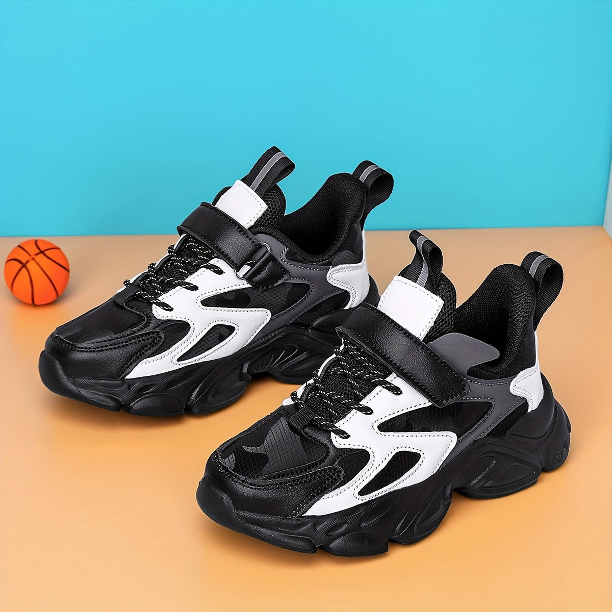 SQ8211 Boys' Casual Sneakers with Closure, Lightweight EVA Sole & Breathable PU Upper - Black/White Striped Low-Top Design for Spring/Fall/Winter, Durable Comfortable Shoes for Active Play & Casual Attire, Kids Sporty Footwea