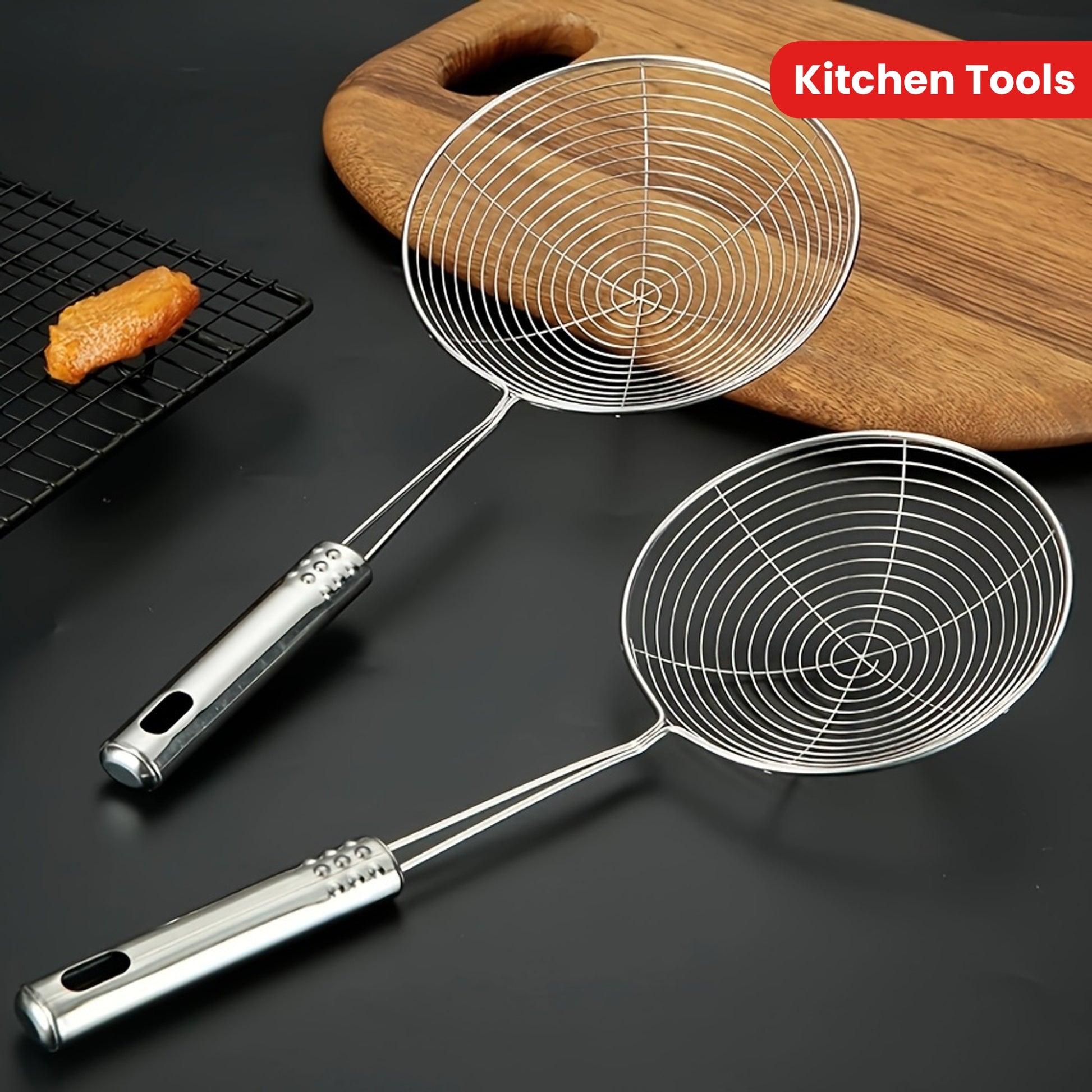 Stainless Steel Strainer Ladle with Handle - Durable Wire Skimmer Spoon for Cooking, Frying & Kitchen Use