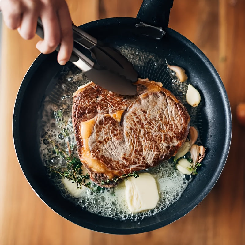 Sturdy Kitchen Tongs Made of Stainless Steel with Silicone Ends - Resistant to Heat, Equipped with a Locking Feature for a Secure Grip, Offered in Lengths of 17.78 cm, 22.86 cm, And 30.48 cm, in Black.