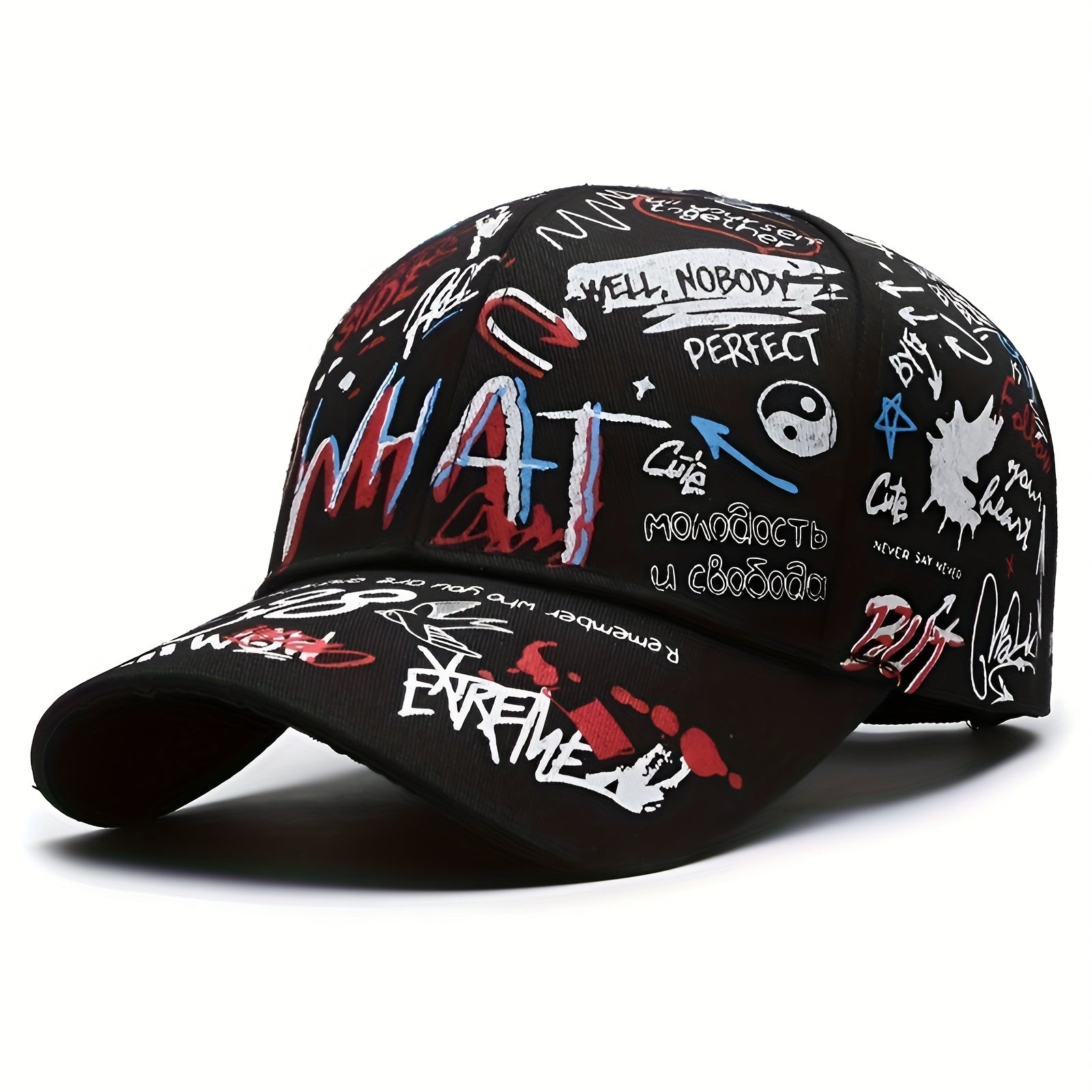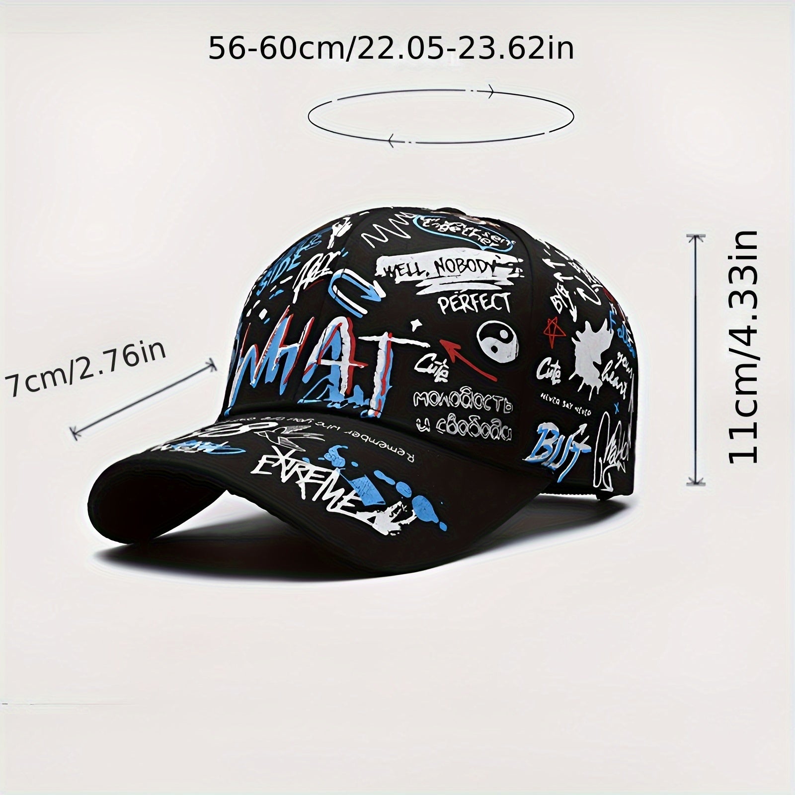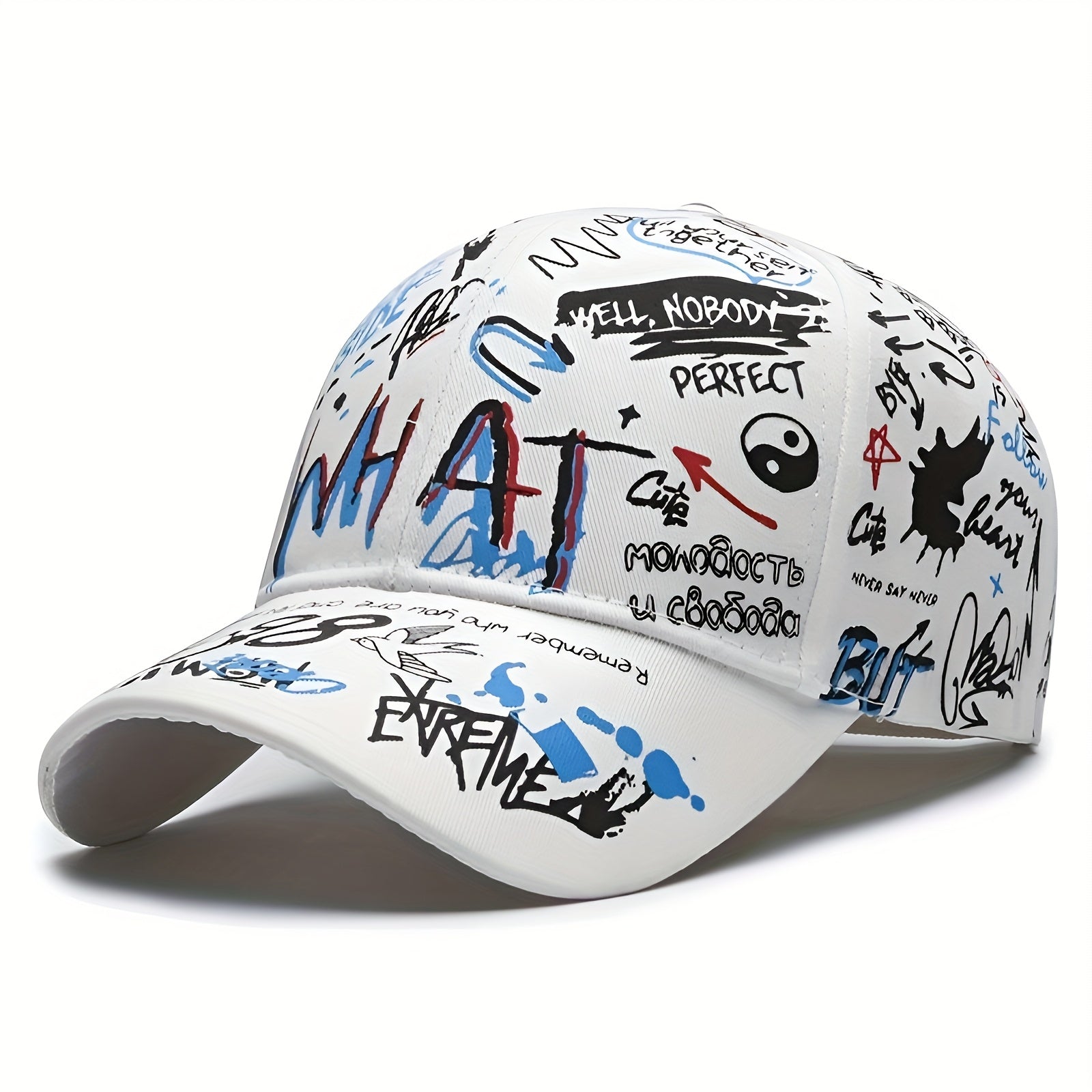 Stylish baseball cap with cool graffiti letter print, hard top, trendy hip-hop design, versatile sun protection hat for both European and American styles, available in 4 colors