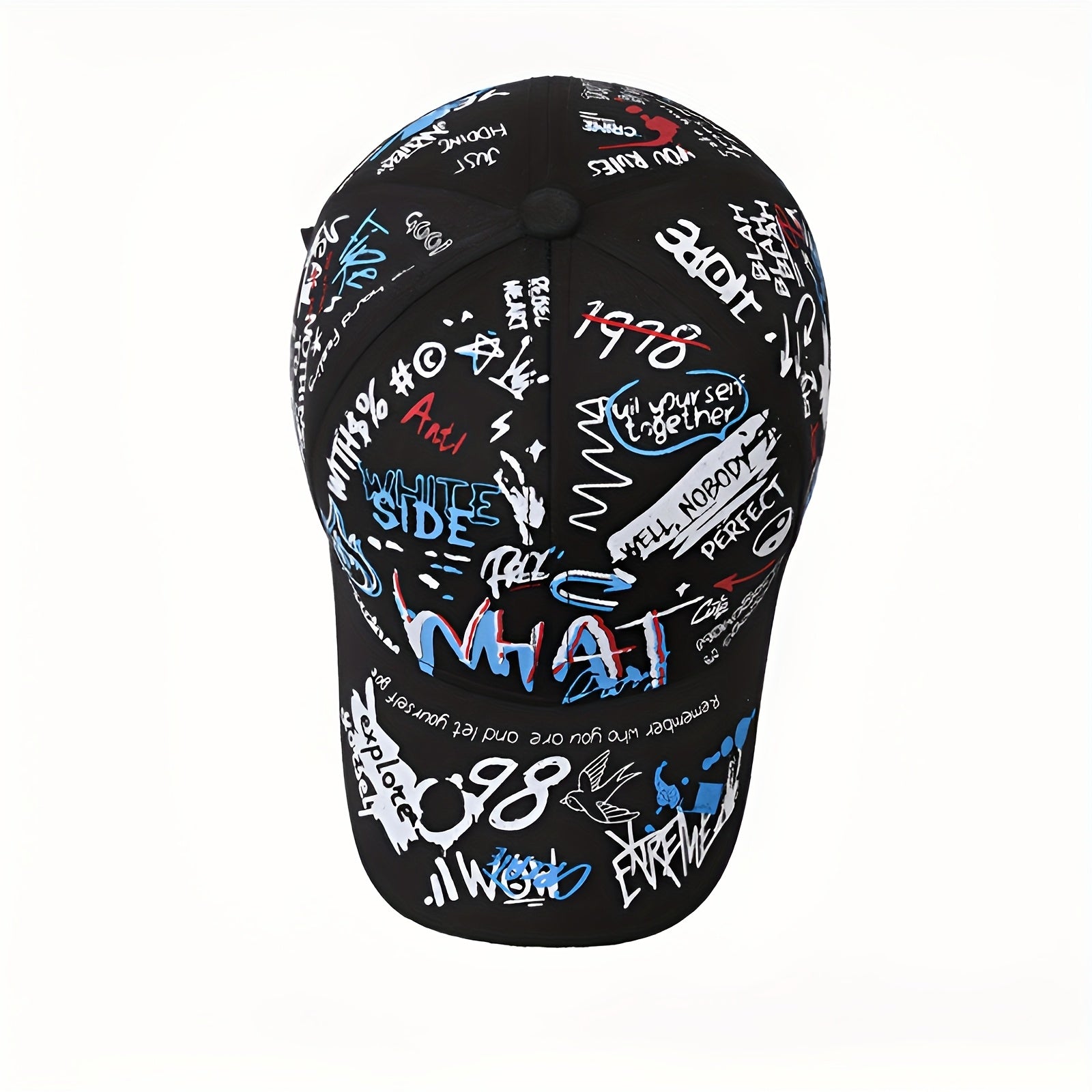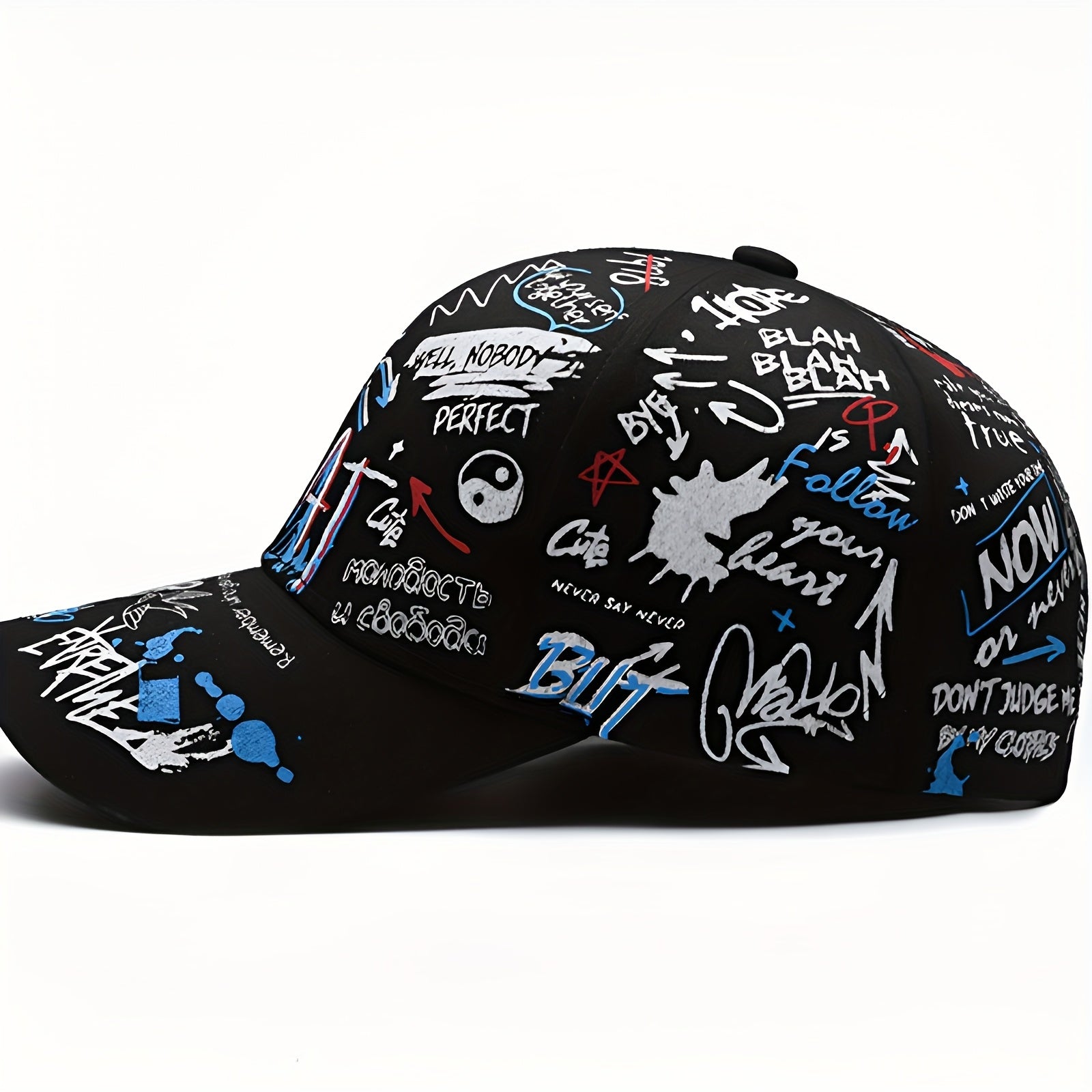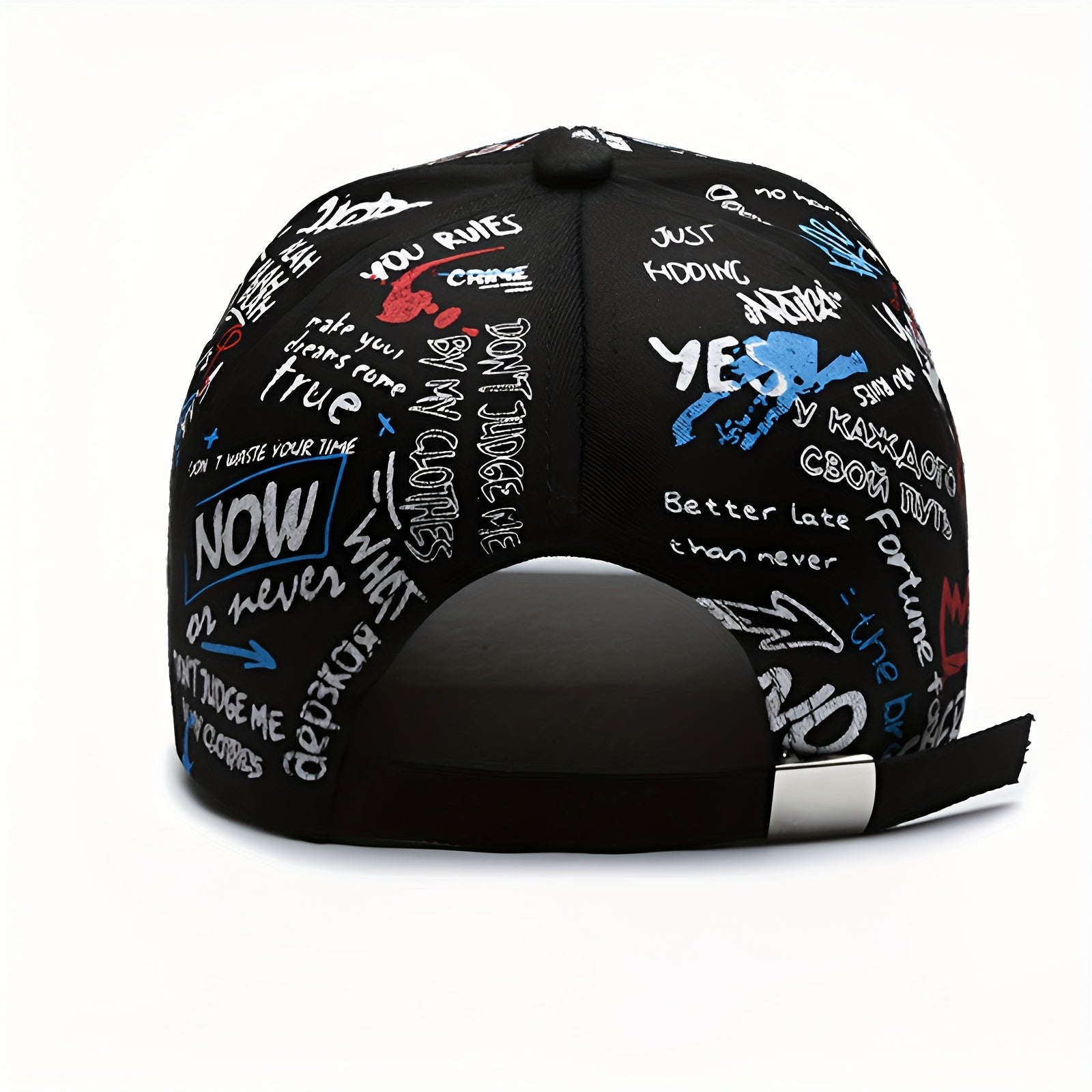 Stylish baseball cap with cool graffiti letter print, hard top, trendy hip-hop design, versatile sun protection hat for both European and American styles, available in 4 colors