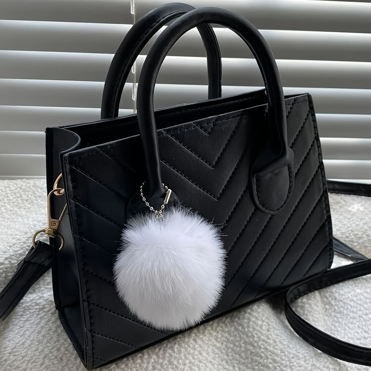 Stylish Blue Square Bag with a Chevron Design And a Bag Charm