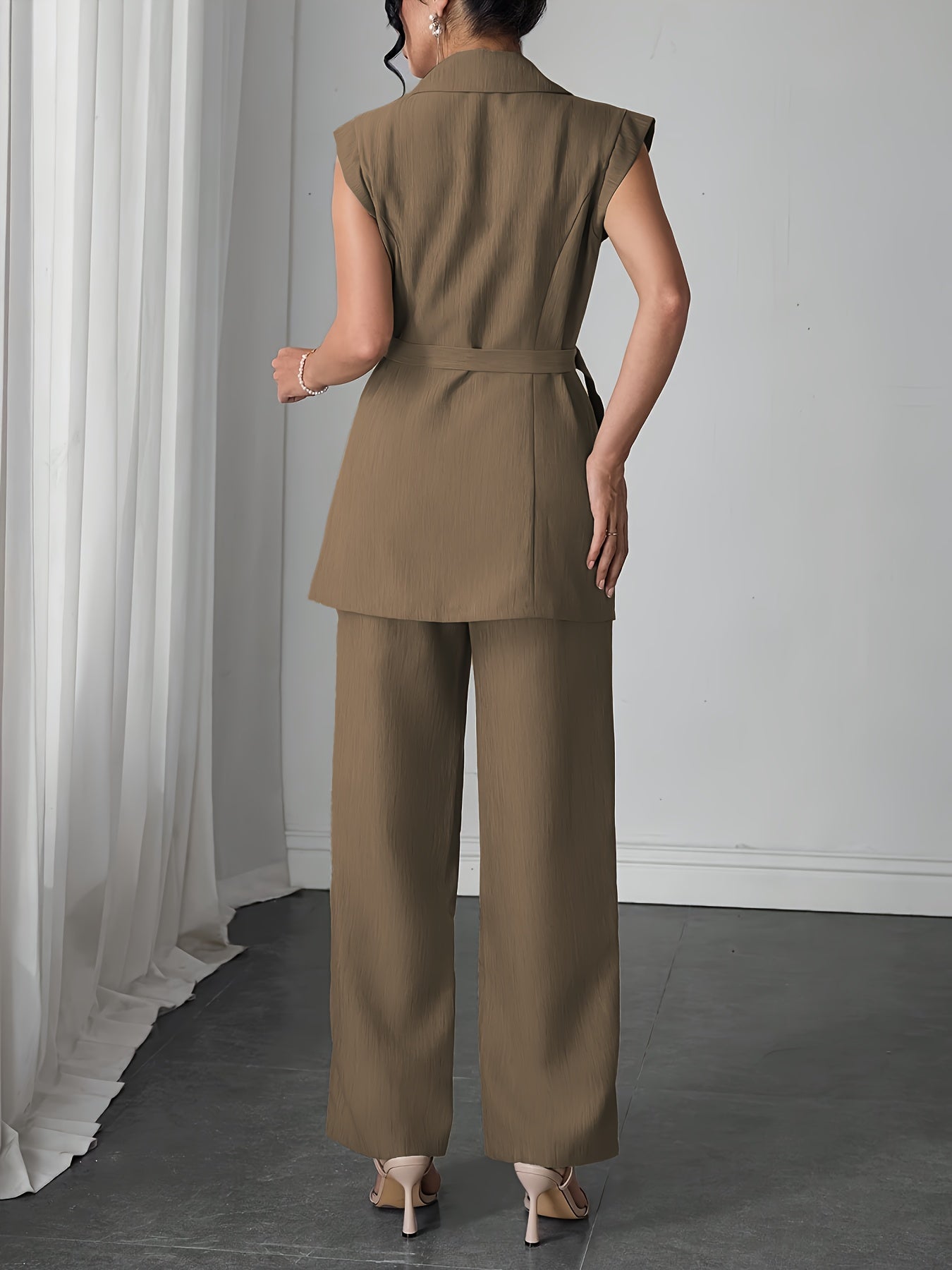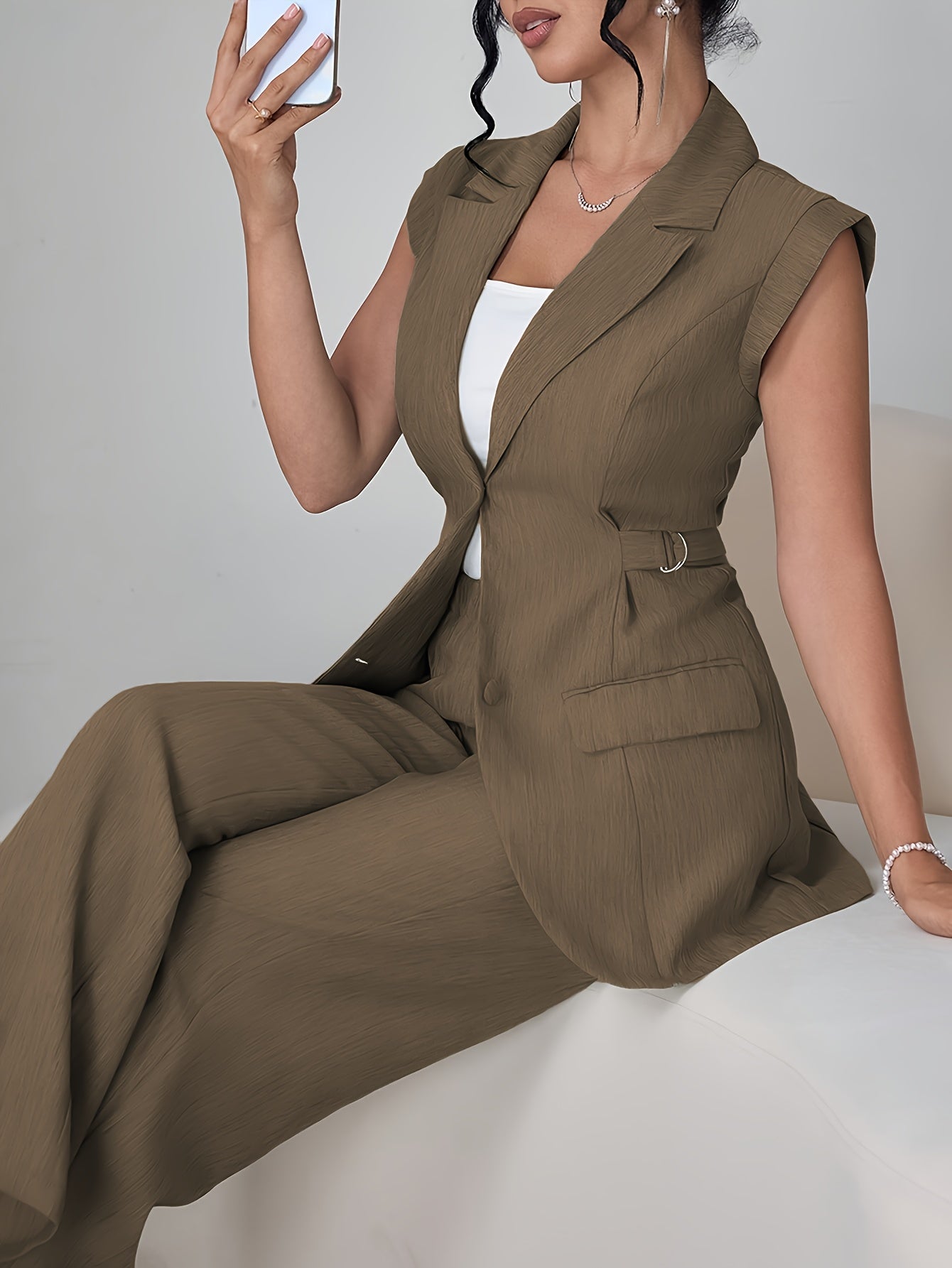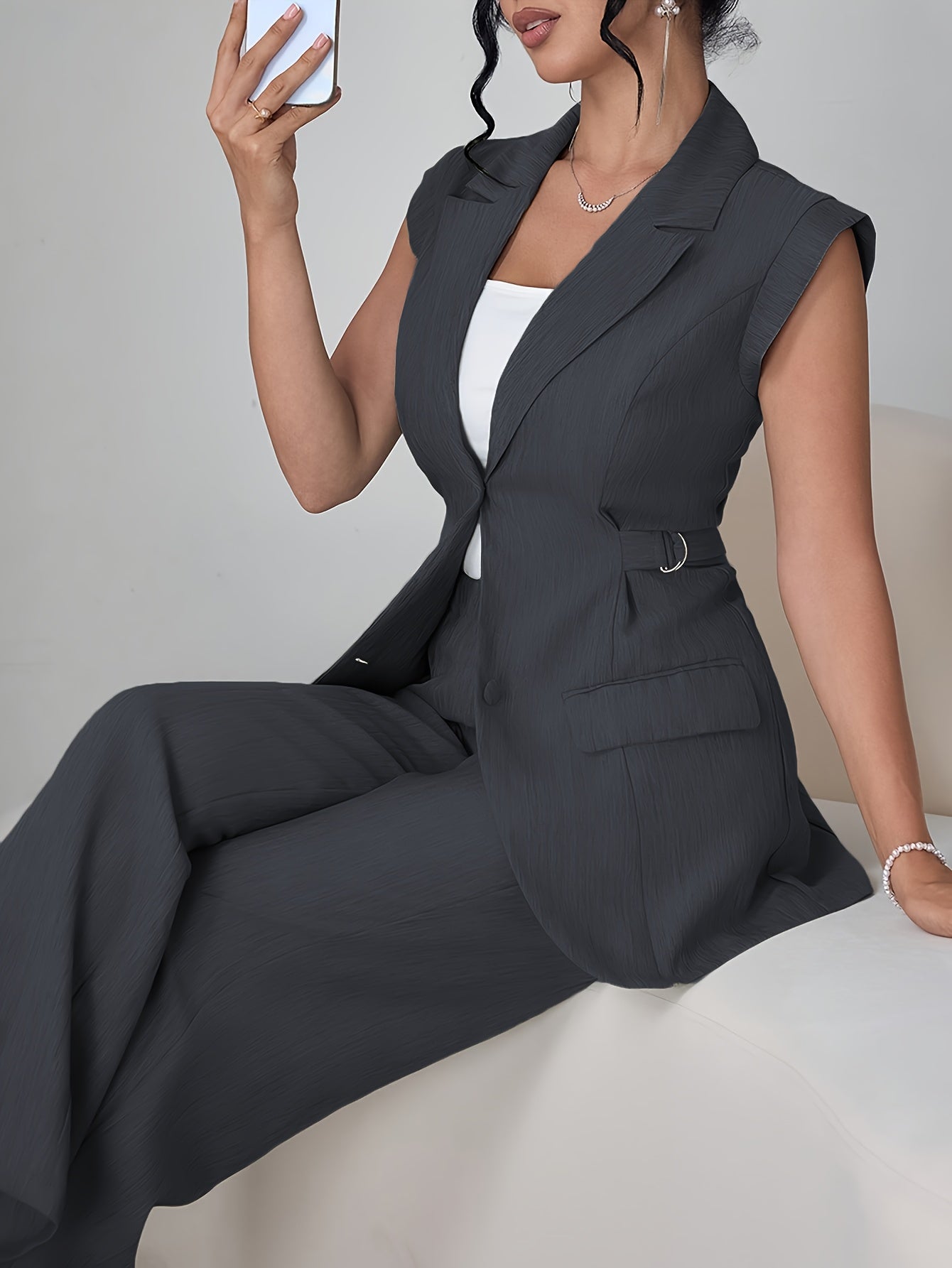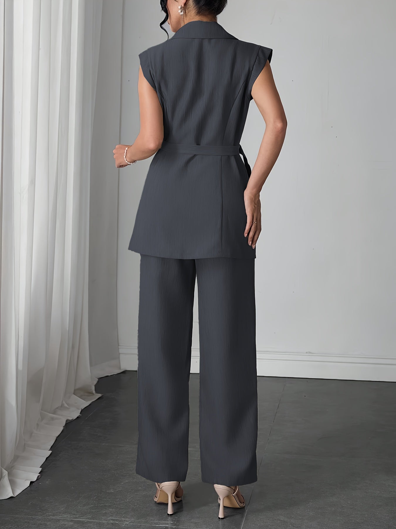 Stylish Women'S Elegant Modern Two-Piece Set with Side-Waist Design, Solid Color Sleeveless Jacket and Pants for Spring/Summer