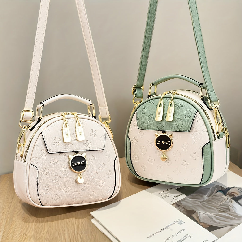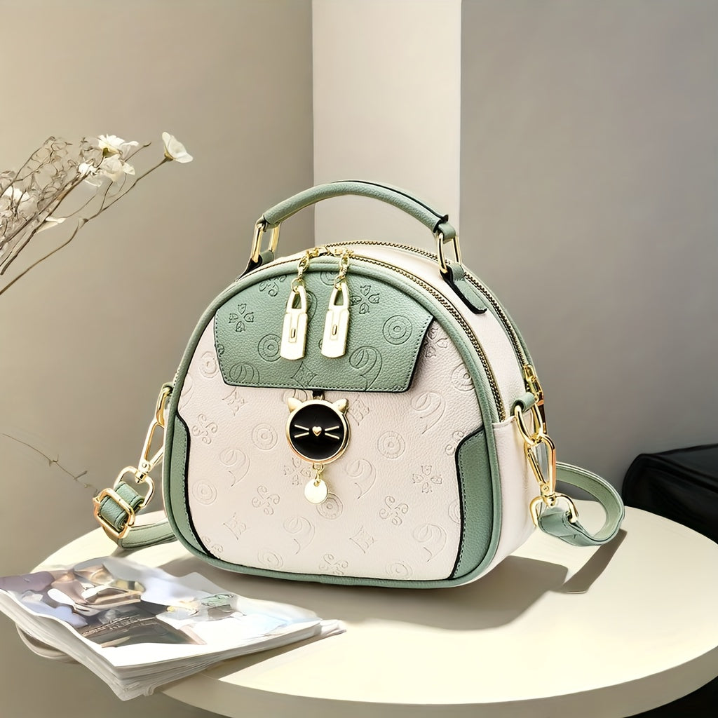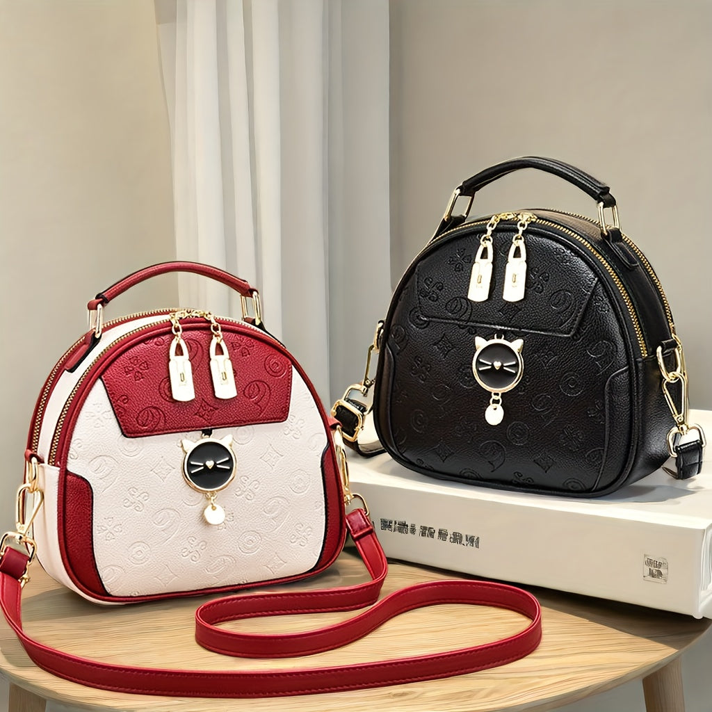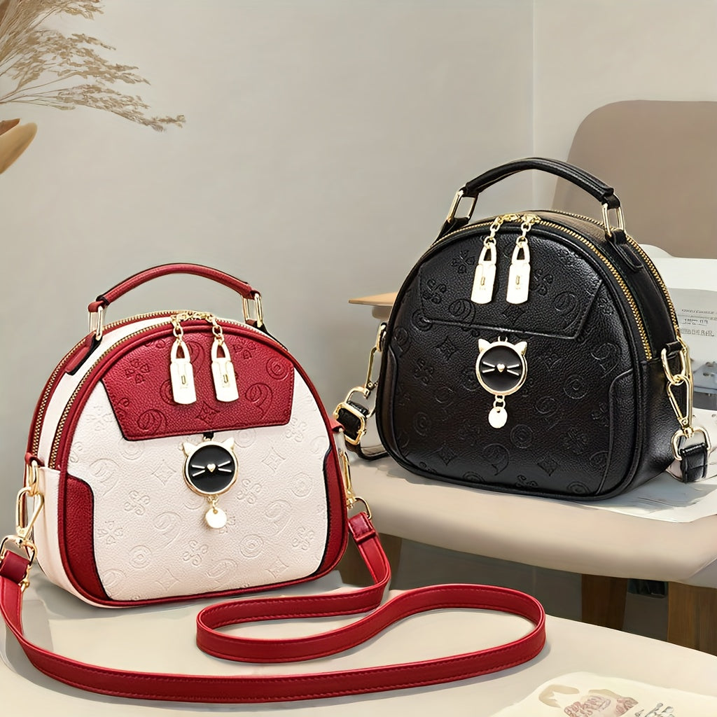 Stylish Women's Handbag - Two-Tone Red & White Design, Embossed Floral Pattern, Adjustable Crossbody Strap, Golden-Tone Hardware, Perfect for Casual Outings & Commuting, Ladies Handbags