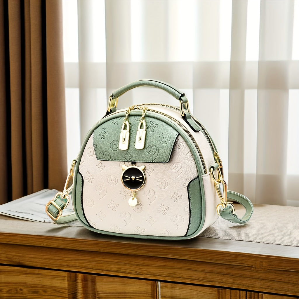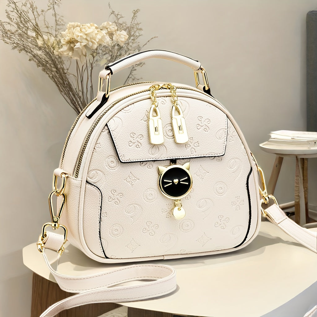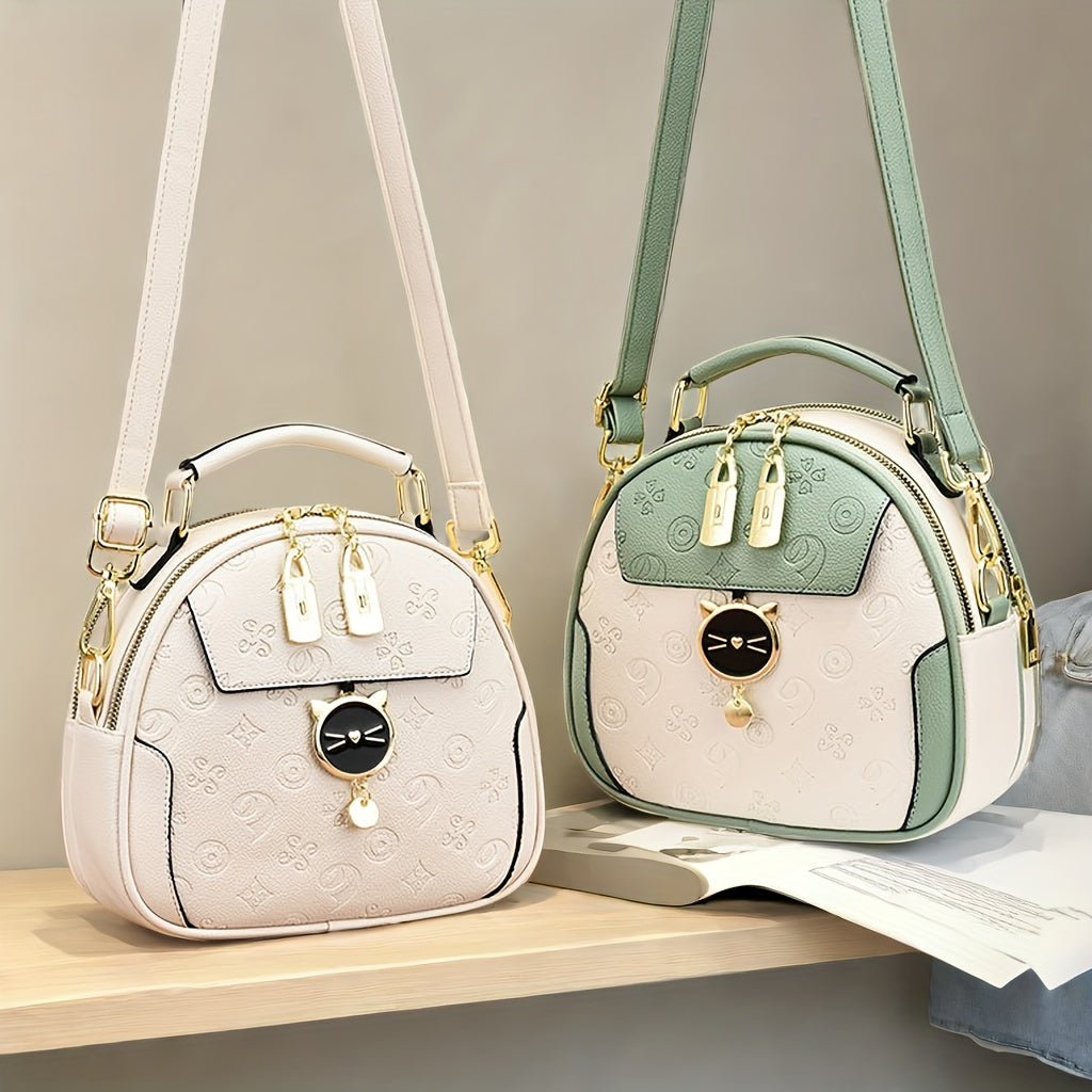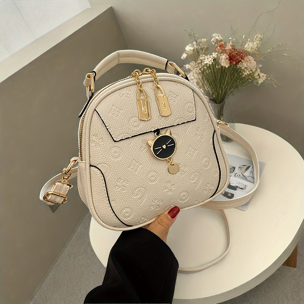 Stylish Women's Handbag - Two-Tone Red & White Design, Embossed Floral Pattern, Adjustable Crossbody Strap, Golden-Tone Hardware, Perfect for Casual Outings & Commuting, Ladies Handbags