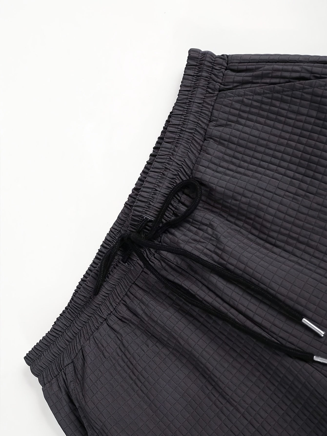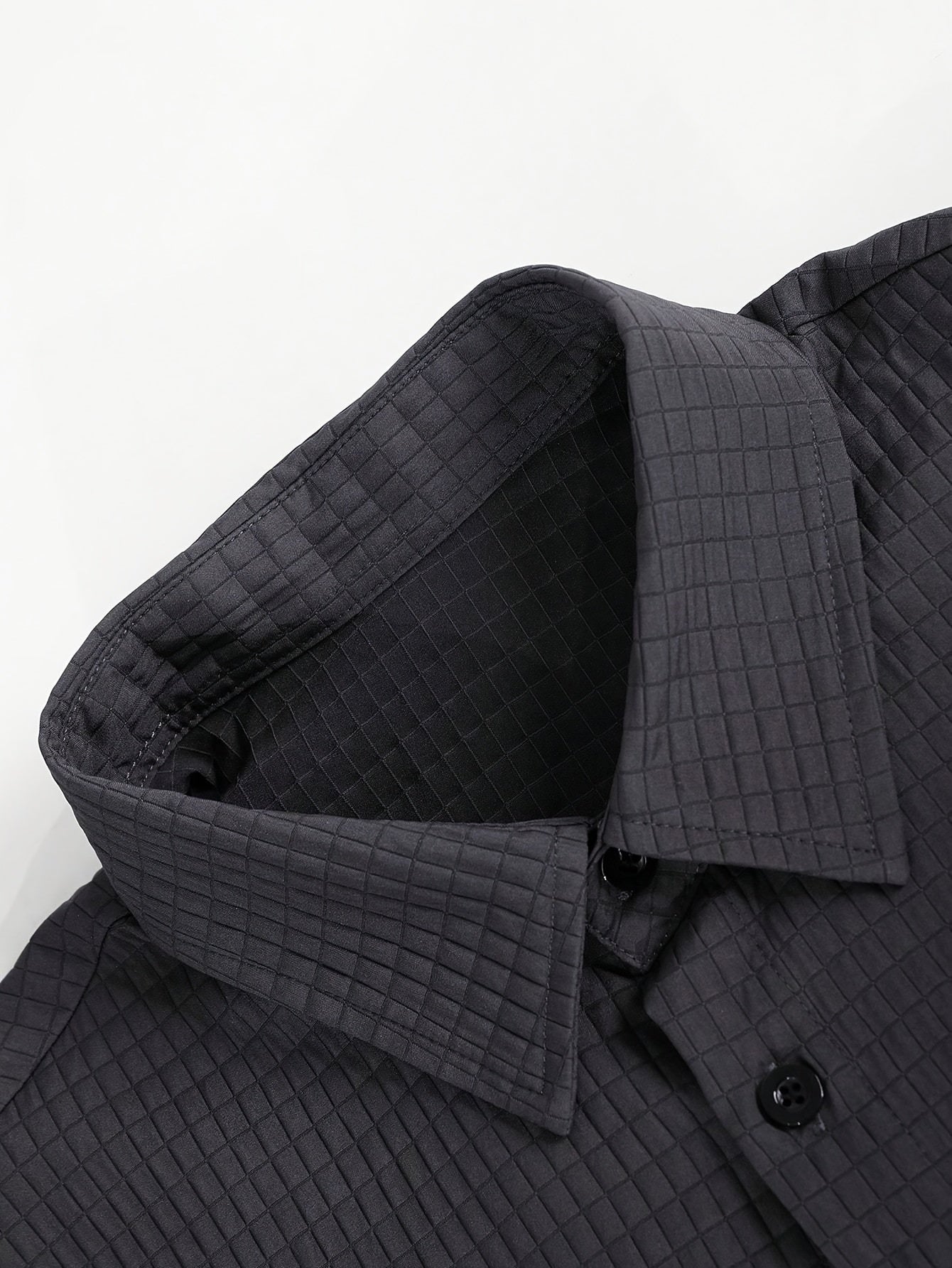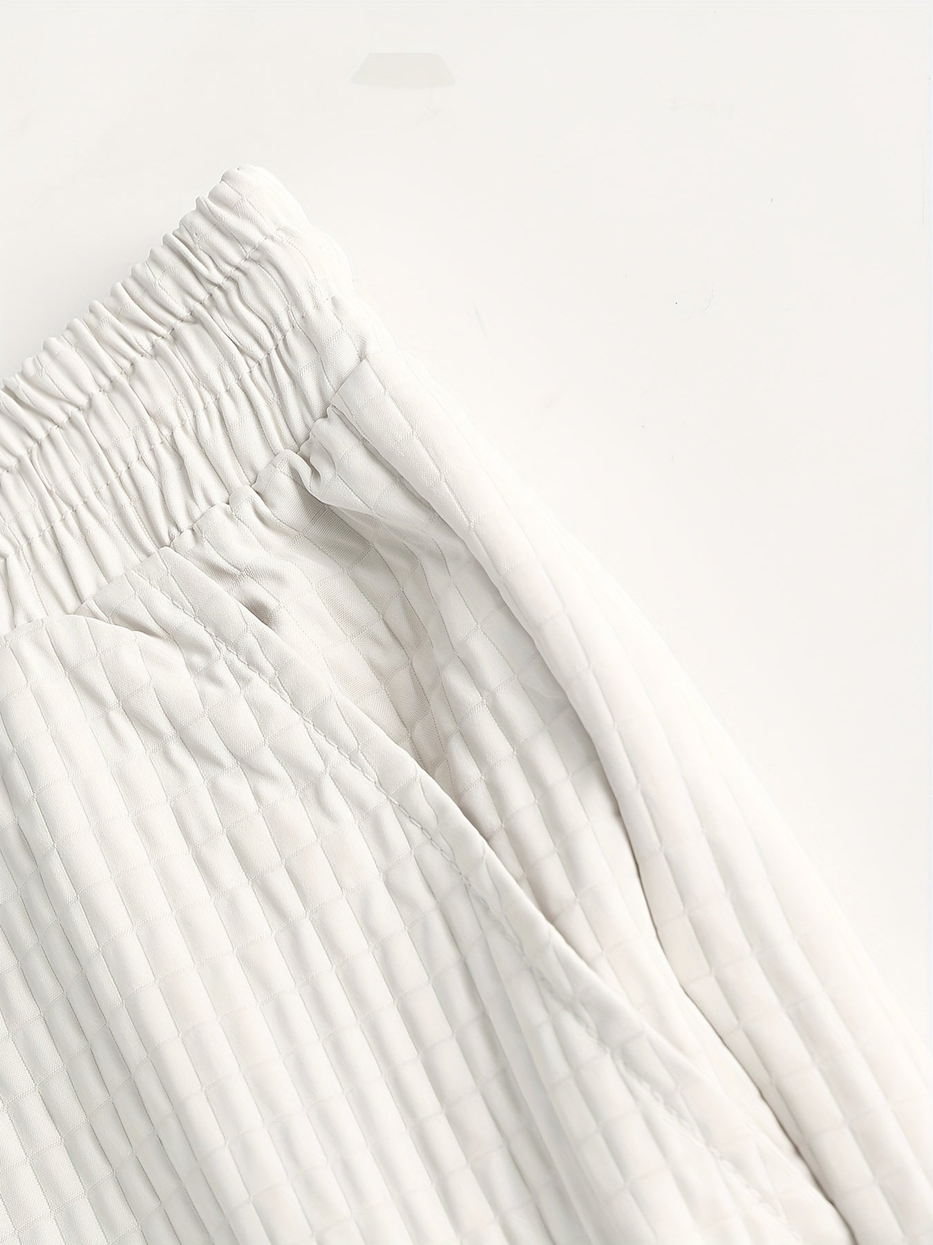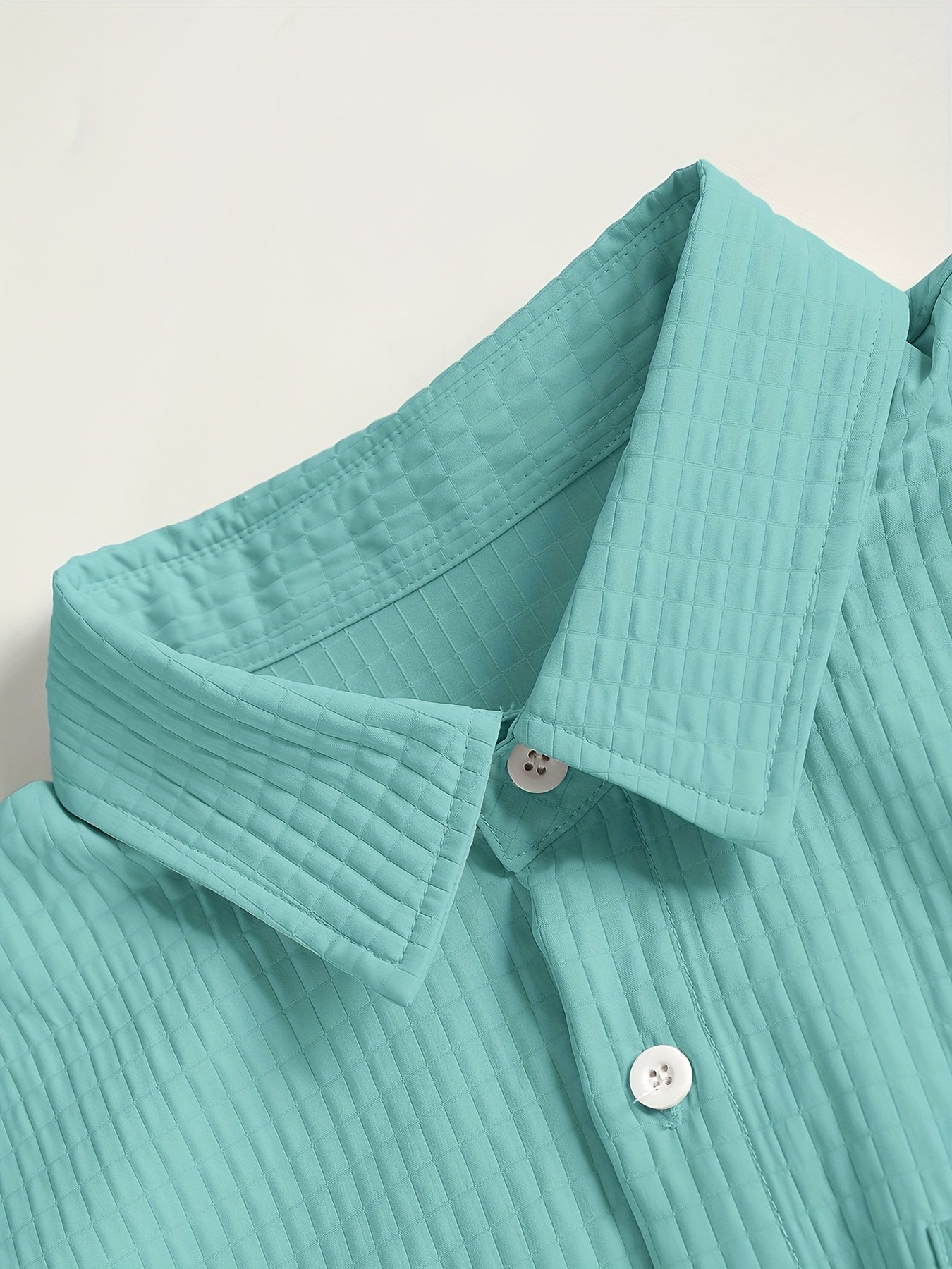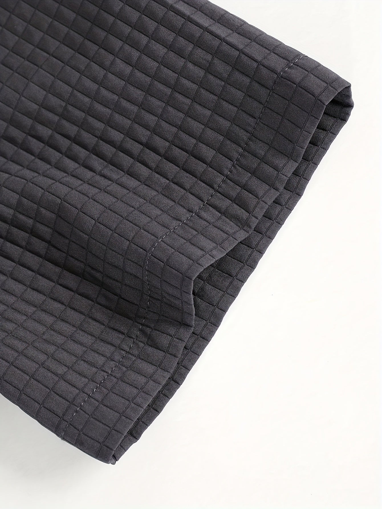 Summer Men'S Casual Bread Pattern Texture Short Sleeve Long Pants Shirt Set, 100% Polyester, Double Pocket Shirt, Turnover Woven Top Can Be Machine Washed and Dry Cleaned