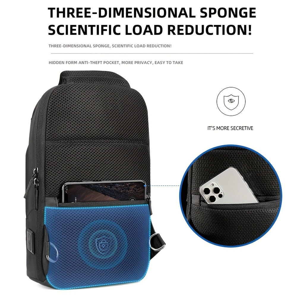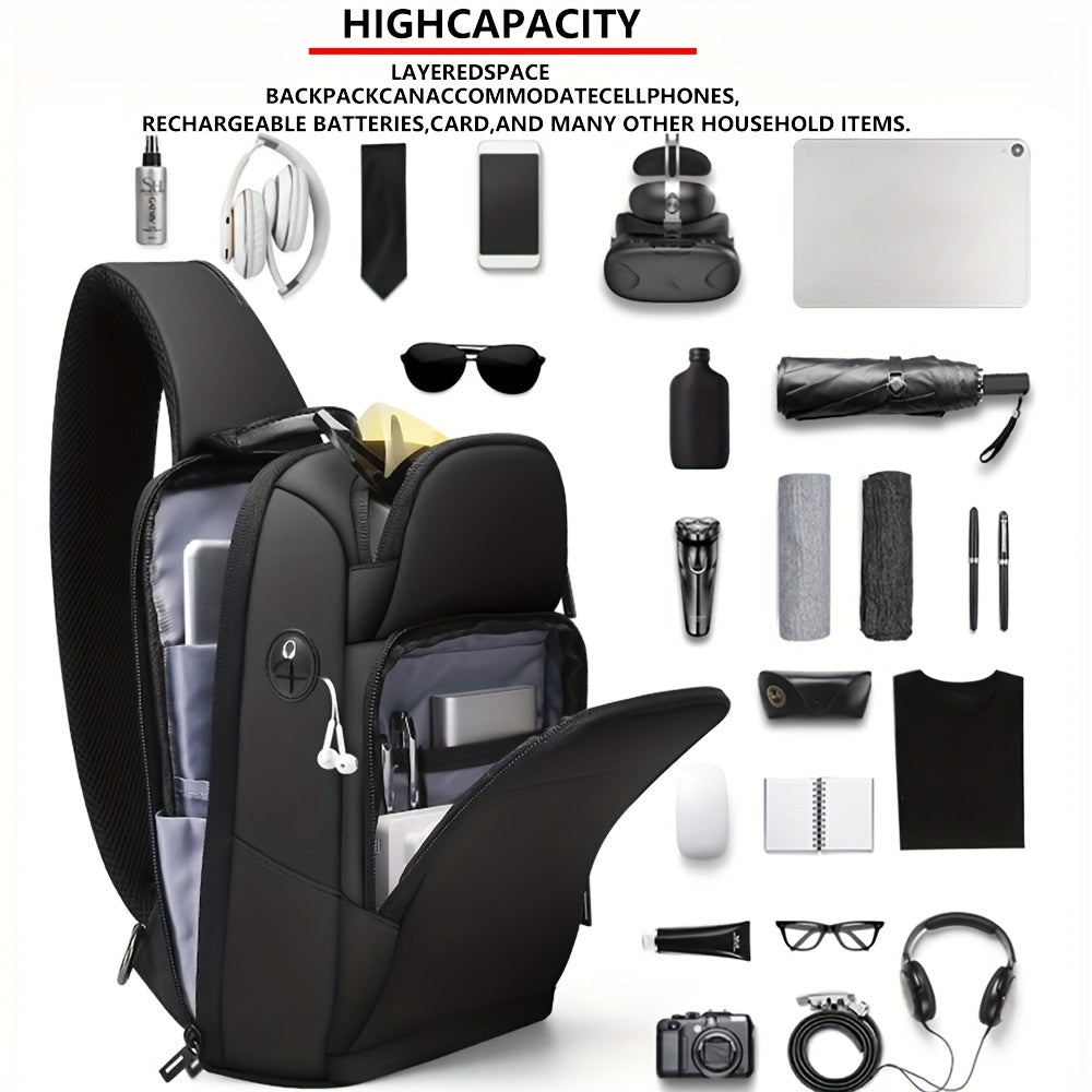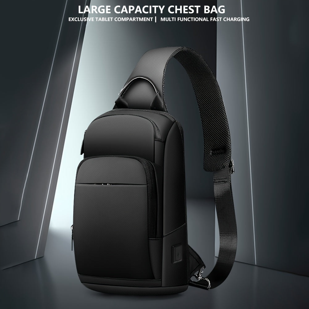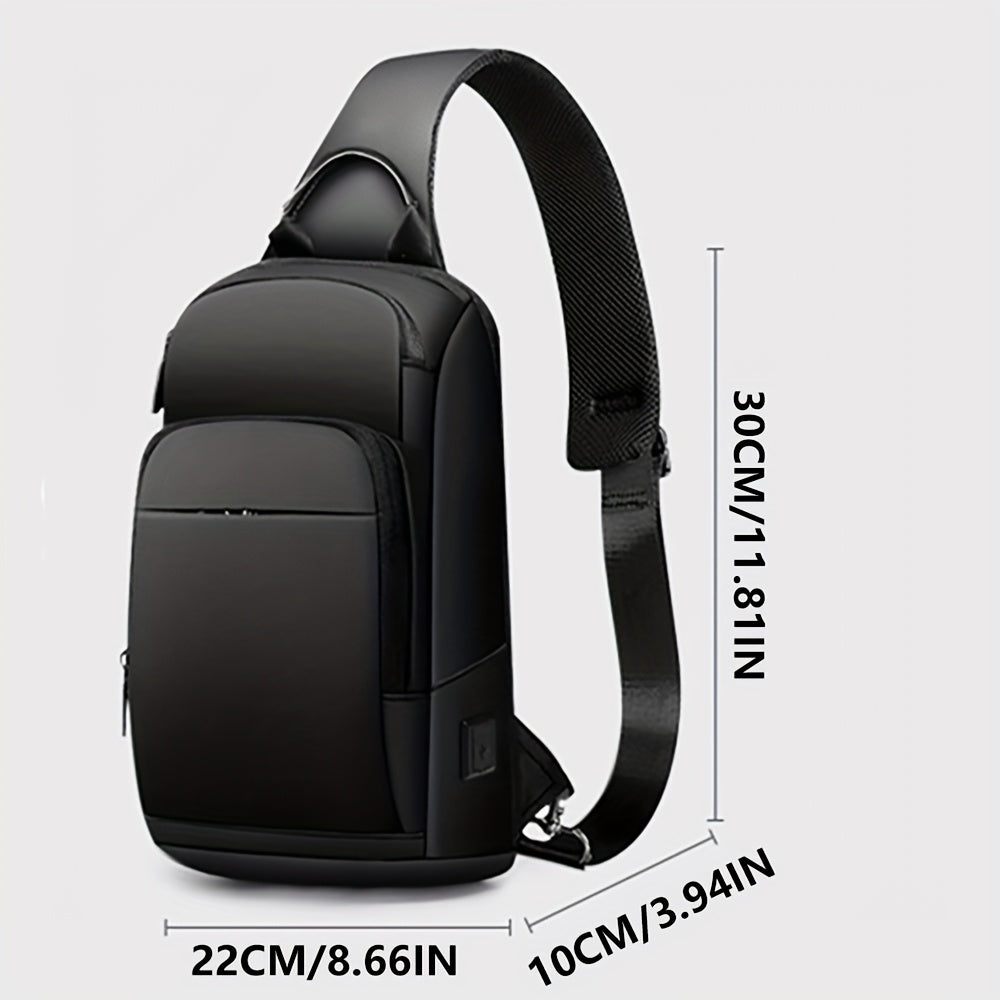 SWEET TOURIST Men'S Large Capacity Chest Bag - Stylish Oxford Shoulder Bag with Multiple Compartments, Zipper Closure Mesh Pockets for Travel, Business, and Casual Use, Travel Bag, Secure Travel Pouch, Trendy Accessory, Stu