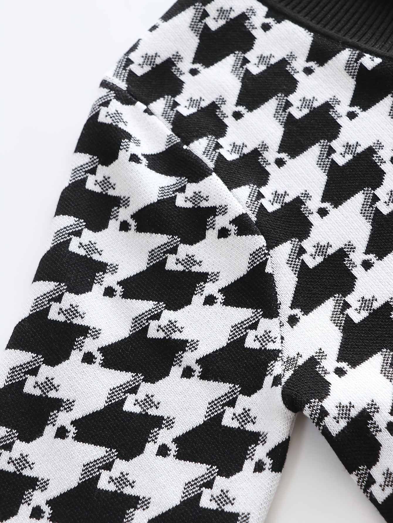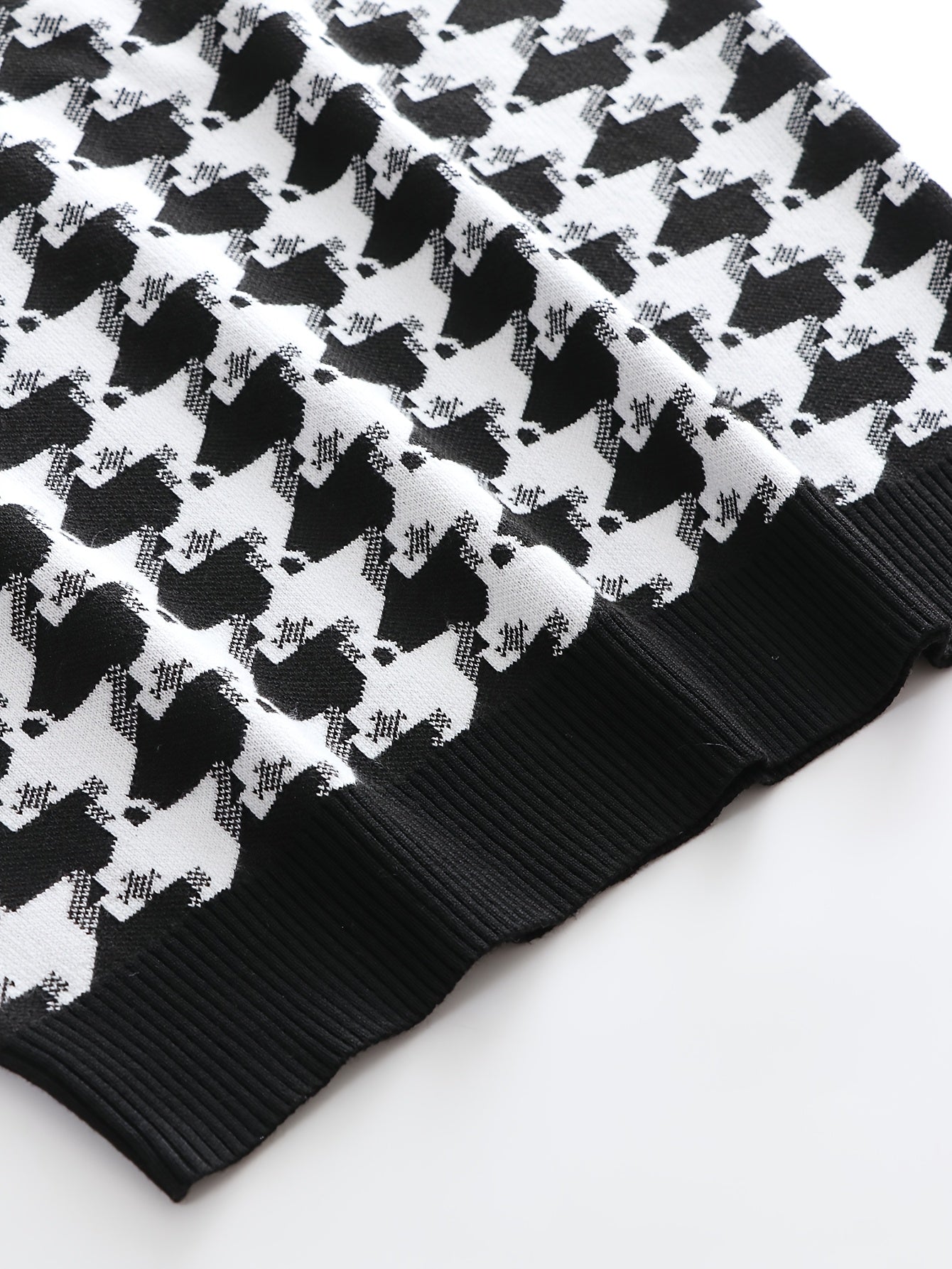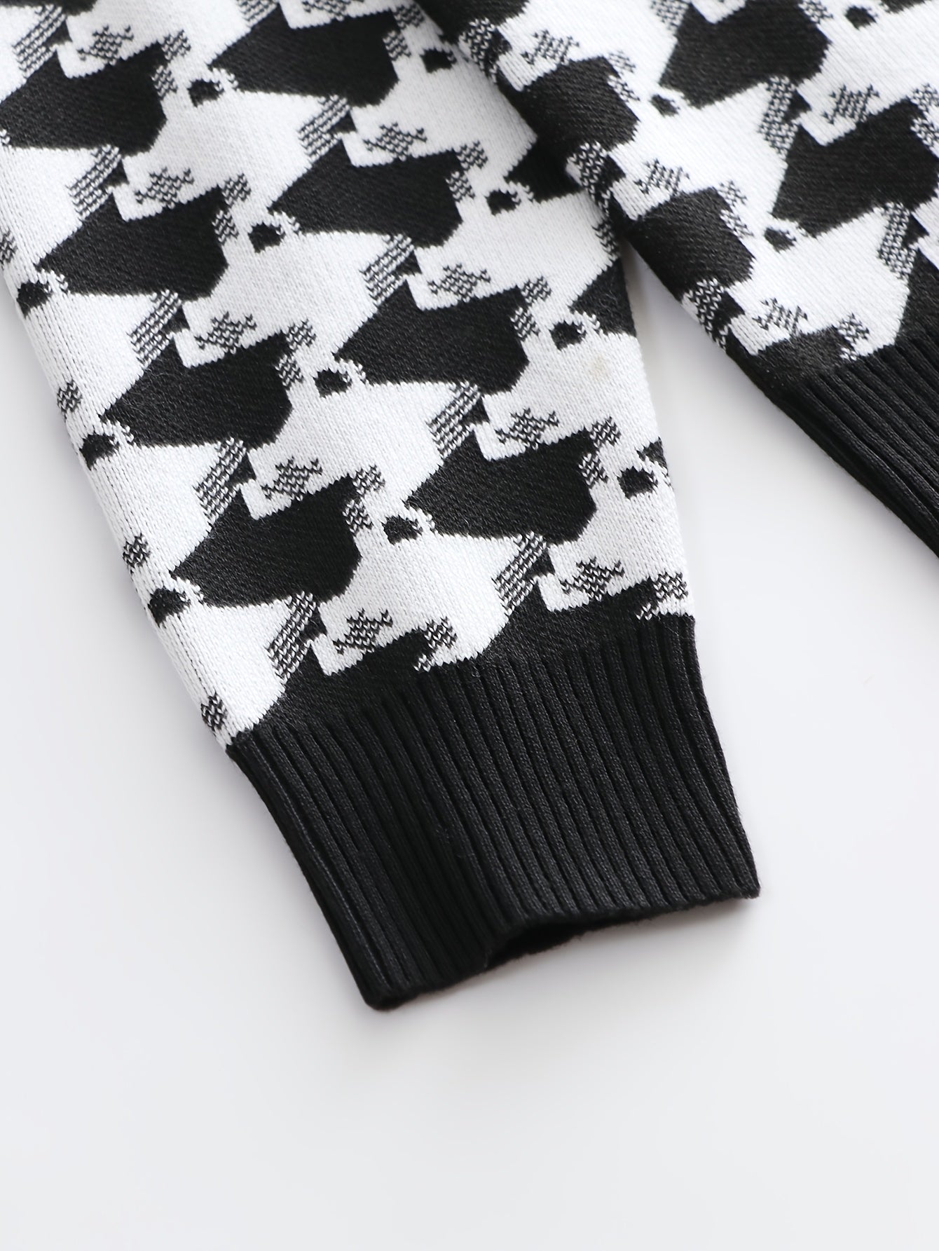 Temujin OBM Men's Fashion New Houndstooth Jacquard Knit Long Sleeve Pullover Sweater