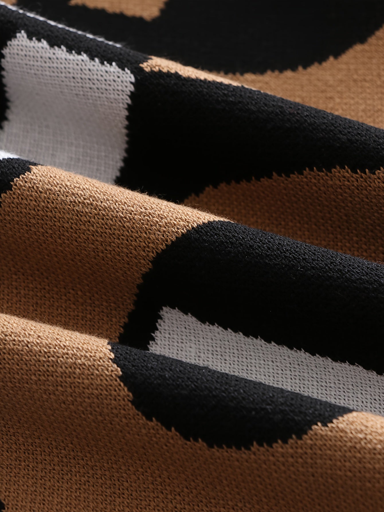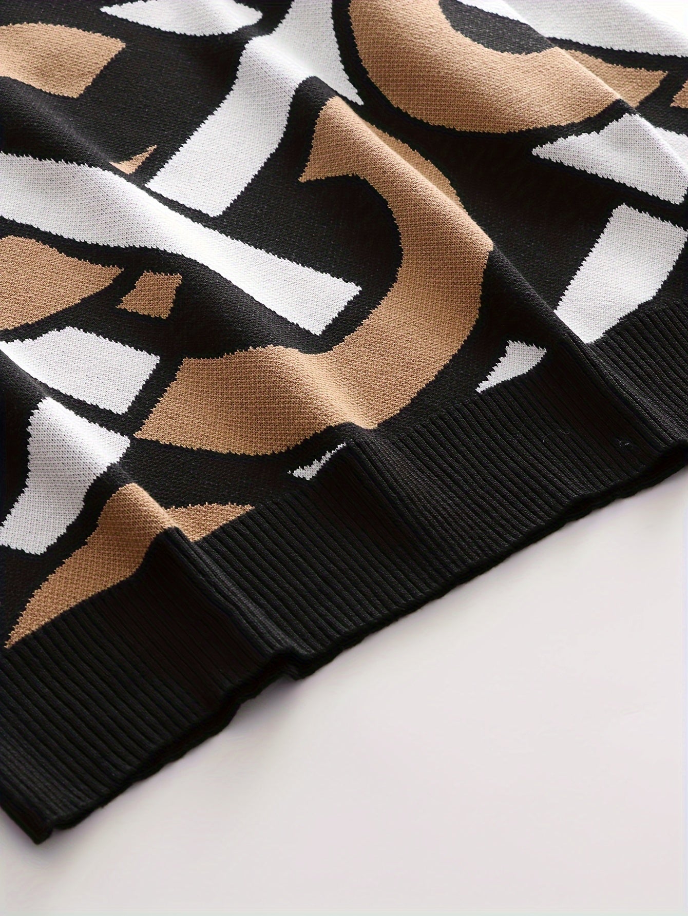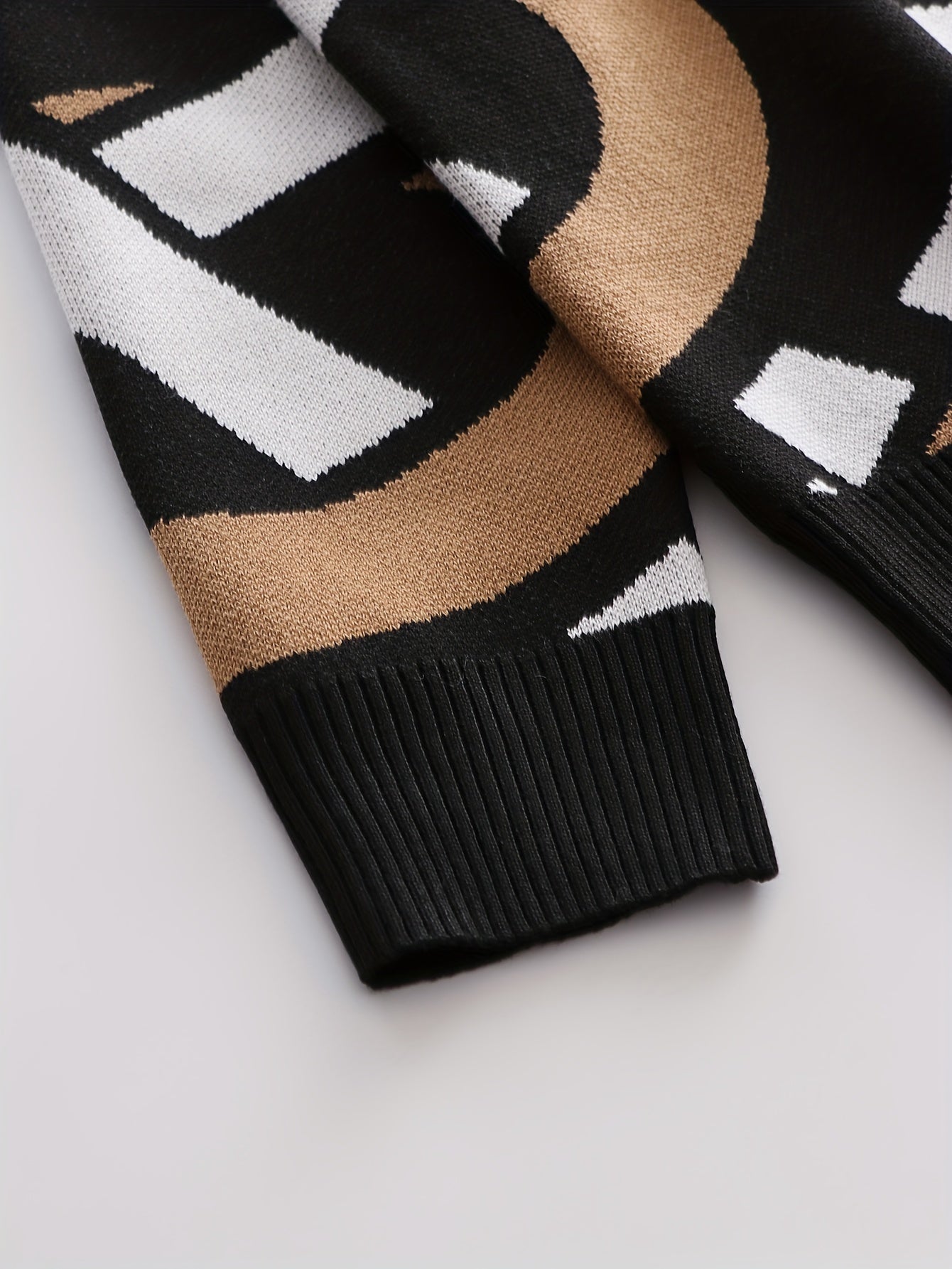 Temujin OBM Men's Fashion New Jacquard Color-Block Knit Long Sleeve Pullover Sweater
